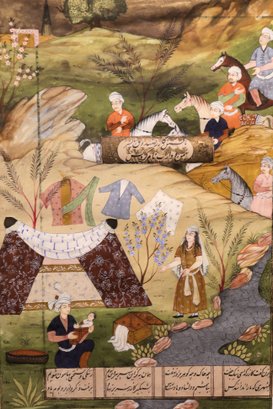 Original Persian hand-painted on paper with sayings on the bottom.