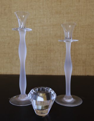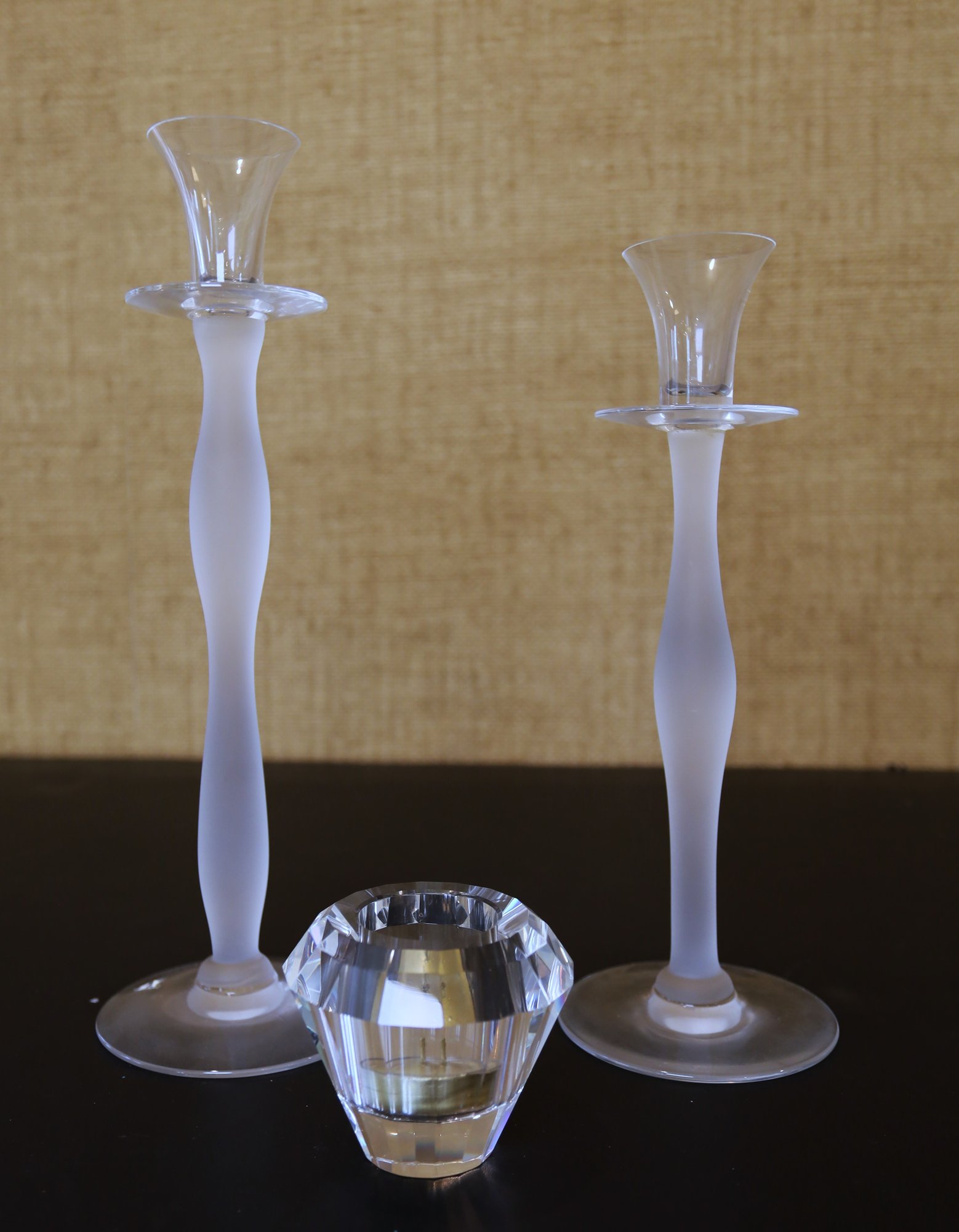 Pair of Orrefors candlesticks 12" & 13.5" - Nice condition