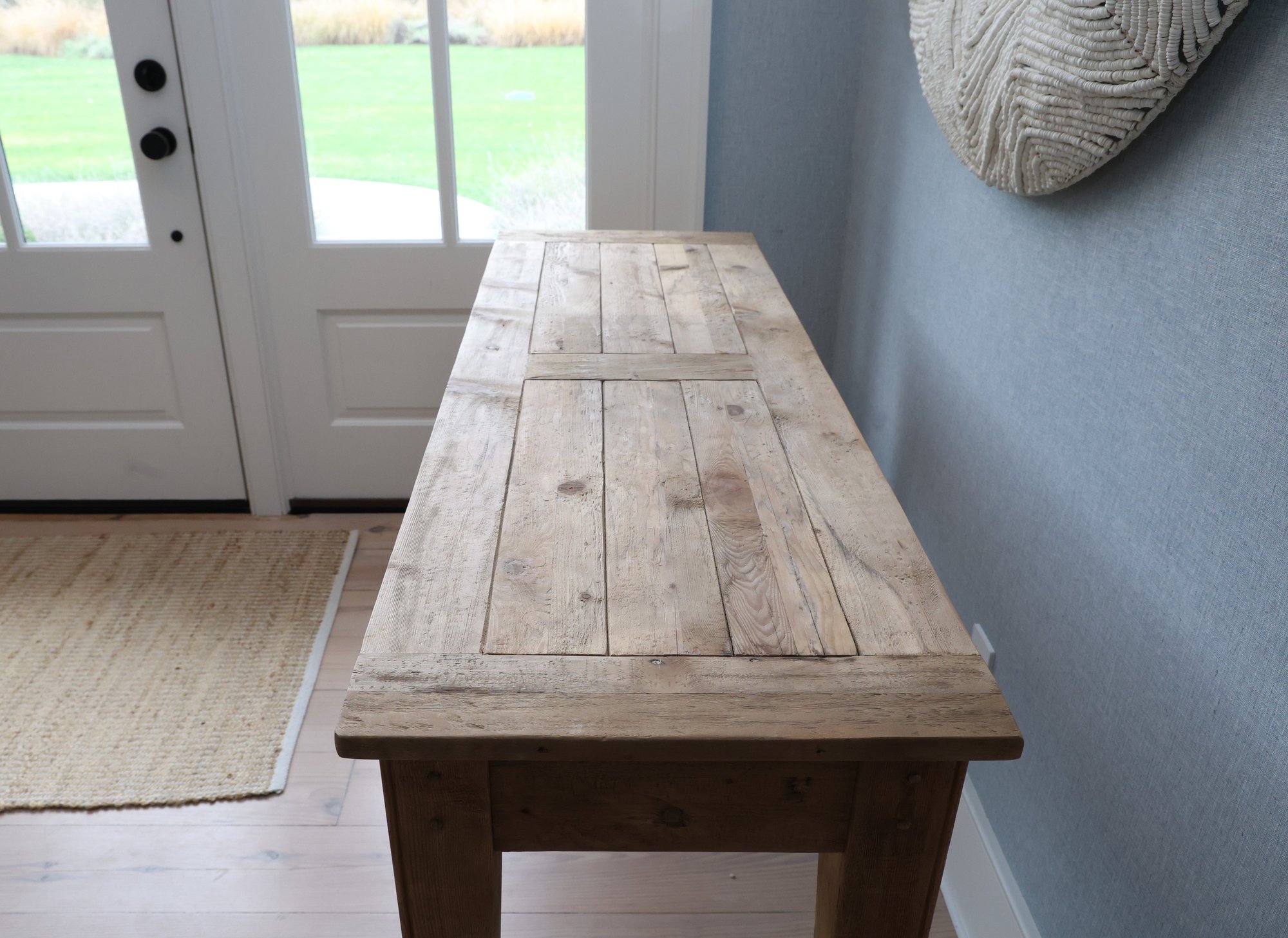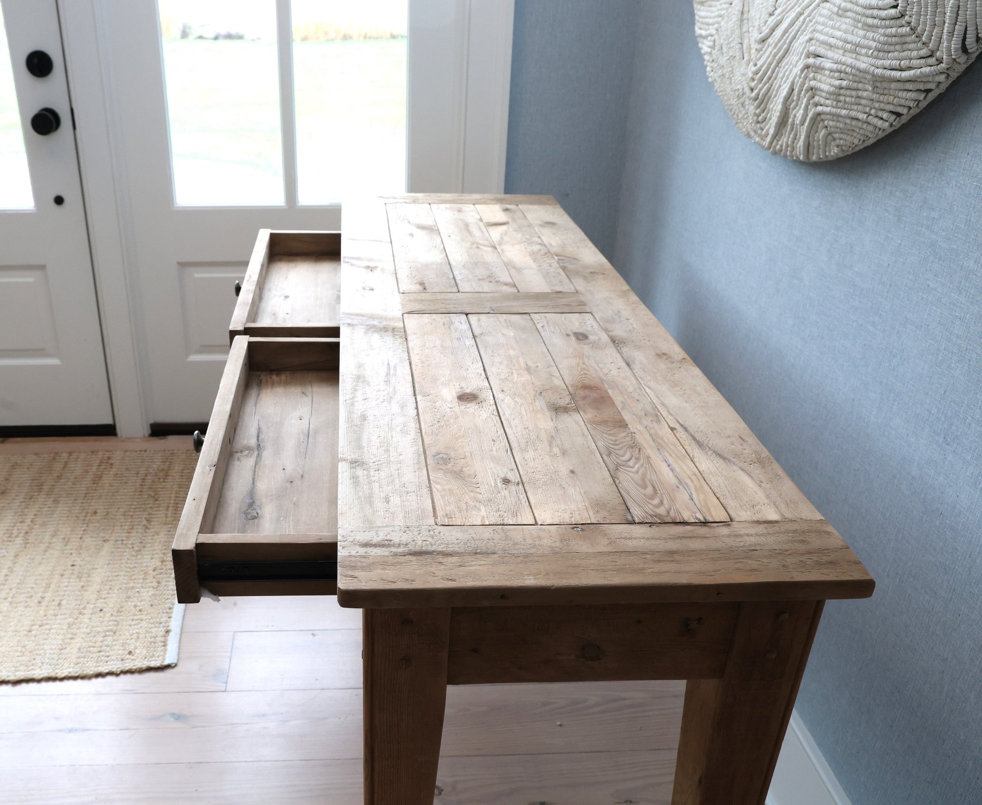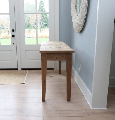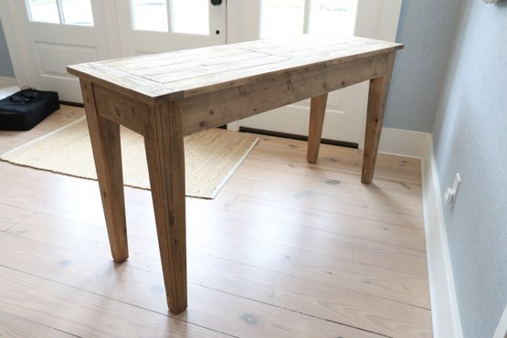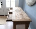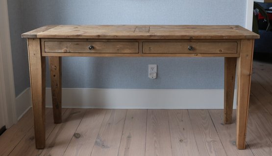 Pottery barn hall table in pine very natural with simple straight legs and two drawers that glide in and out nicely.