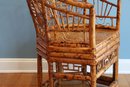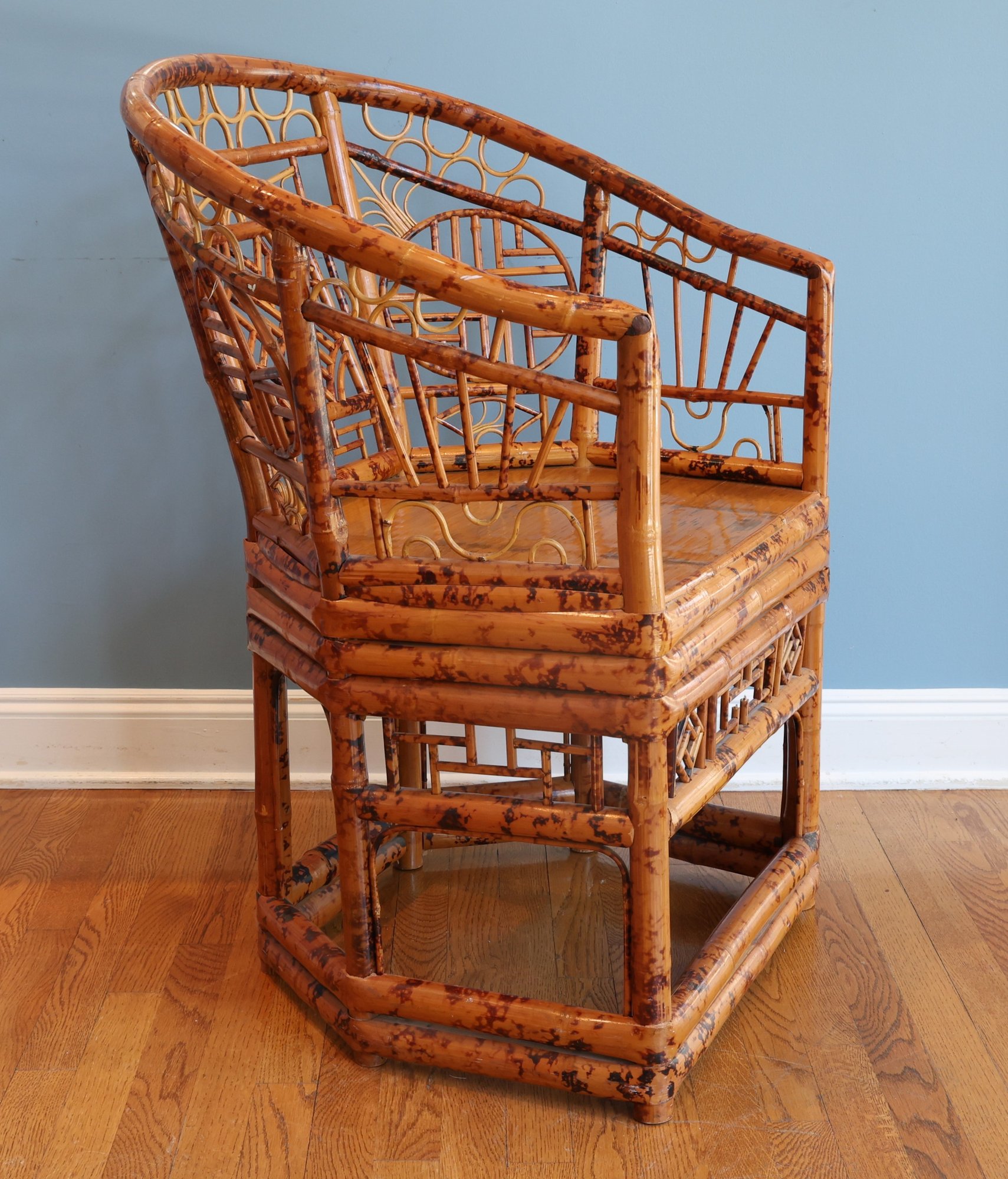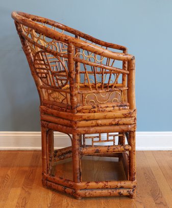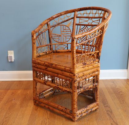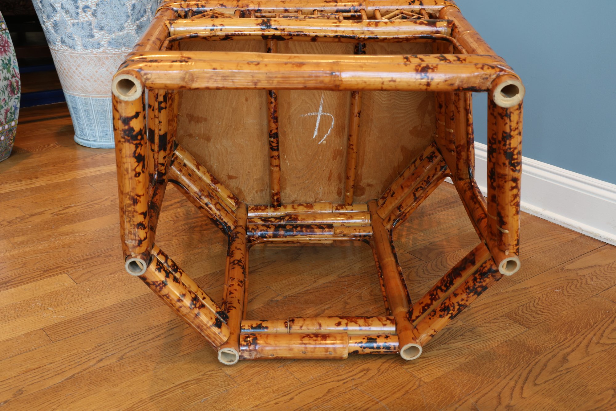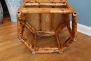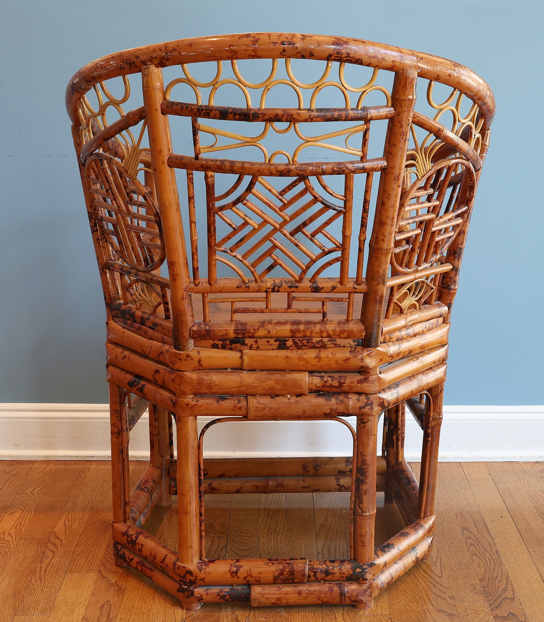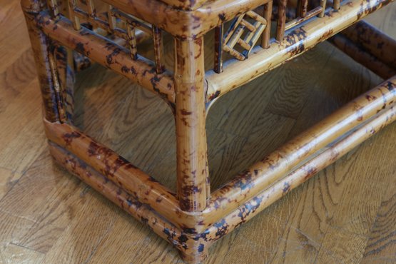 crafted from Bamboo and Rattan featuring a tortoiseshell effect. Notable for its geometric fretwork , very Hollywood Regency. Very sturdy in n ice condition.