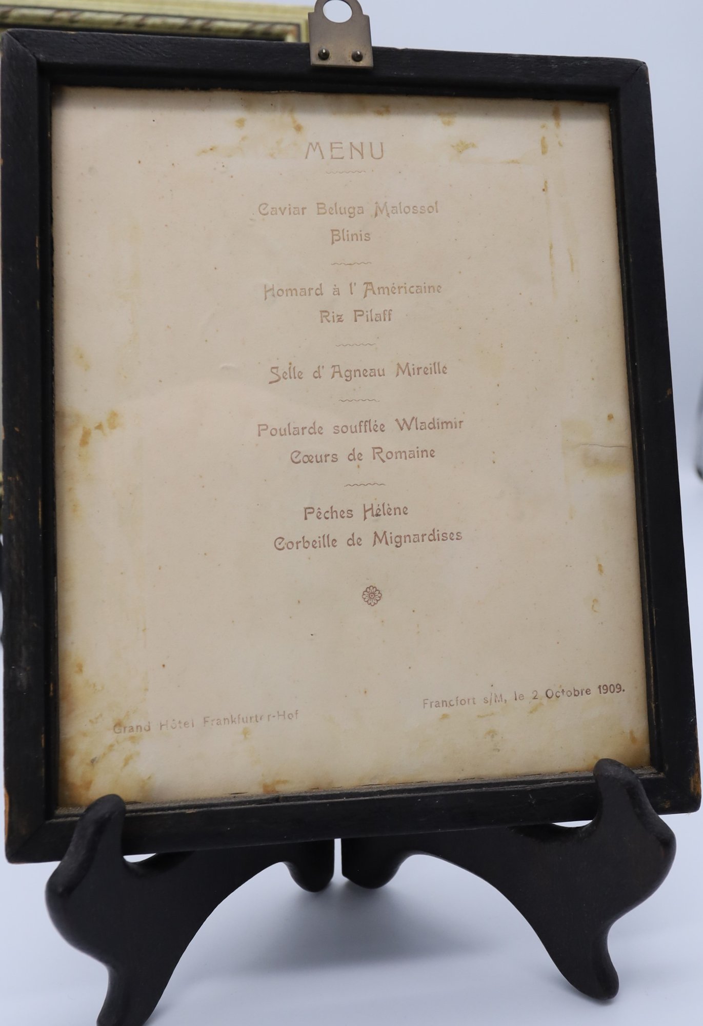 Caruso caricature on the back of the grand hotel in Frankfort Germany 1909 Menu-done in pencil and signed.