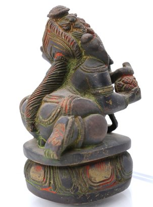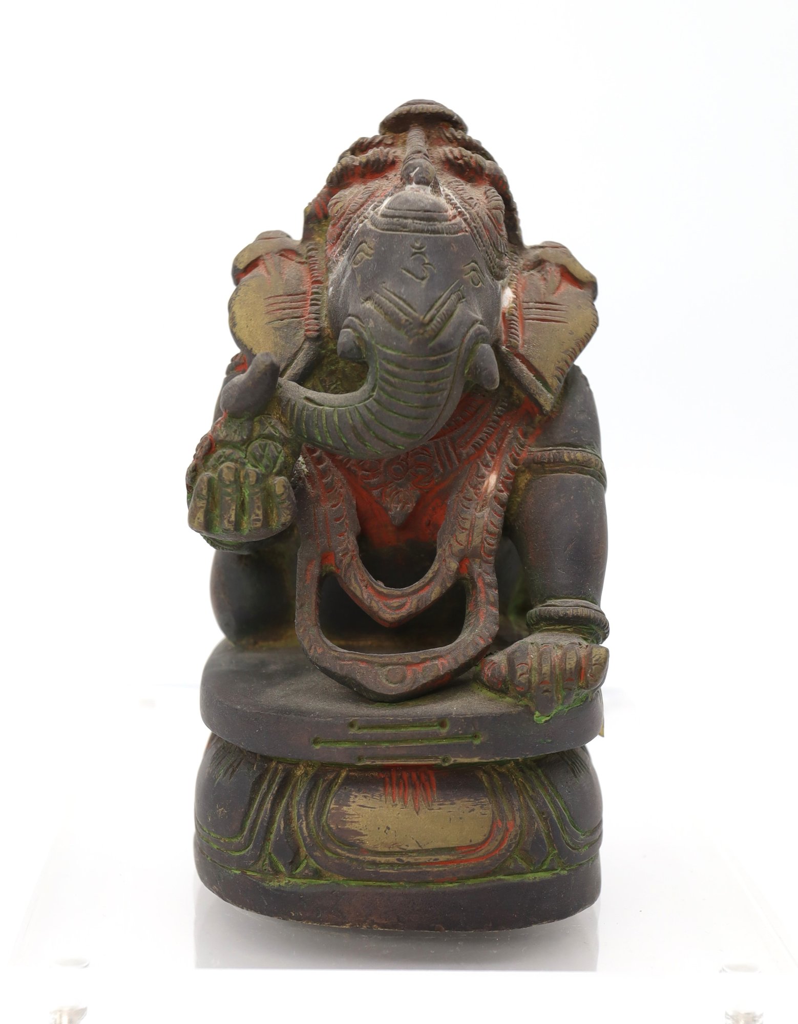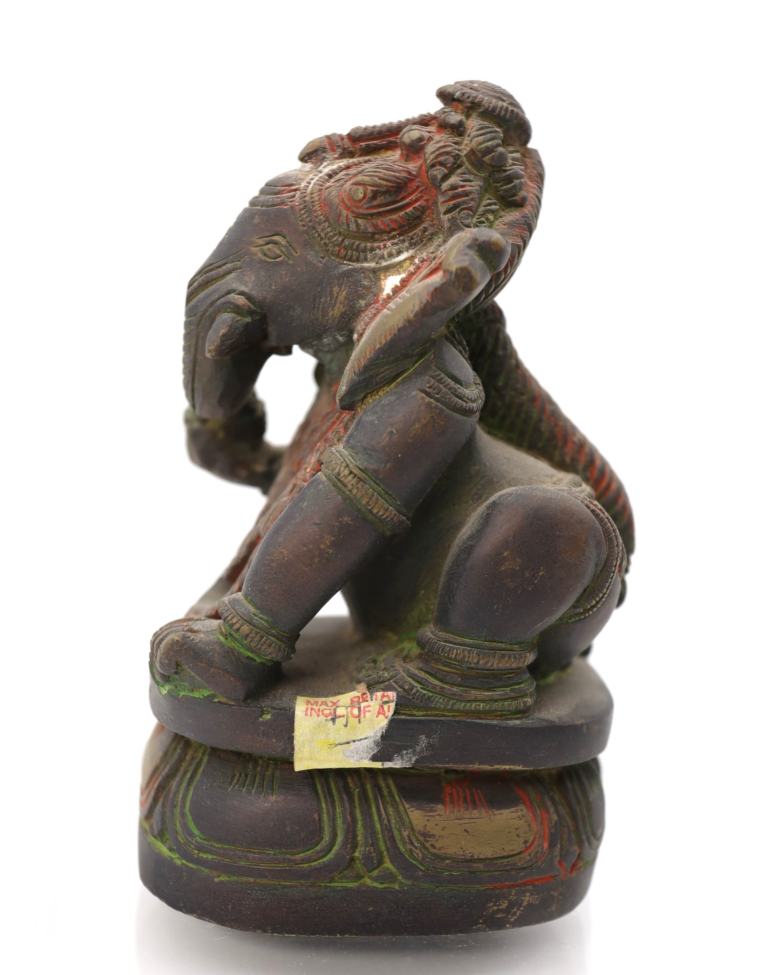 RARE Bronze old Tibet Ganesh Seated On A Pedestal ,old highlights still show- very nice. small but hefty.