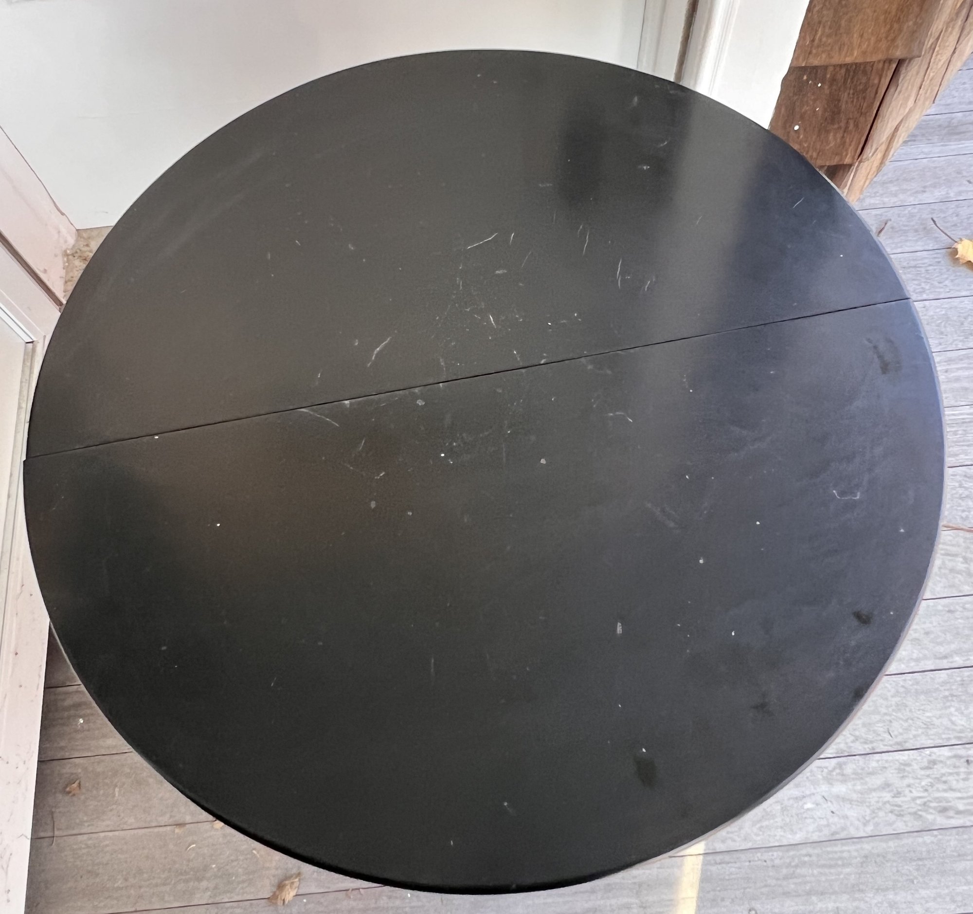 the two joined pieces of wood has a small separation from eachother on top.