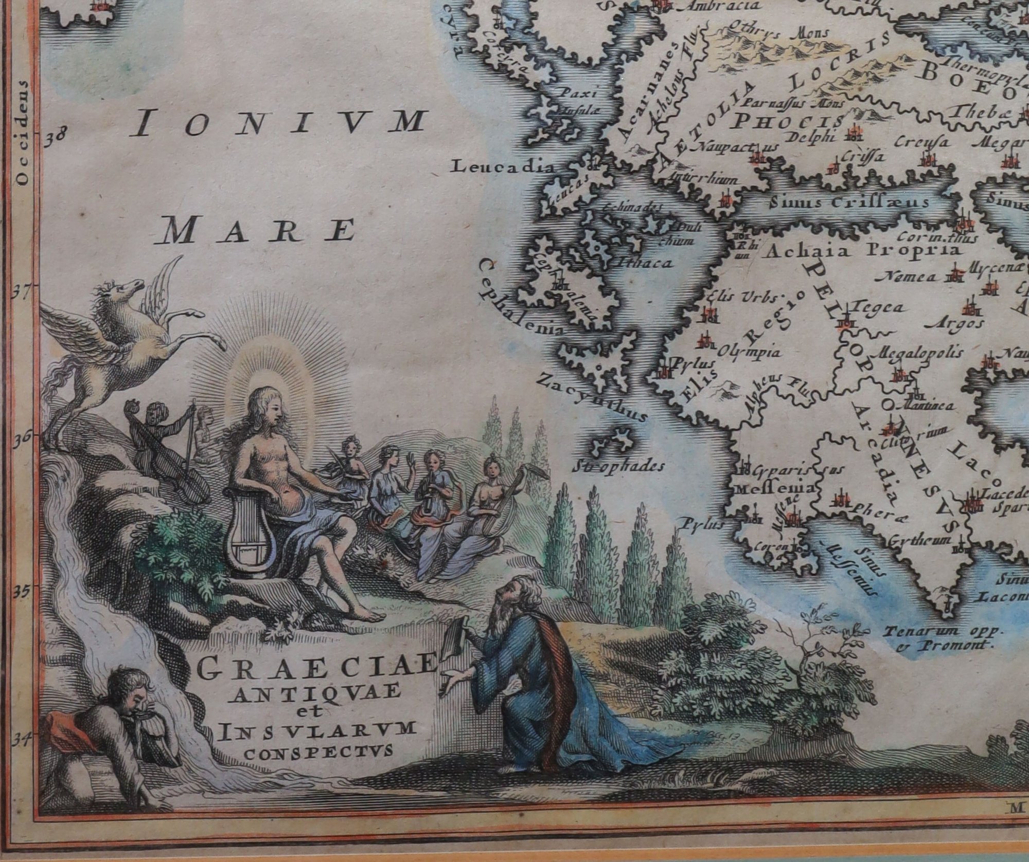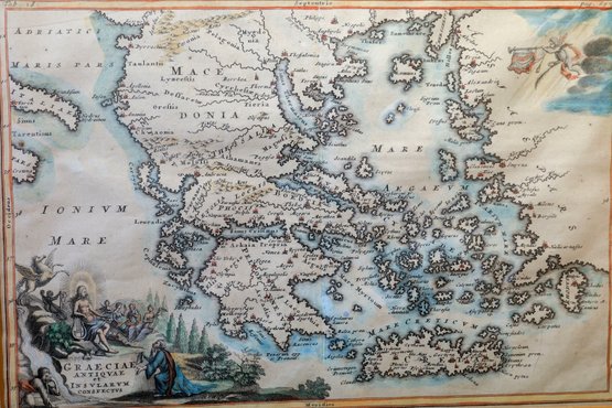 RARE OVERVIEW OF ANCIENT GREECE MAP 17th Century
