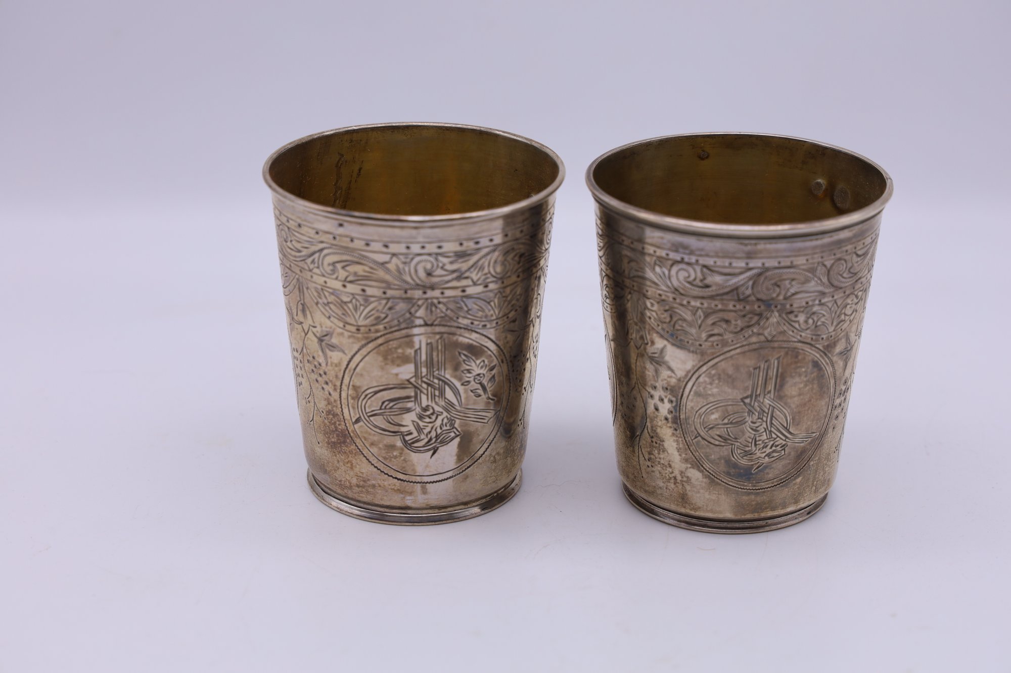 Early Tughra hallmark on the side and the zigzag silver assayer's mark on the base. Never used
