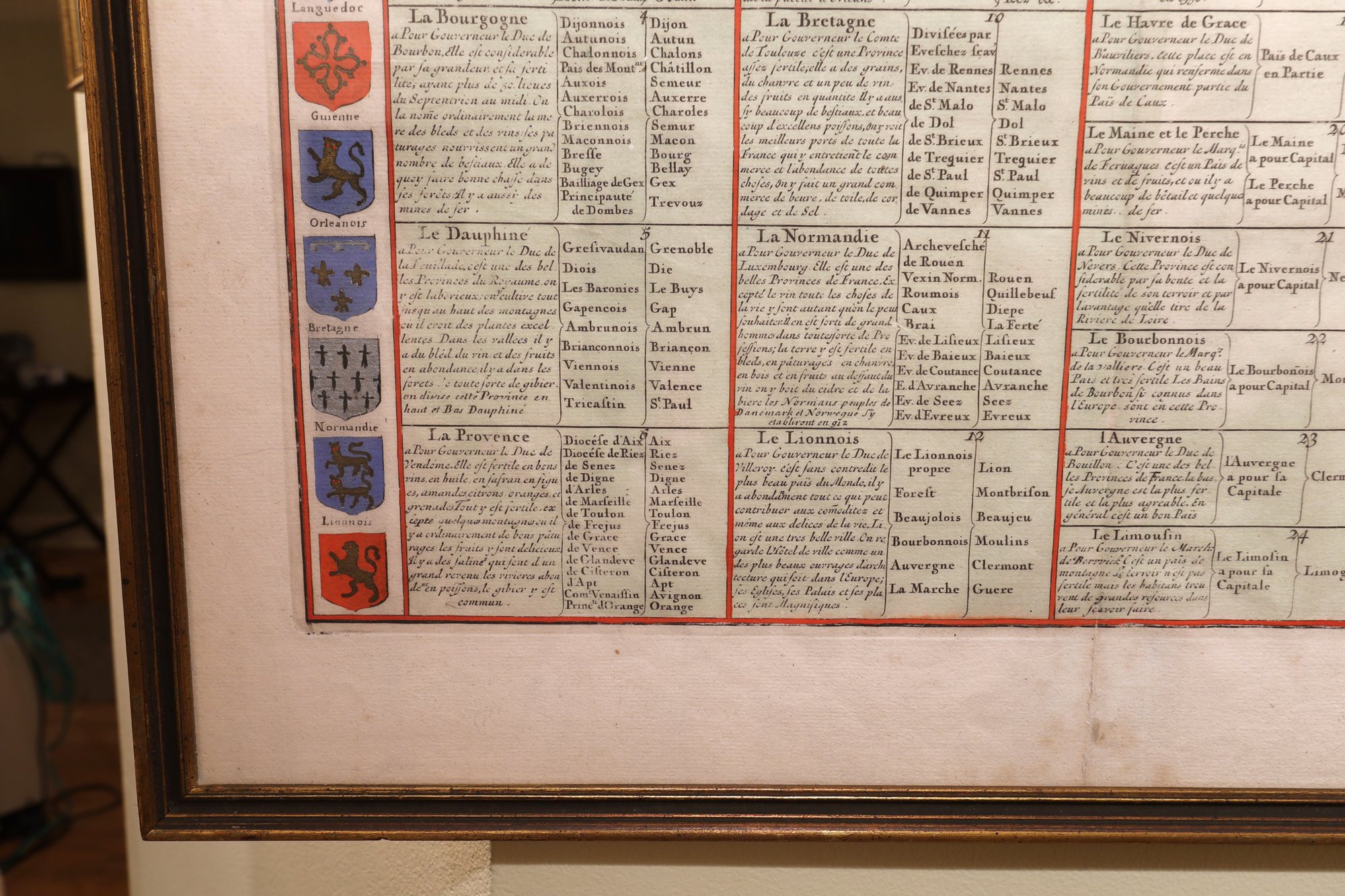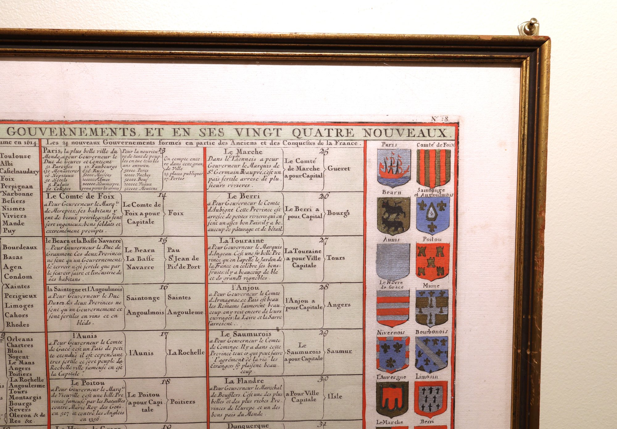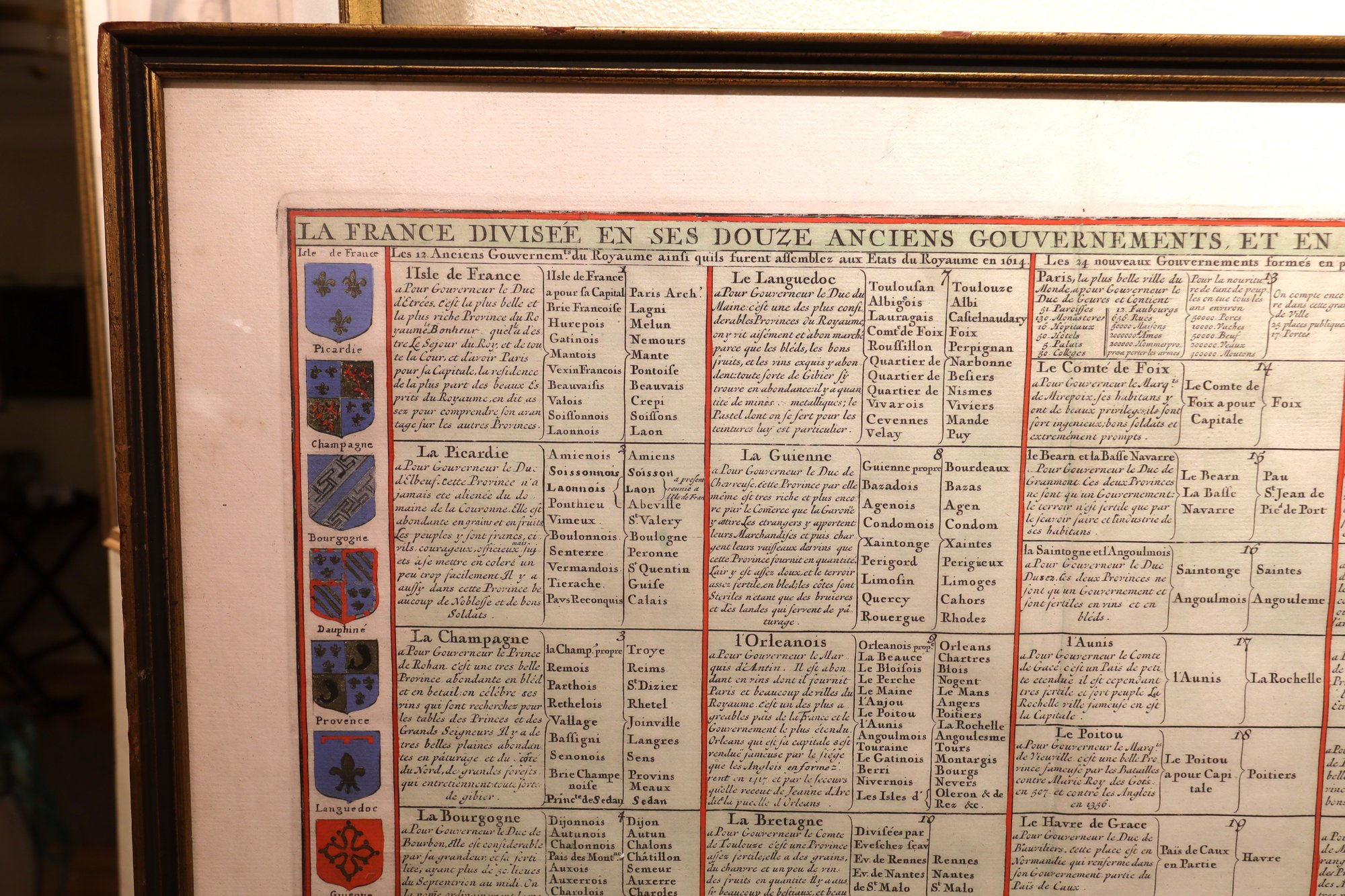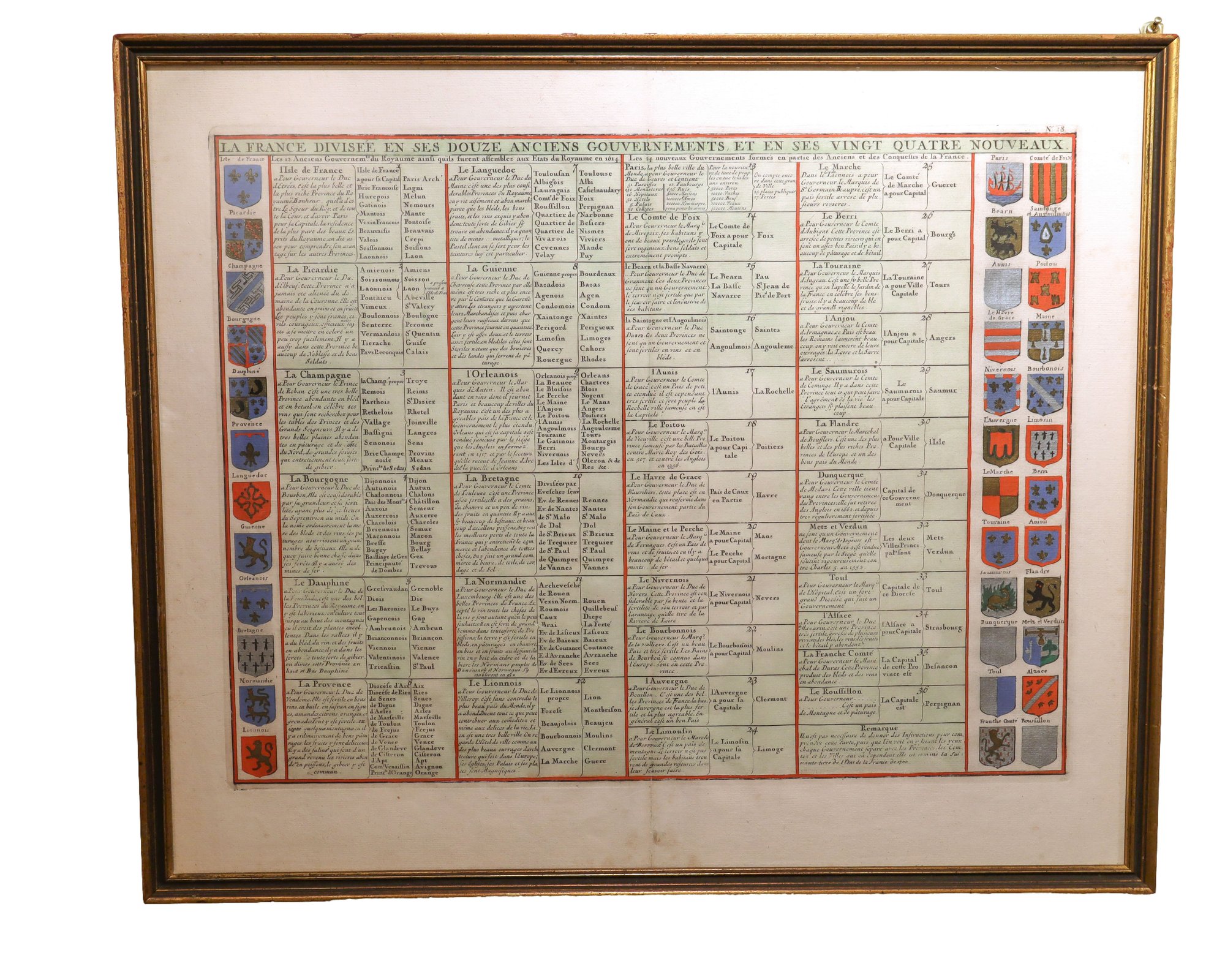 Overview of the 12 old and 24 new French governorates with their coats of arms