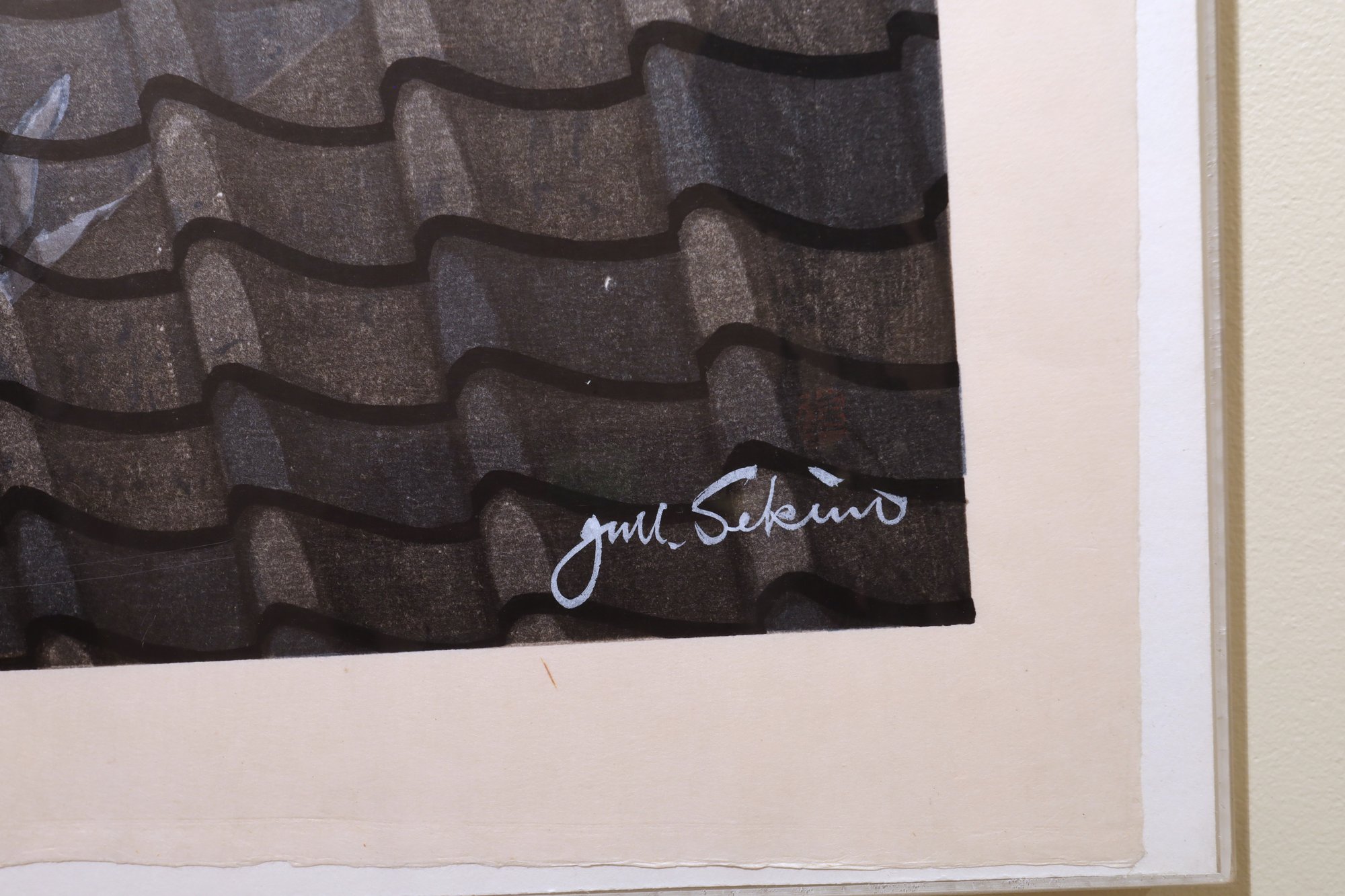 Sekino Jun-ichiro ( 1914-1988) Woodblock "Rooftops". Signed lower right . Junichiro is one of the major postwar artists of the Sosaku Hanga movement.