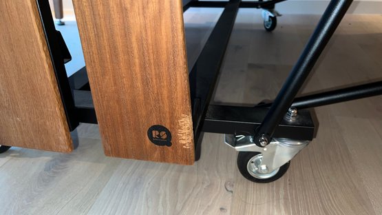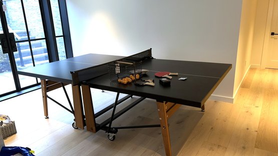 The RS Folding Ping Pong Table from RS Barcelona combines the functionality of a folding ping-pong table with the signature design of RS Barcelona products. Showcasing standard ping-pong table measurements, the surface, design, and structure provide total playability, stability, and toughness. Suitable for indoor and outdoor use, this ping pong table is crafted from steel with a cataphoretic coating process with polyester paint and weather-resistant iroko wood, with a coated polyester fabric net. Easy to fold using a simple mechanism, this ping pong table takes up little space, and you can easily move it from indoors to out thanks to the convenient caster wheels.