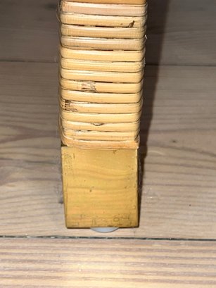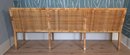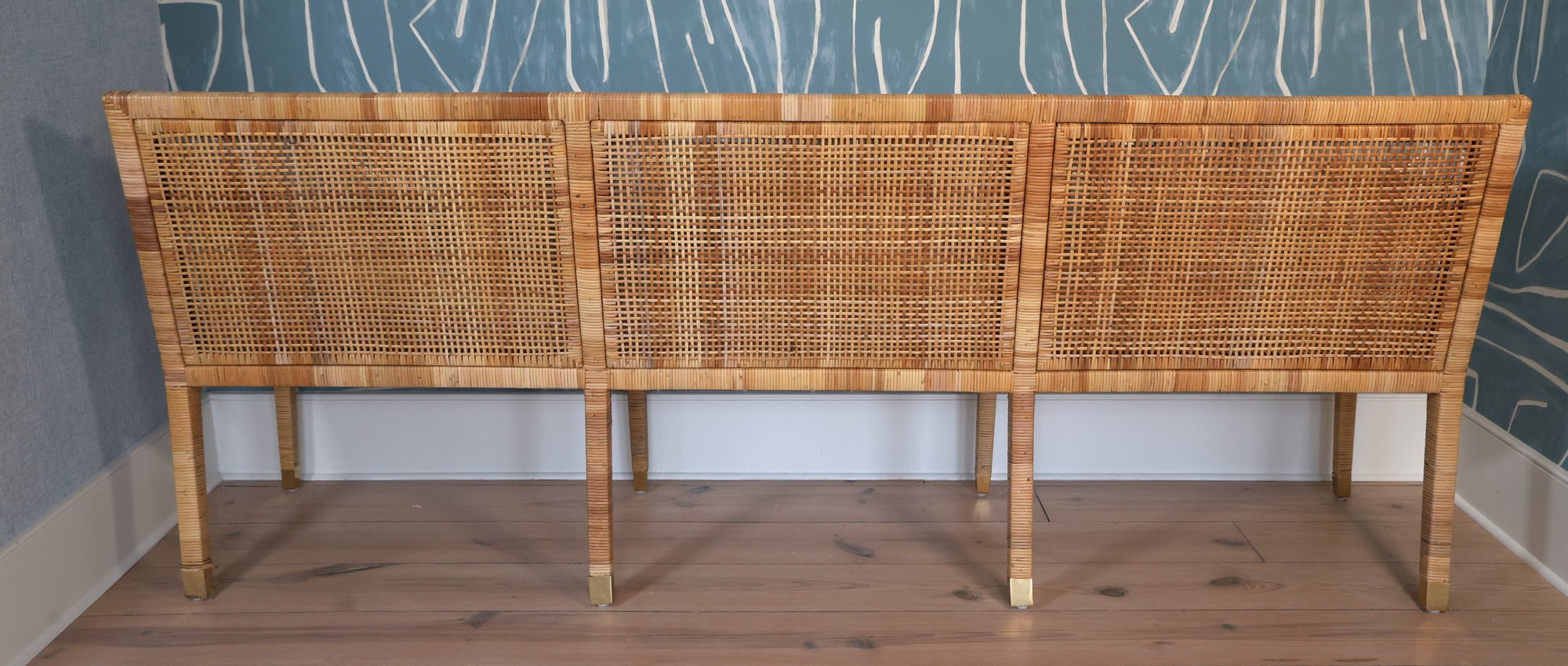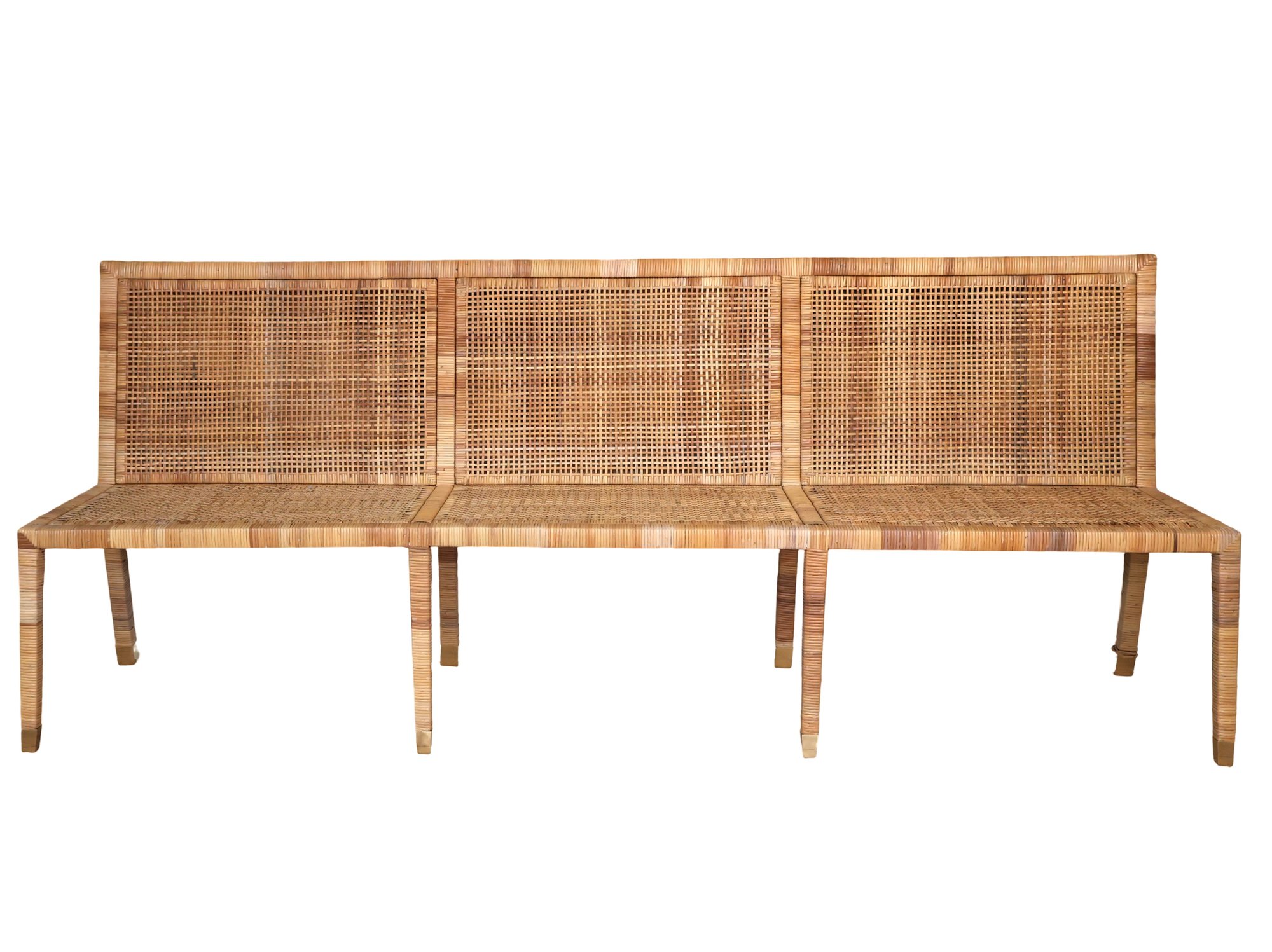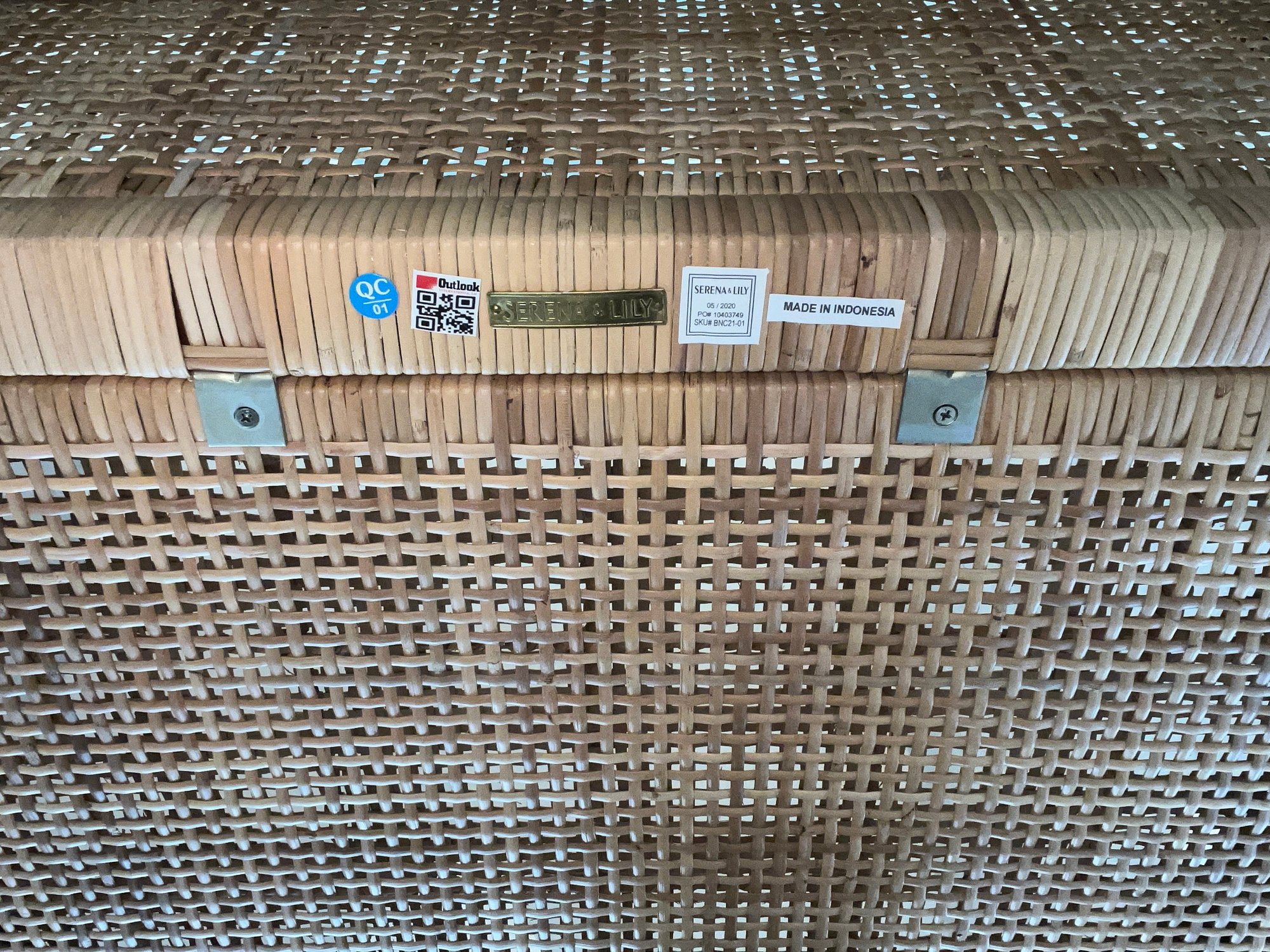 Lovely rattan bench with cushion (white & powder blue striped and piped). Can be used with or without the cushion. Nice condition to go in a hallway or even for a table for seating!