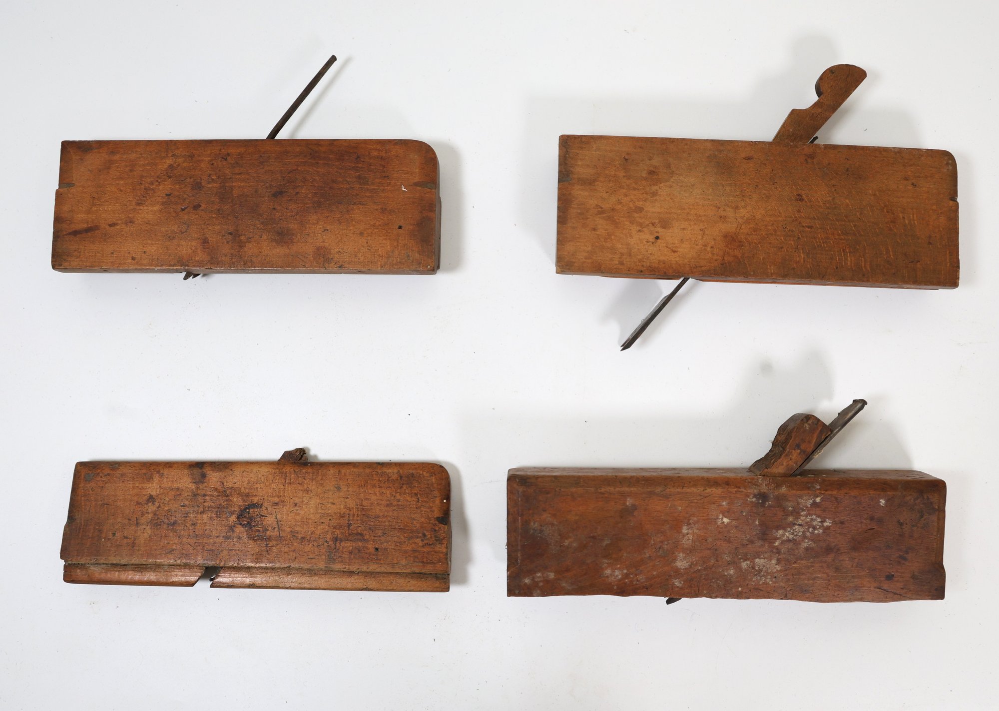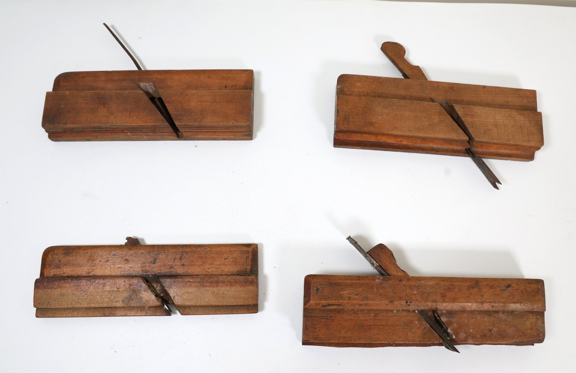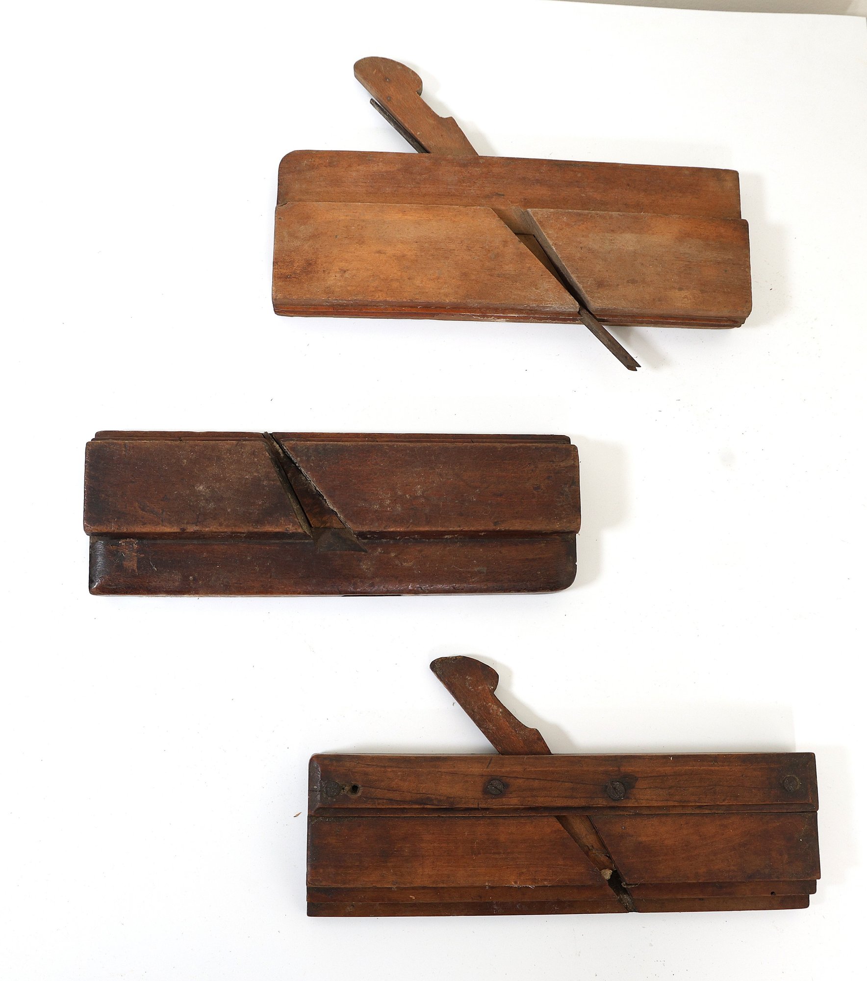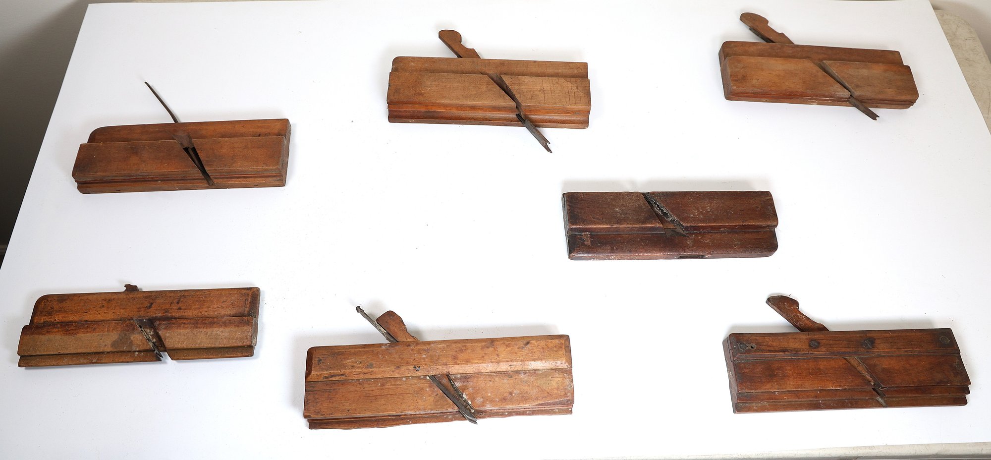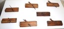 7 antique wooden hand planes for woodworking to shape, smooth, and flatten wood surfaces, approximately 10"L