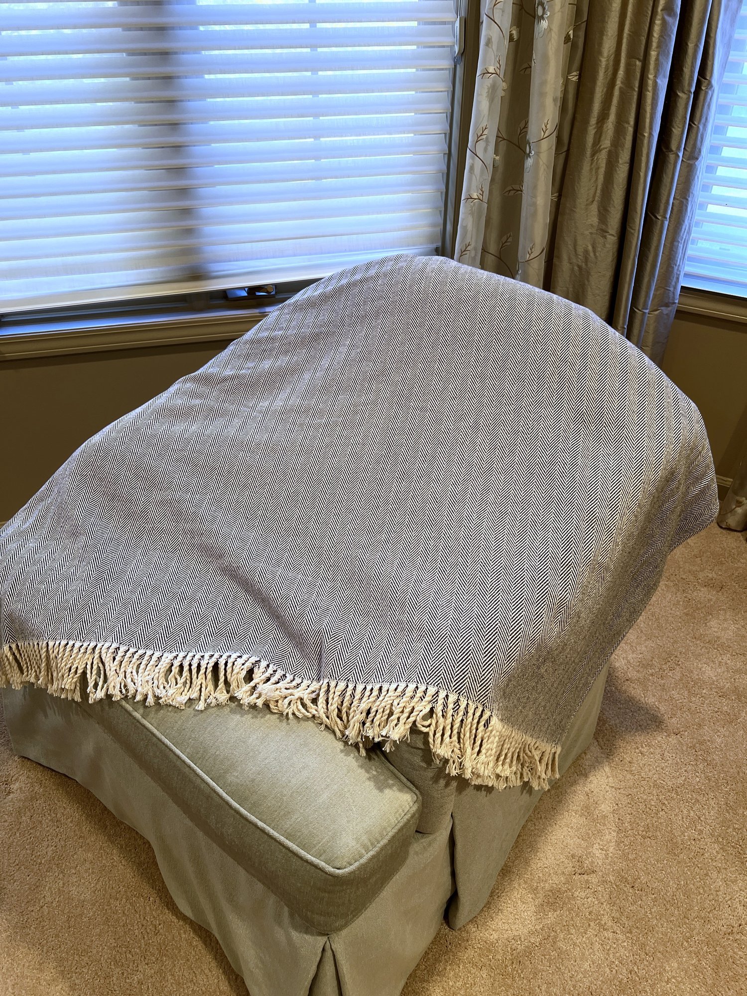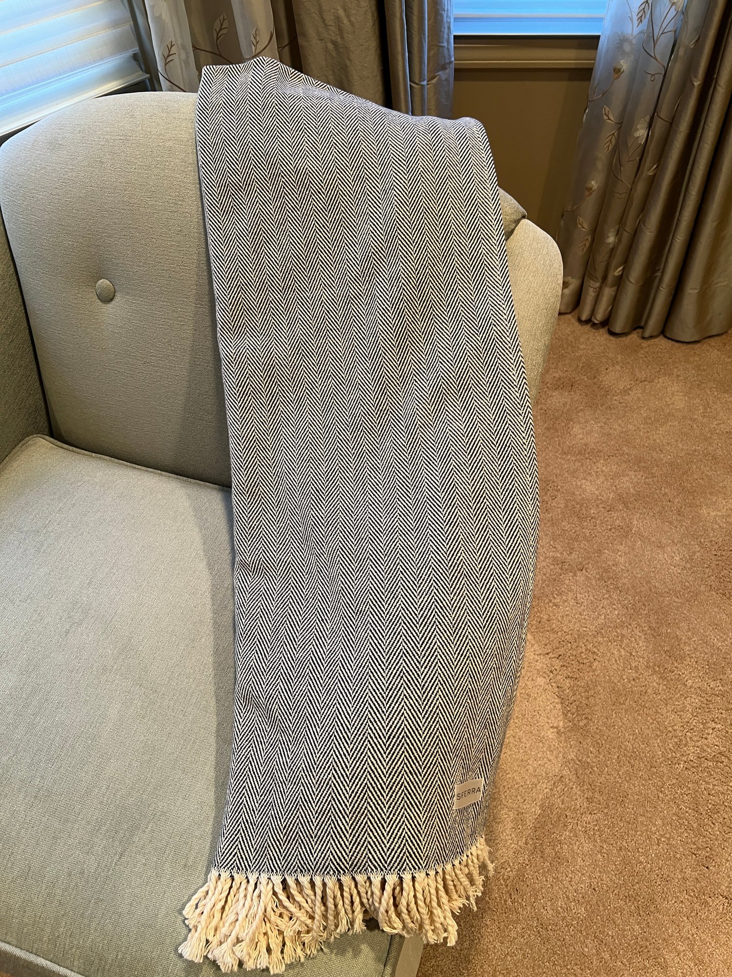 Beautifully Classic Herringbone Design With Natural Fringe Edge
