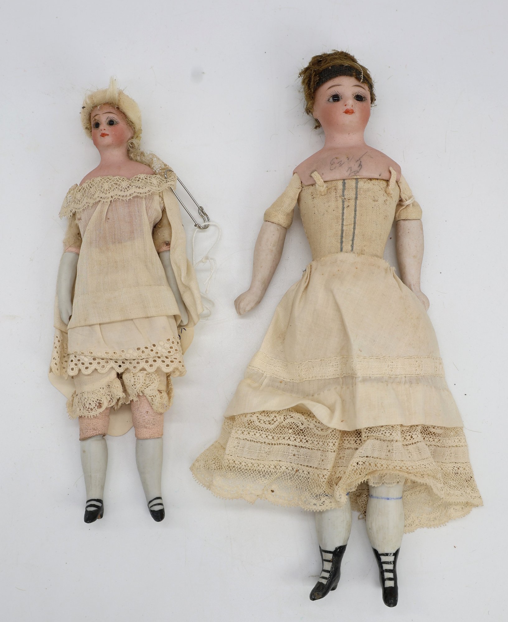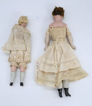 Cloth body , bisque shoulder ,head and limbs. Faces are delicate and beautifully made. !