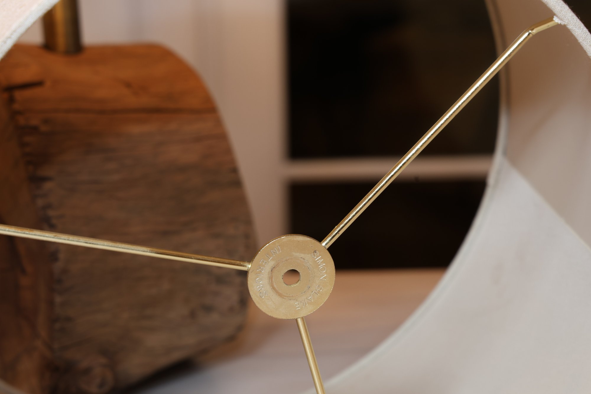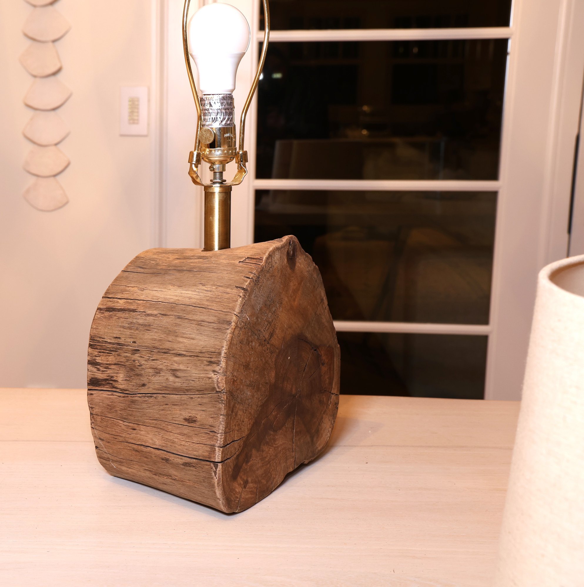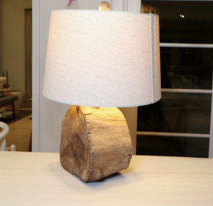 Simon Blake real driftwood lamp with linen shade