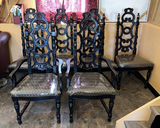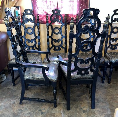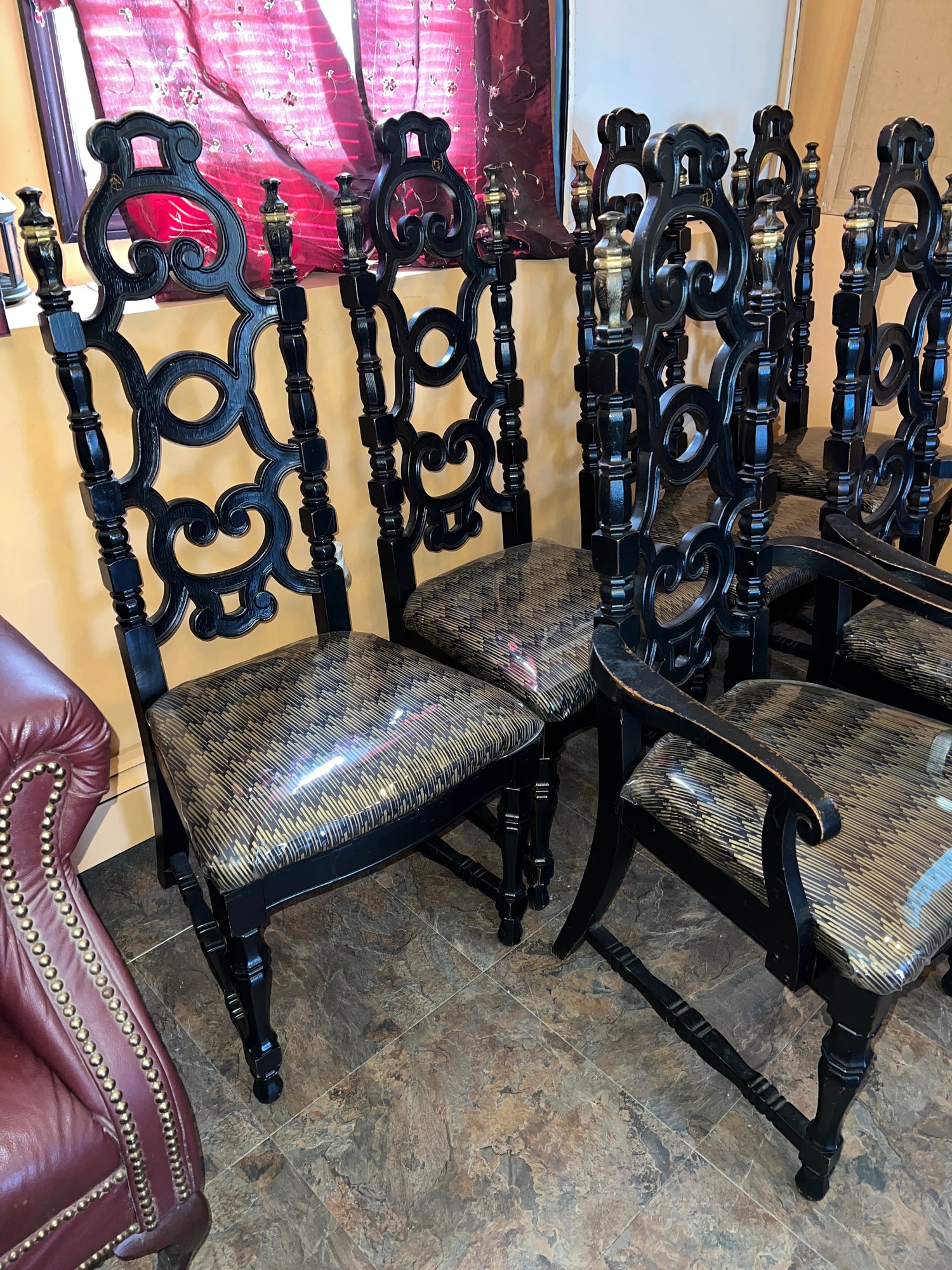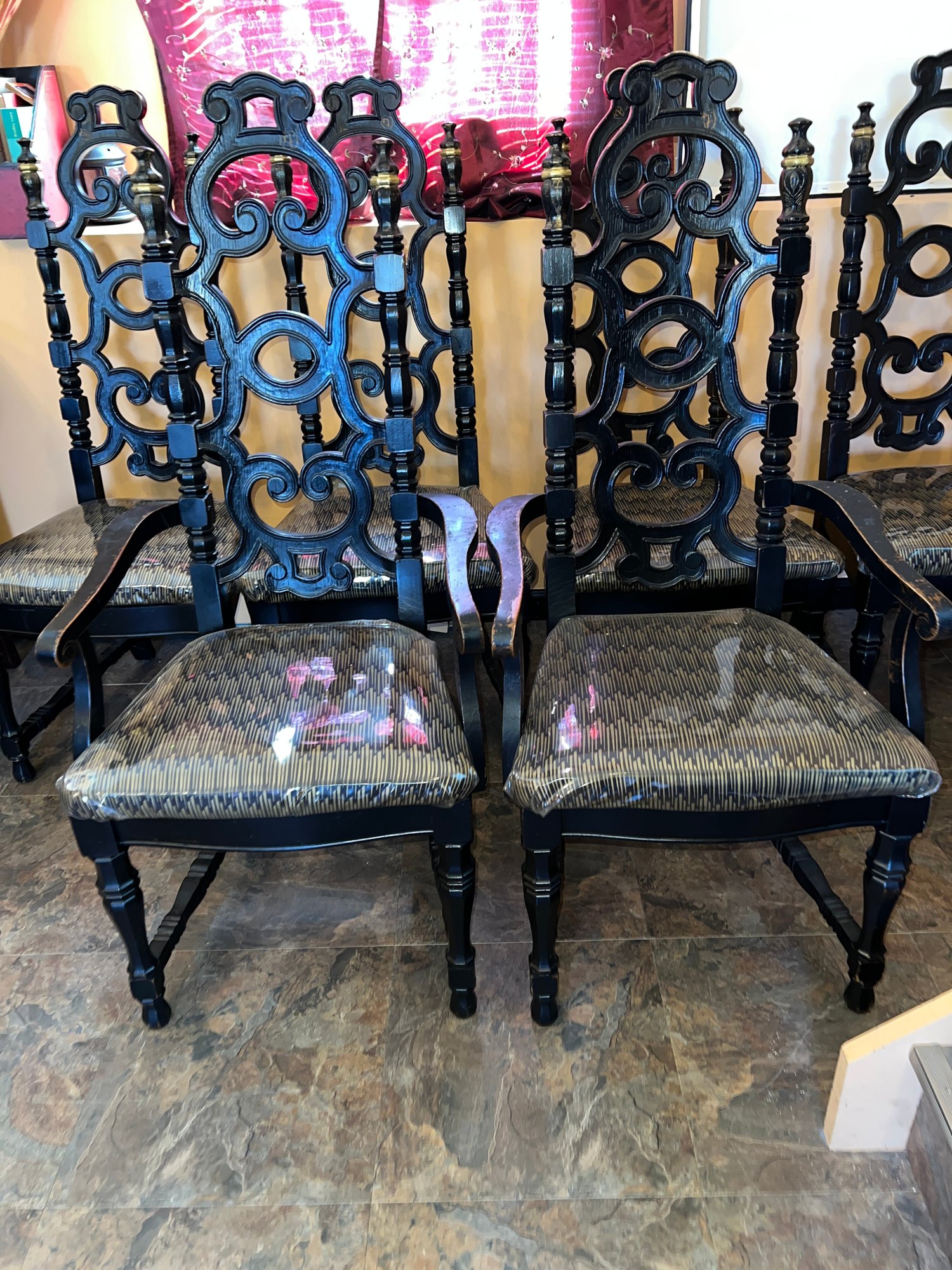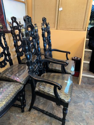 Four armless, 2 arm chairs. Very sturdy with vinyl covering ,once taken off will be like new fabric chairs.