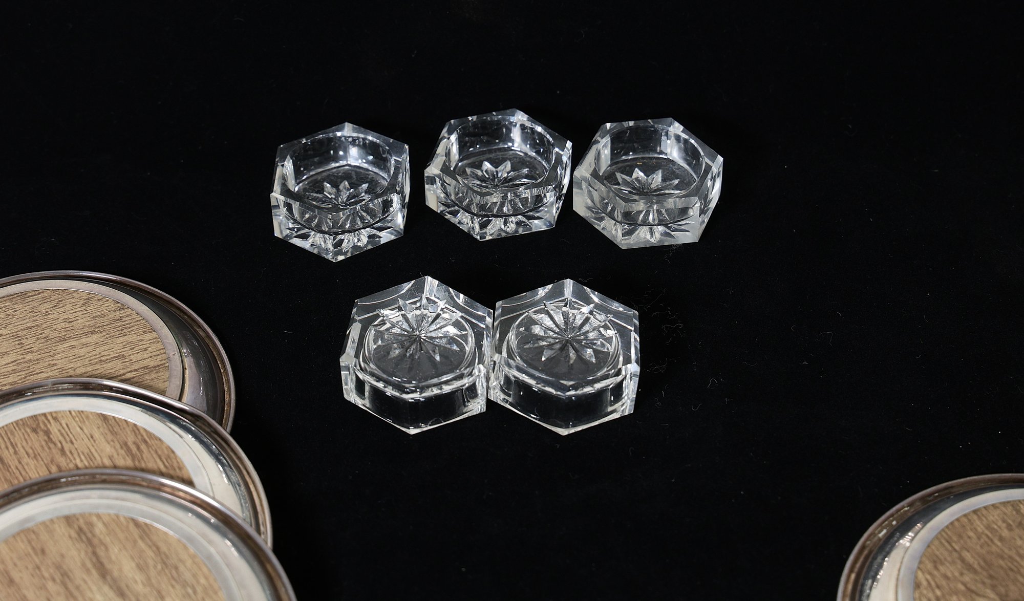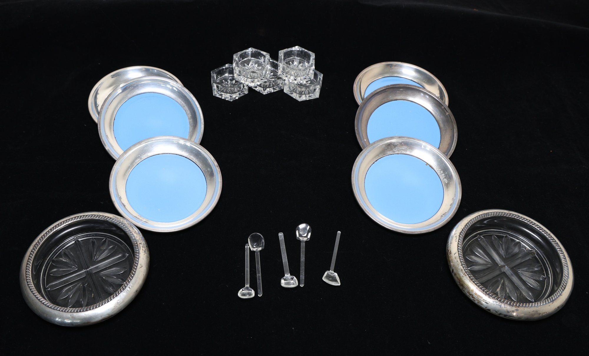 2 sterling and crystal coasters
