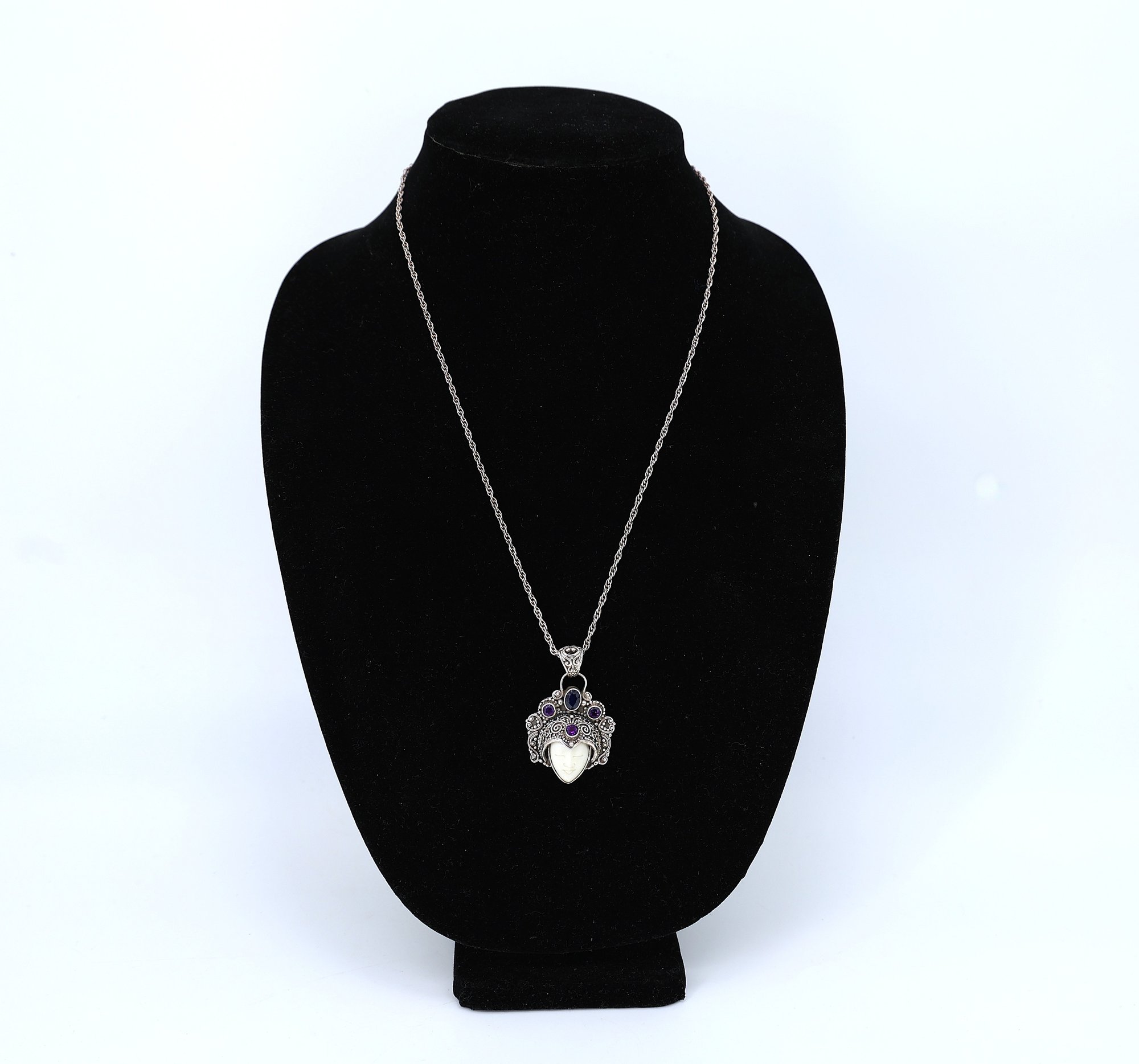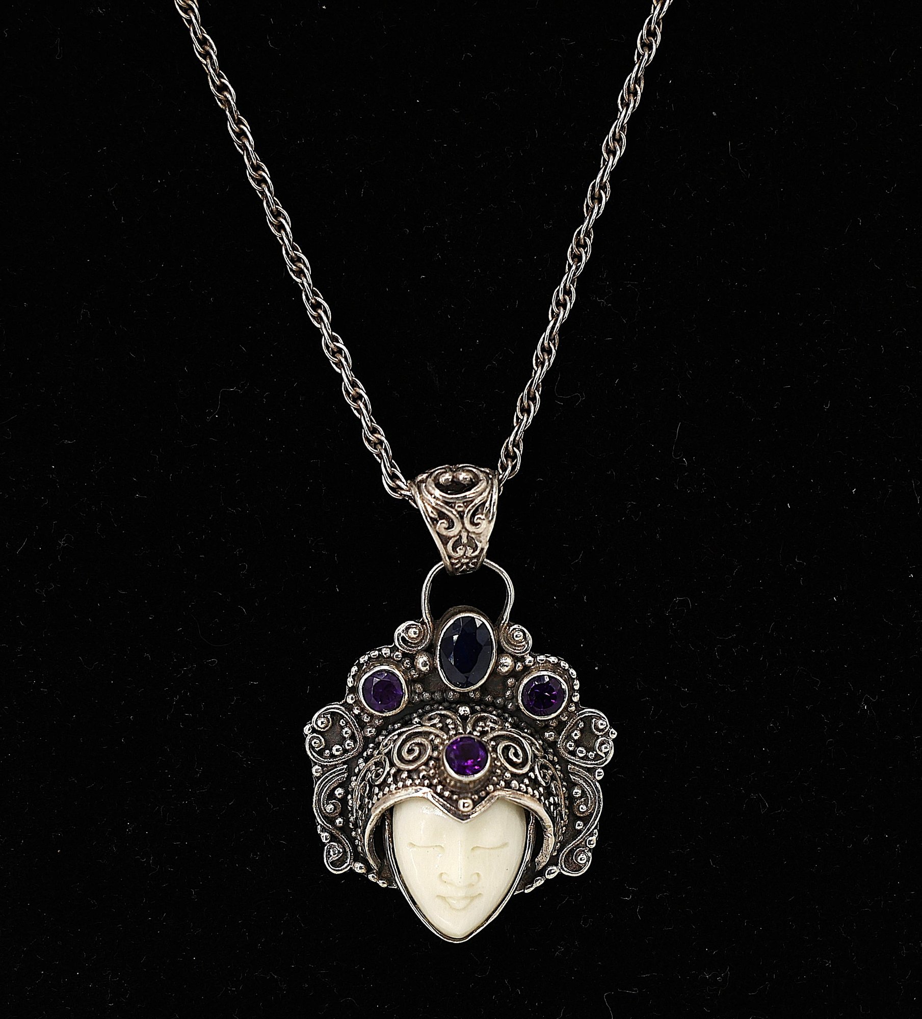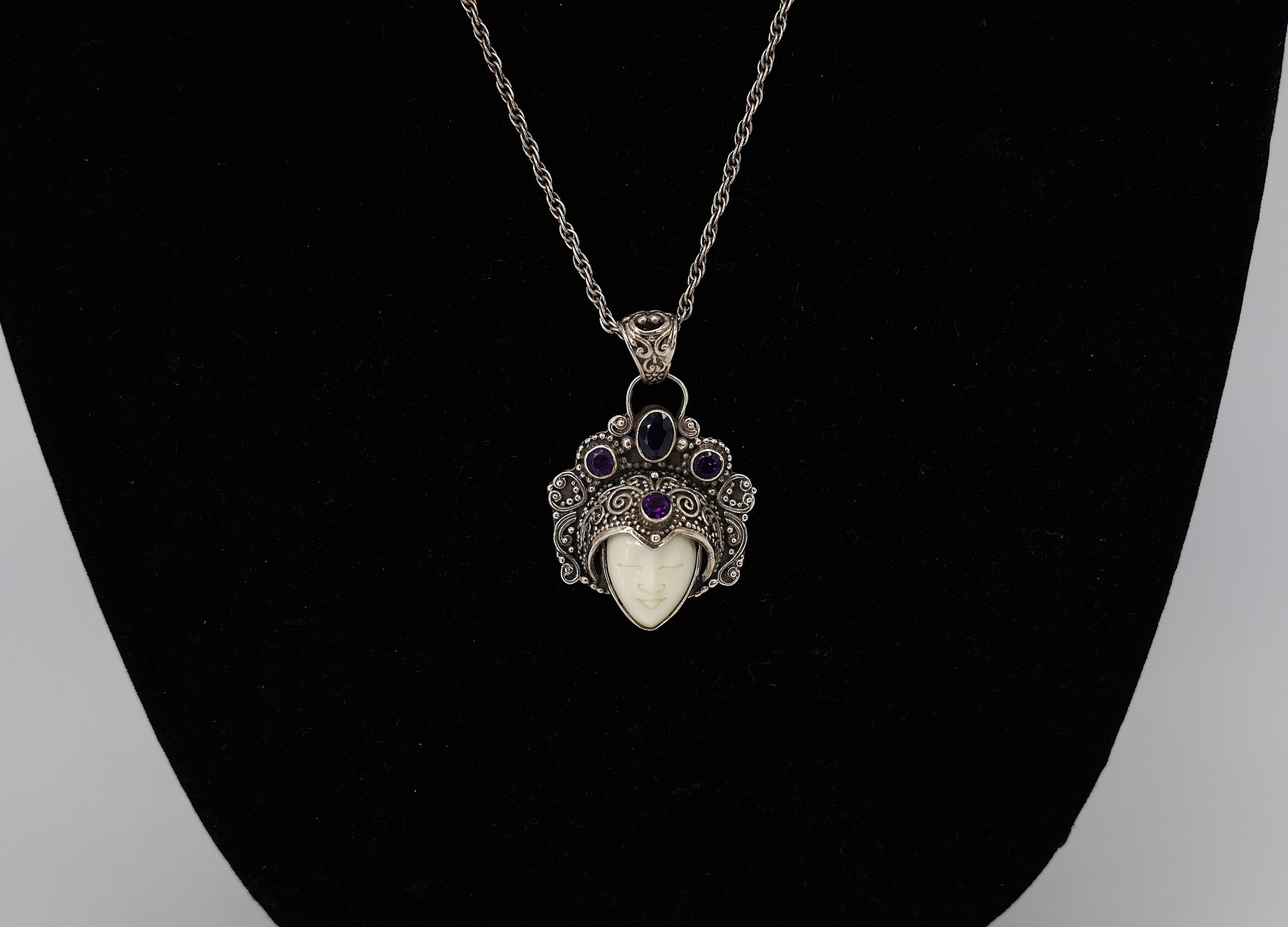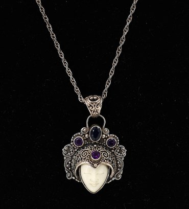 Sterling Silver and amethyst pendant necklace, often referred to as a "Bali Goddess."
