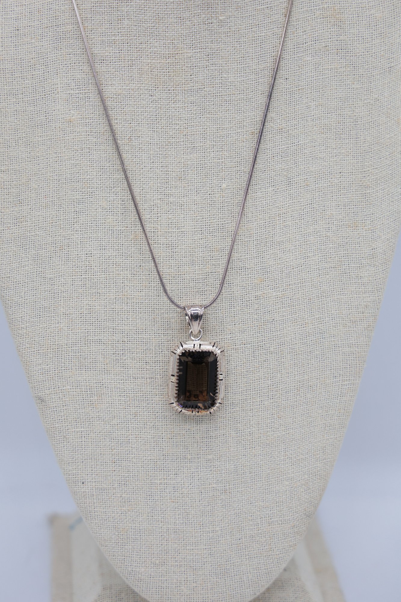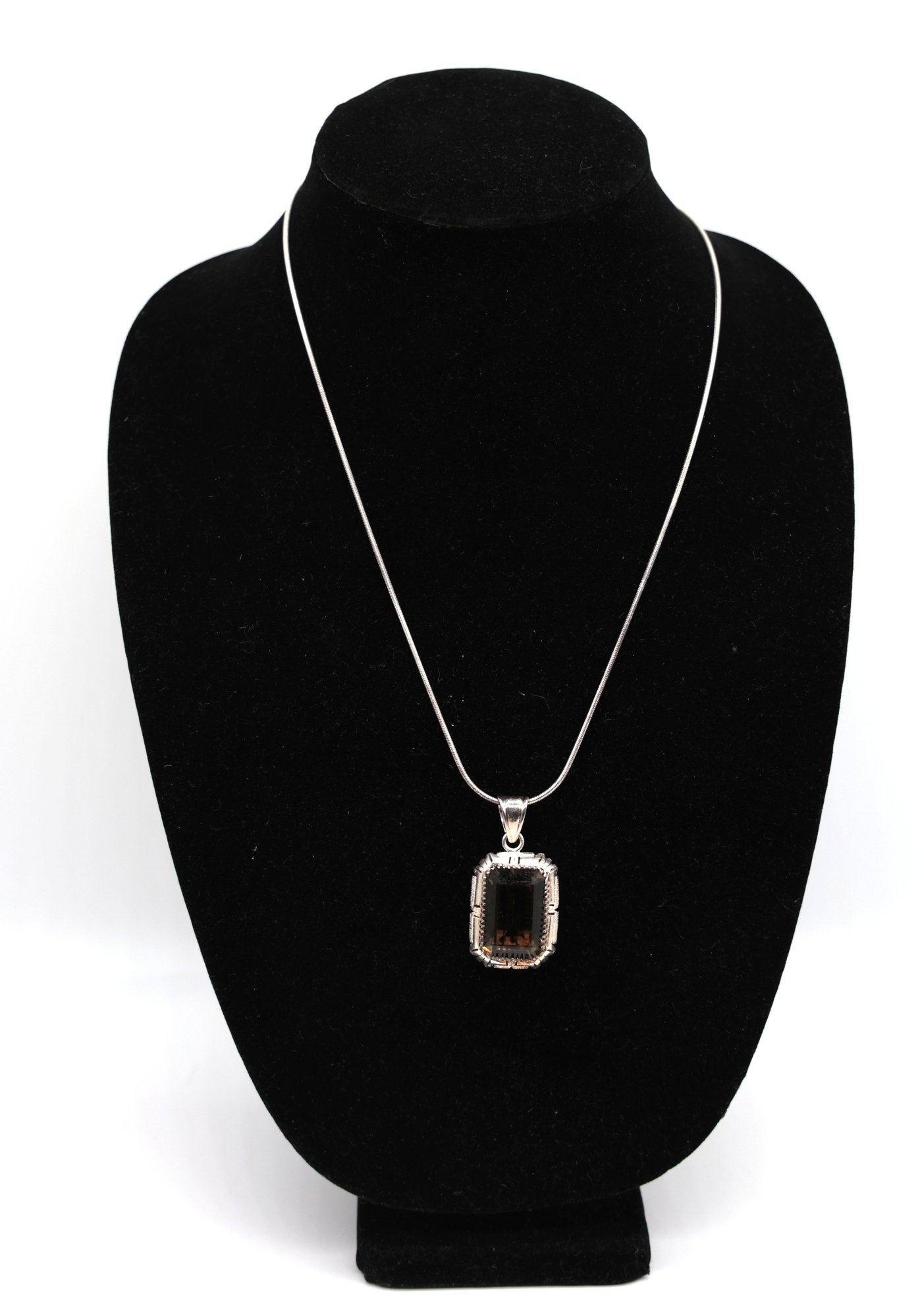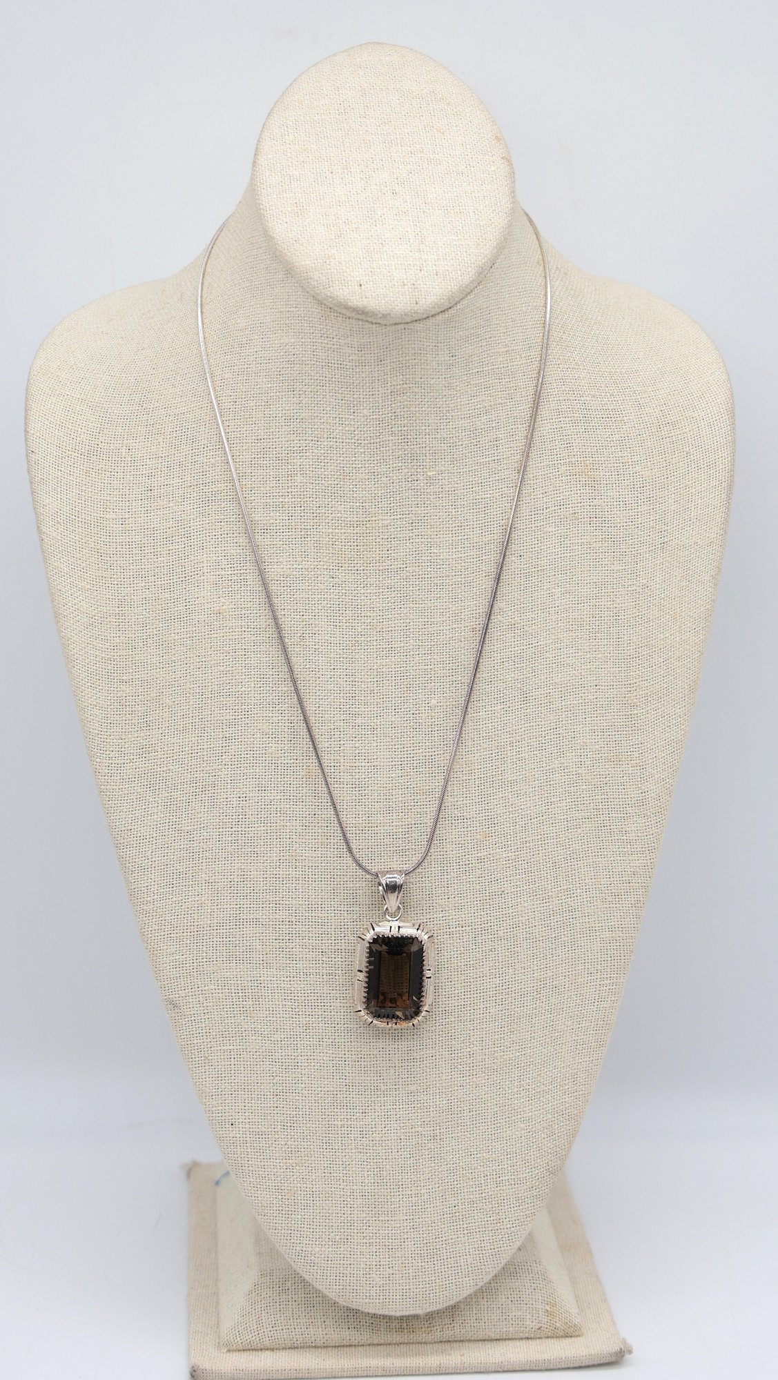 Sterling Silver 20" L chain With Smoky Quartz pendant 1.75"L