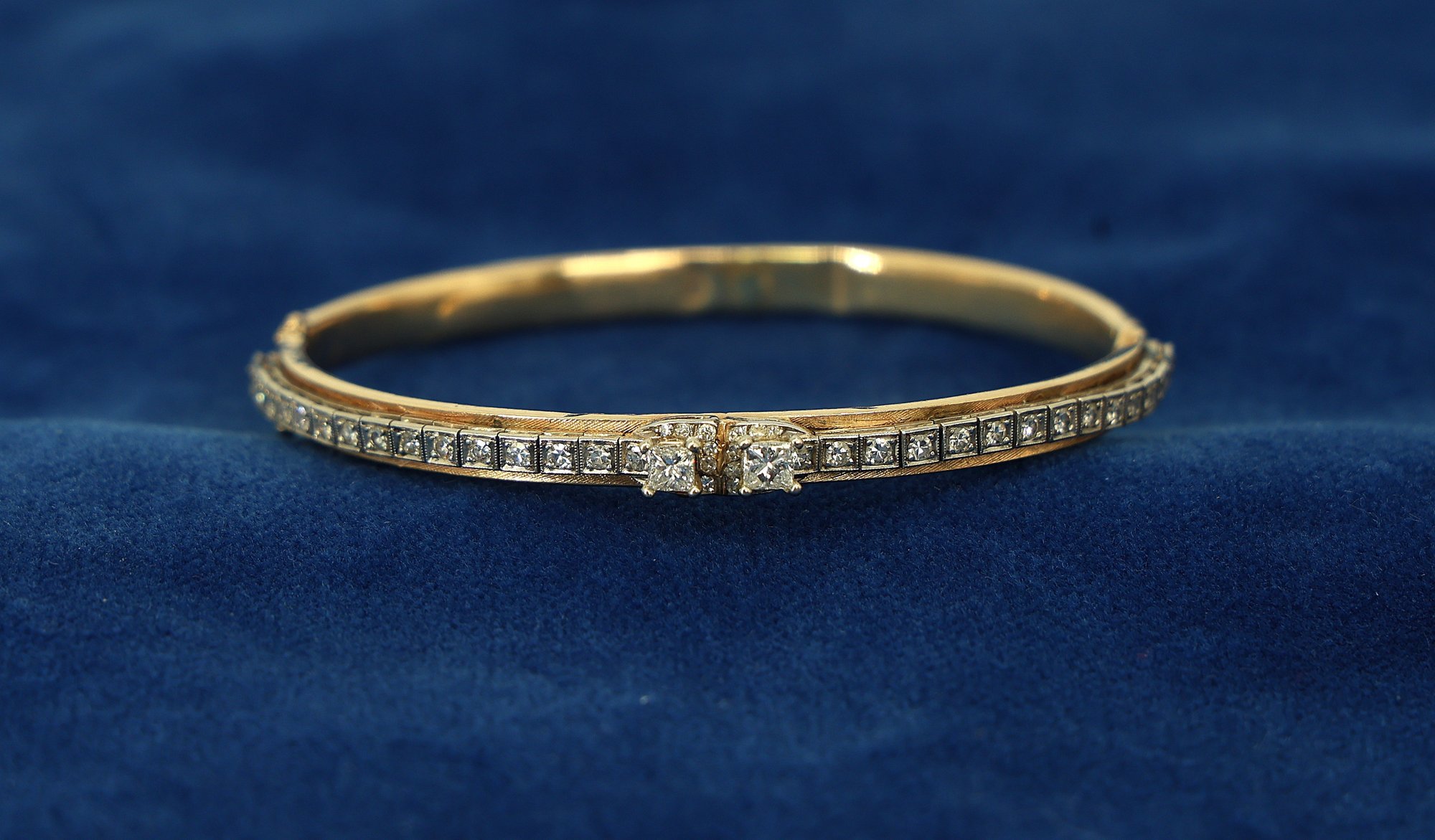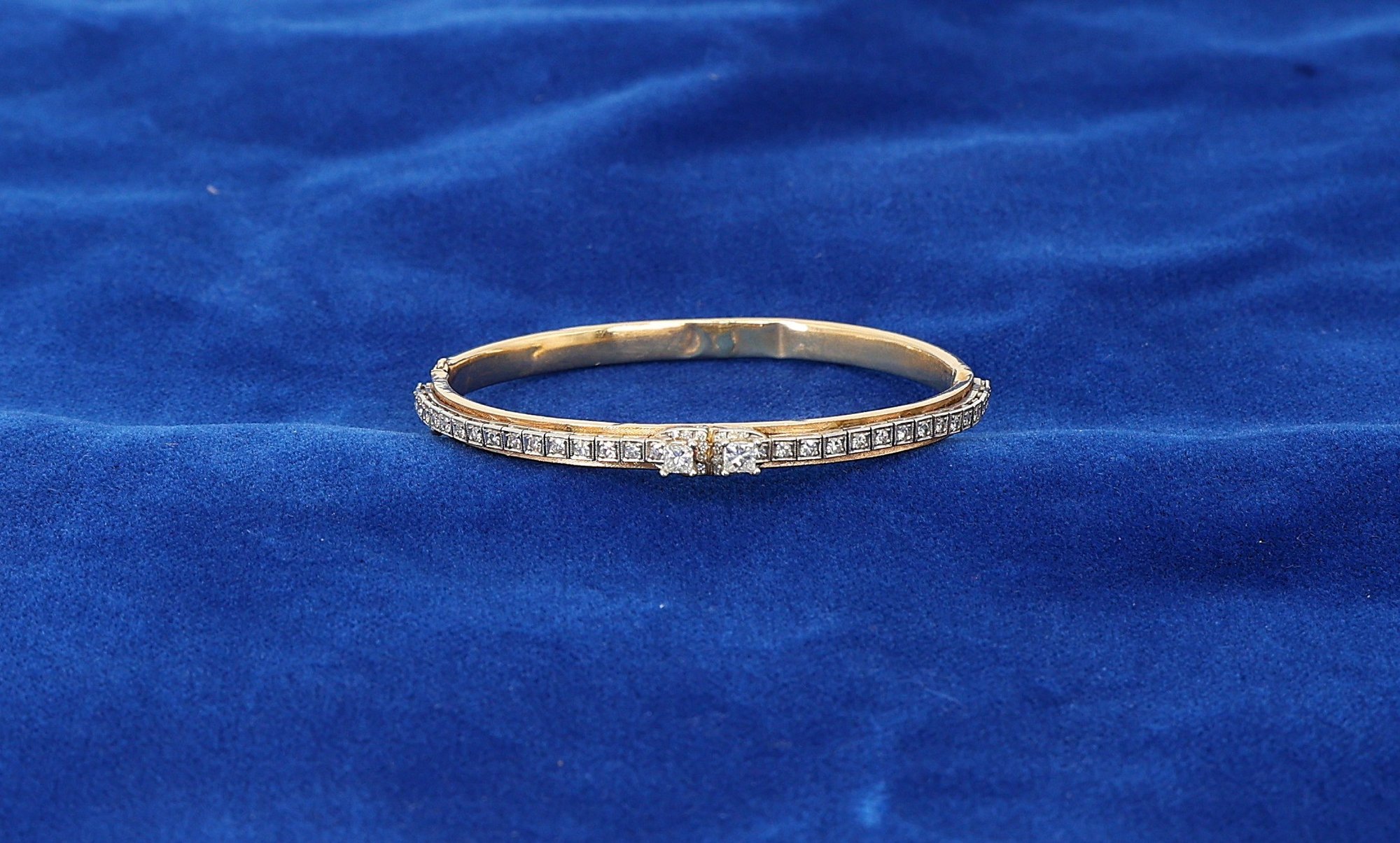 Two square center diamonds, approx. .30 each- seven surrounding diamonds