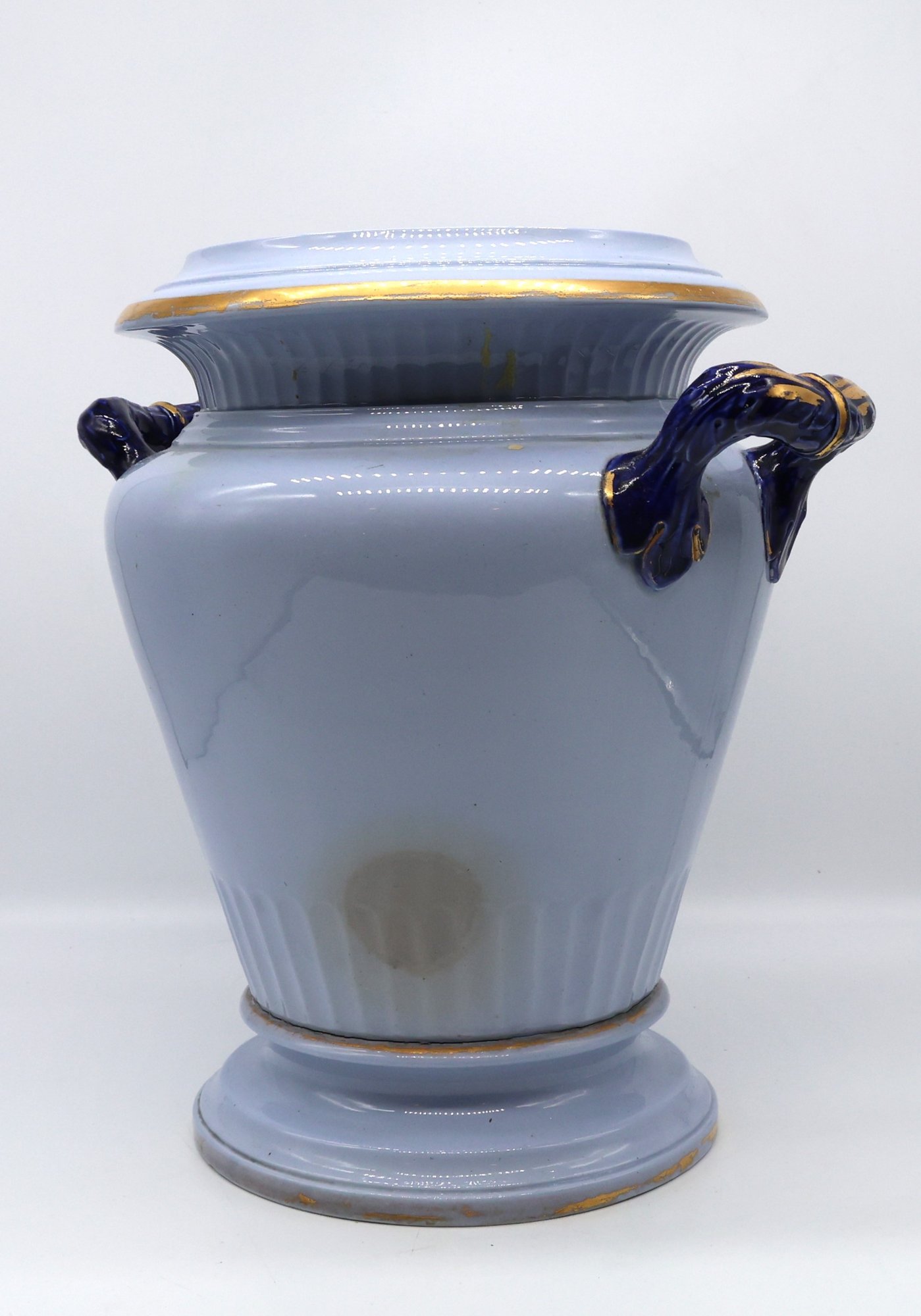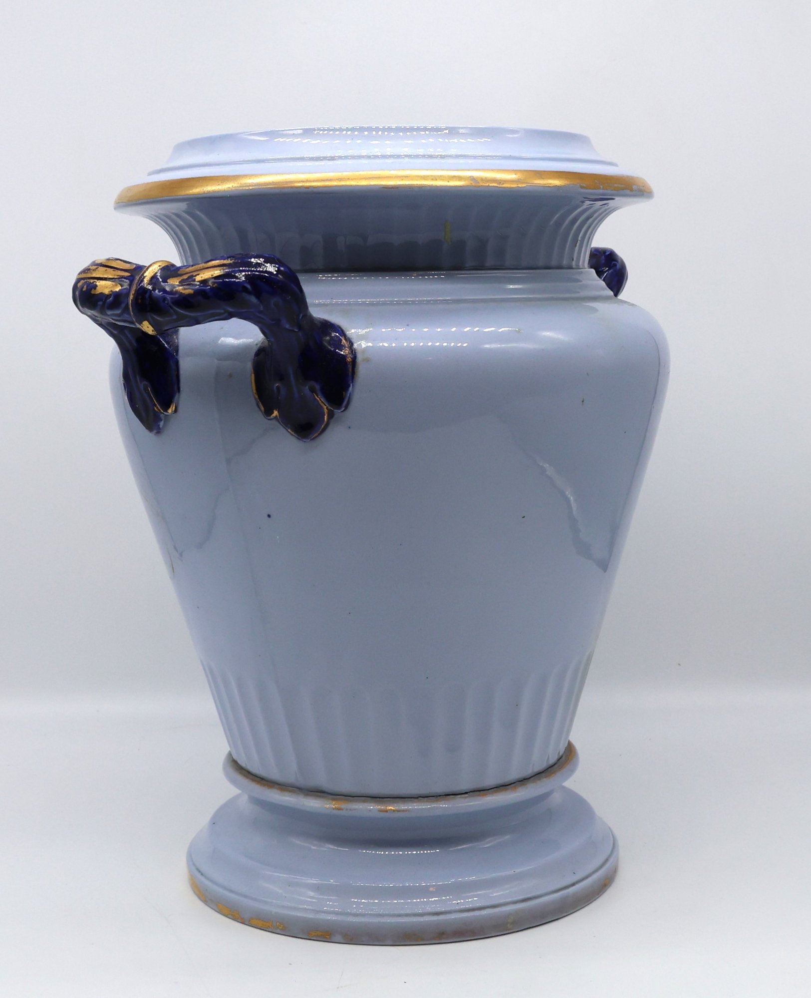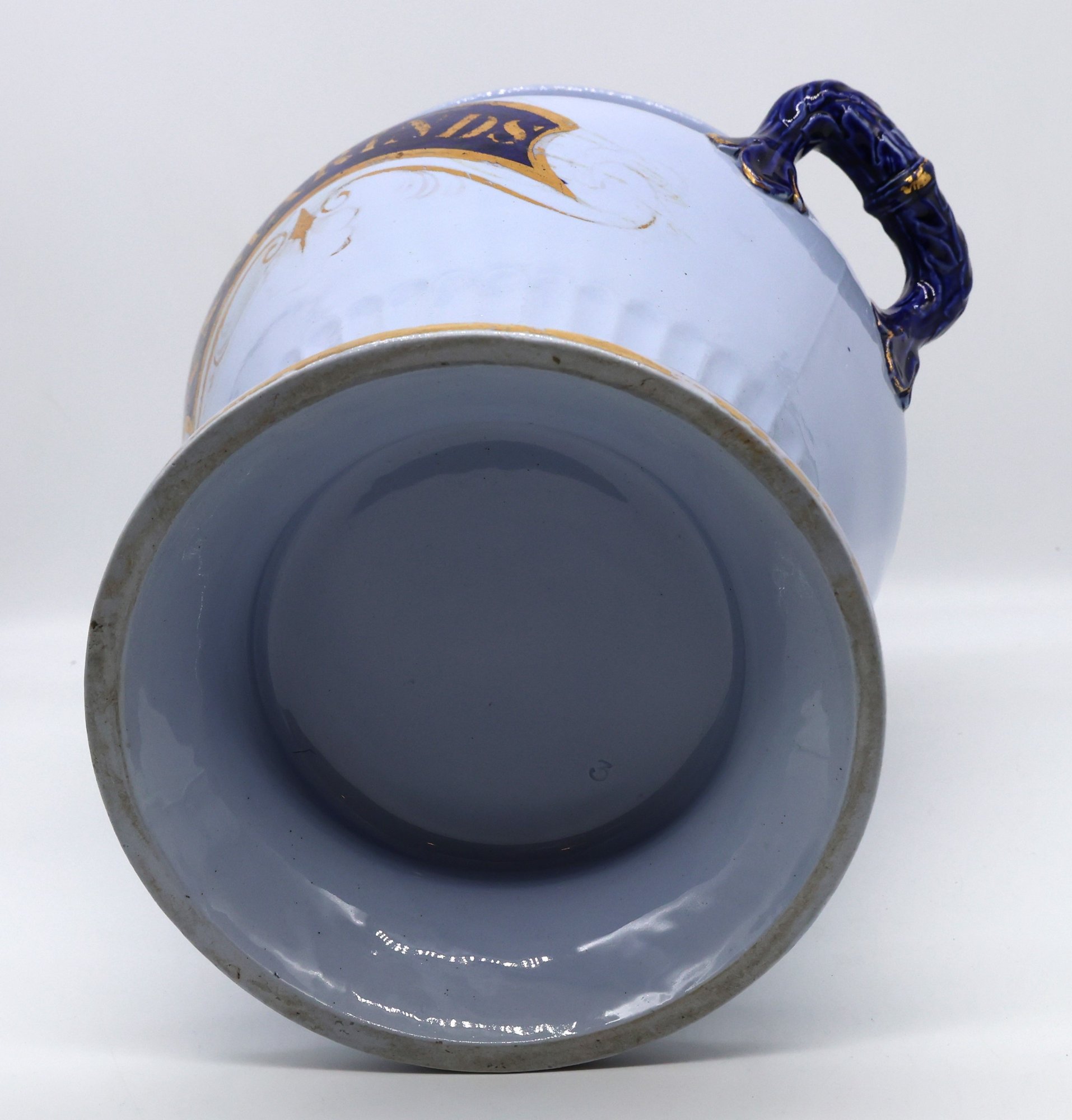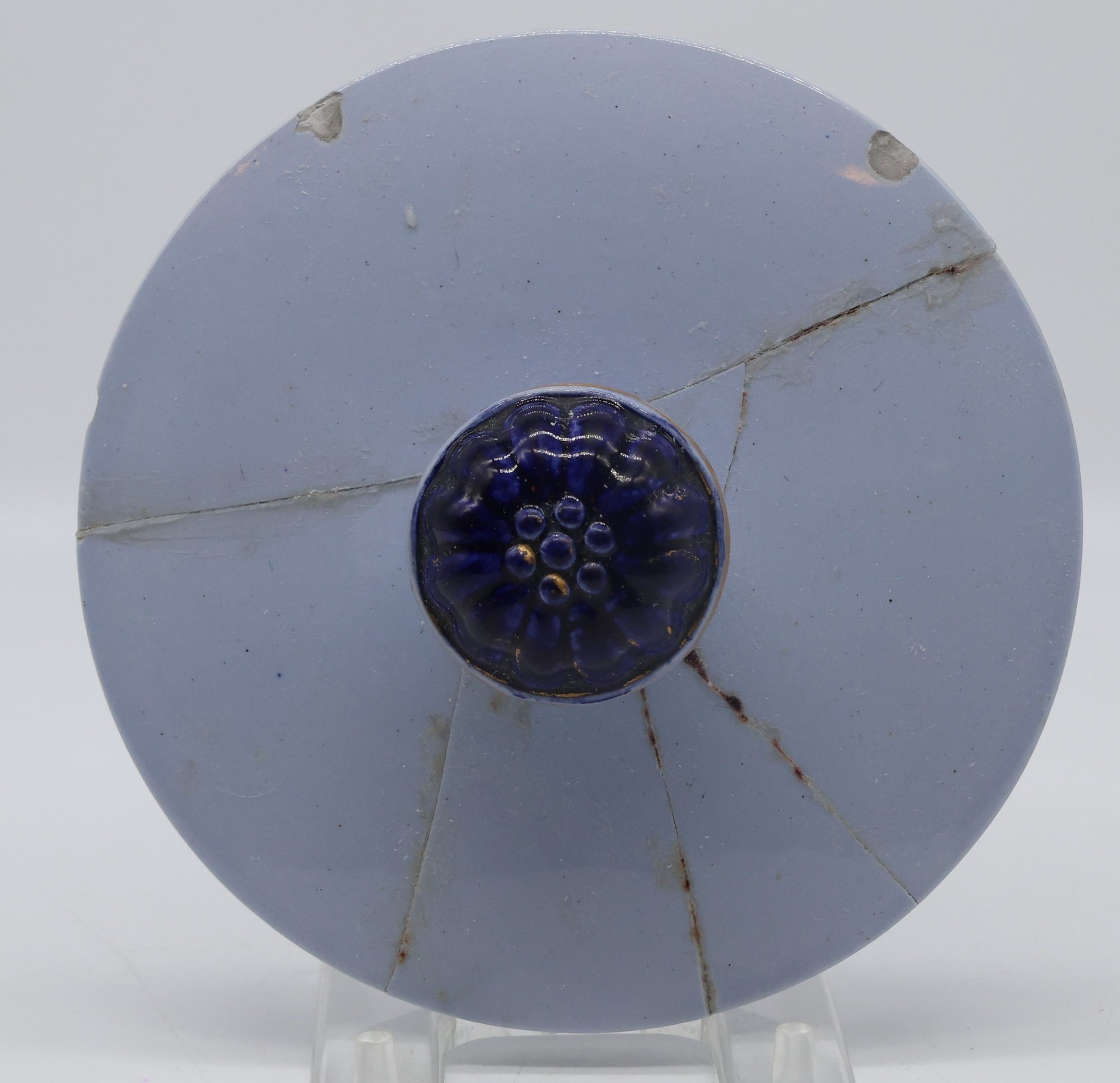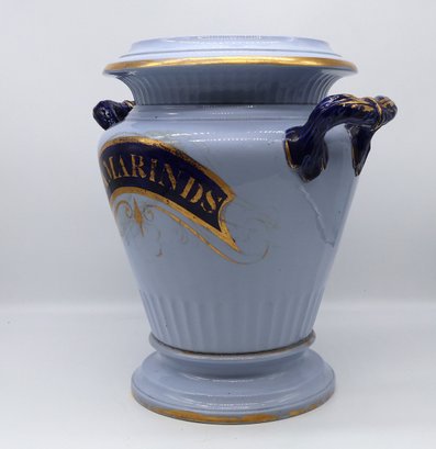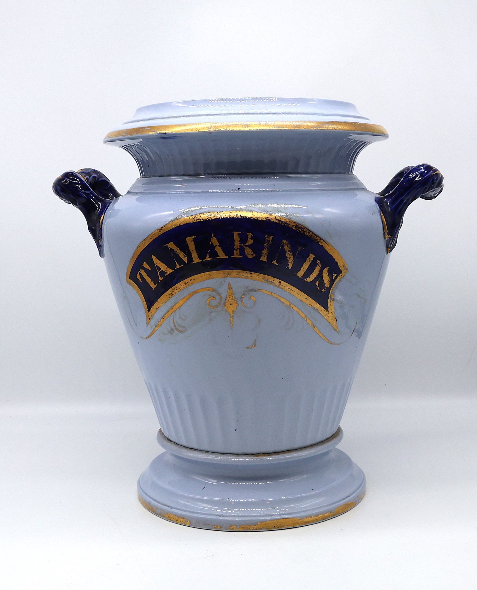 A fine and rare powder-blue Tamarind jar with lid (See photos for lid damage); otherwise, the jar is nice!