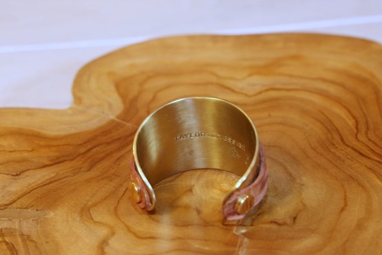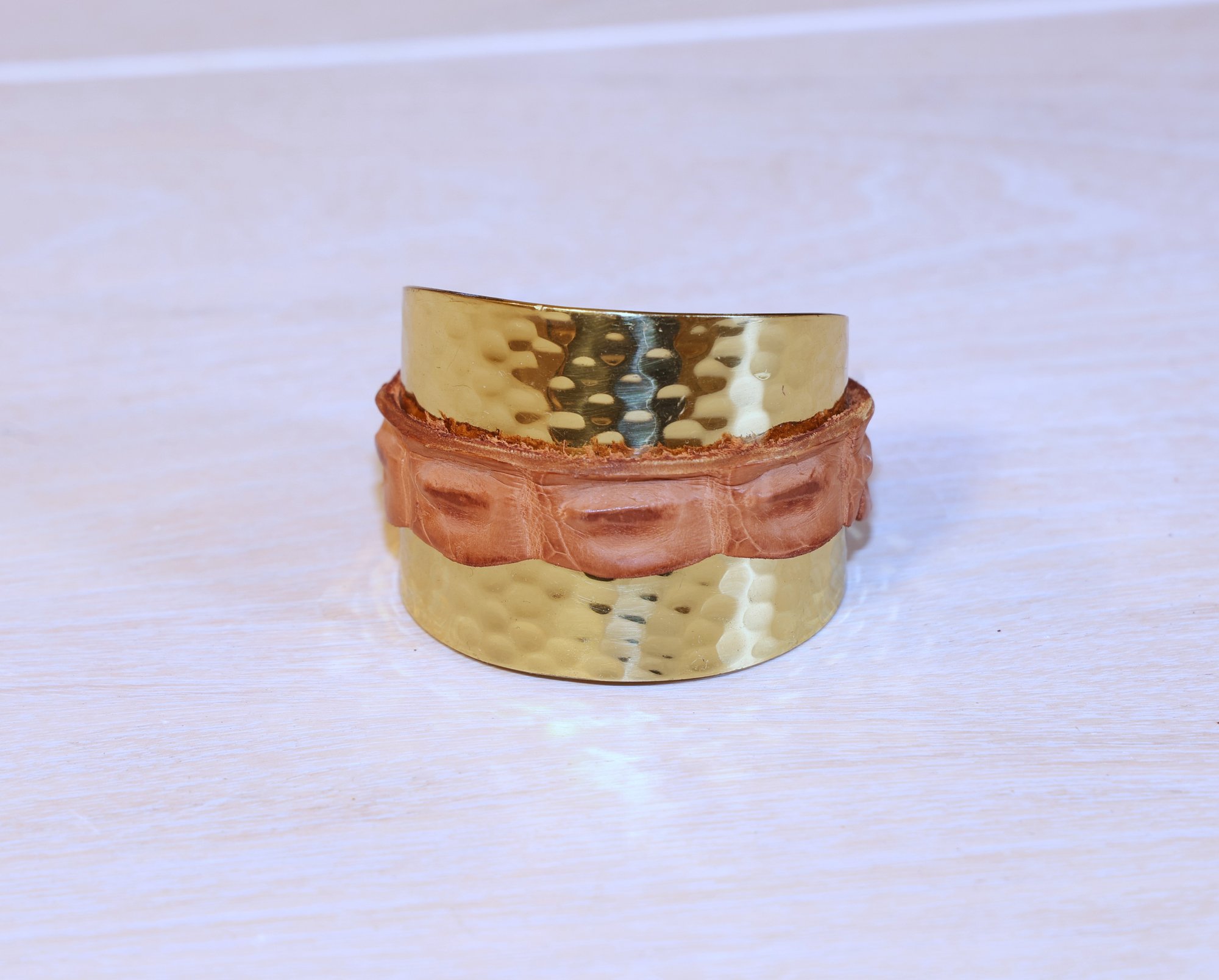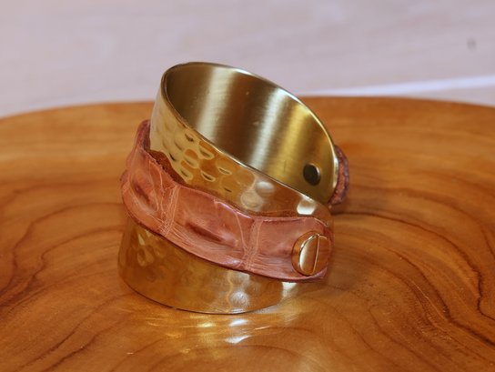 Taylor and Tessier Hammered cuff with Italian leather 7"