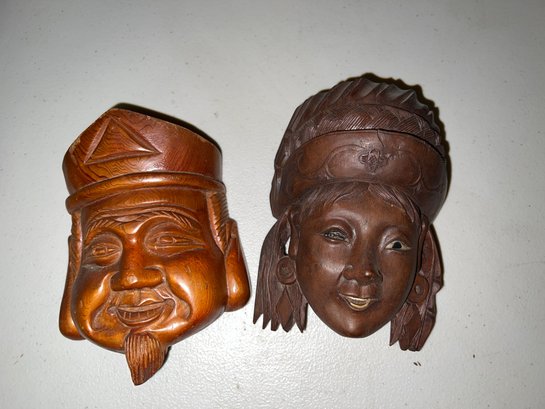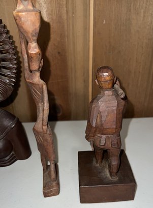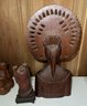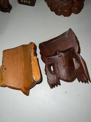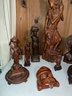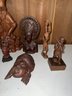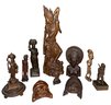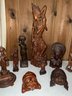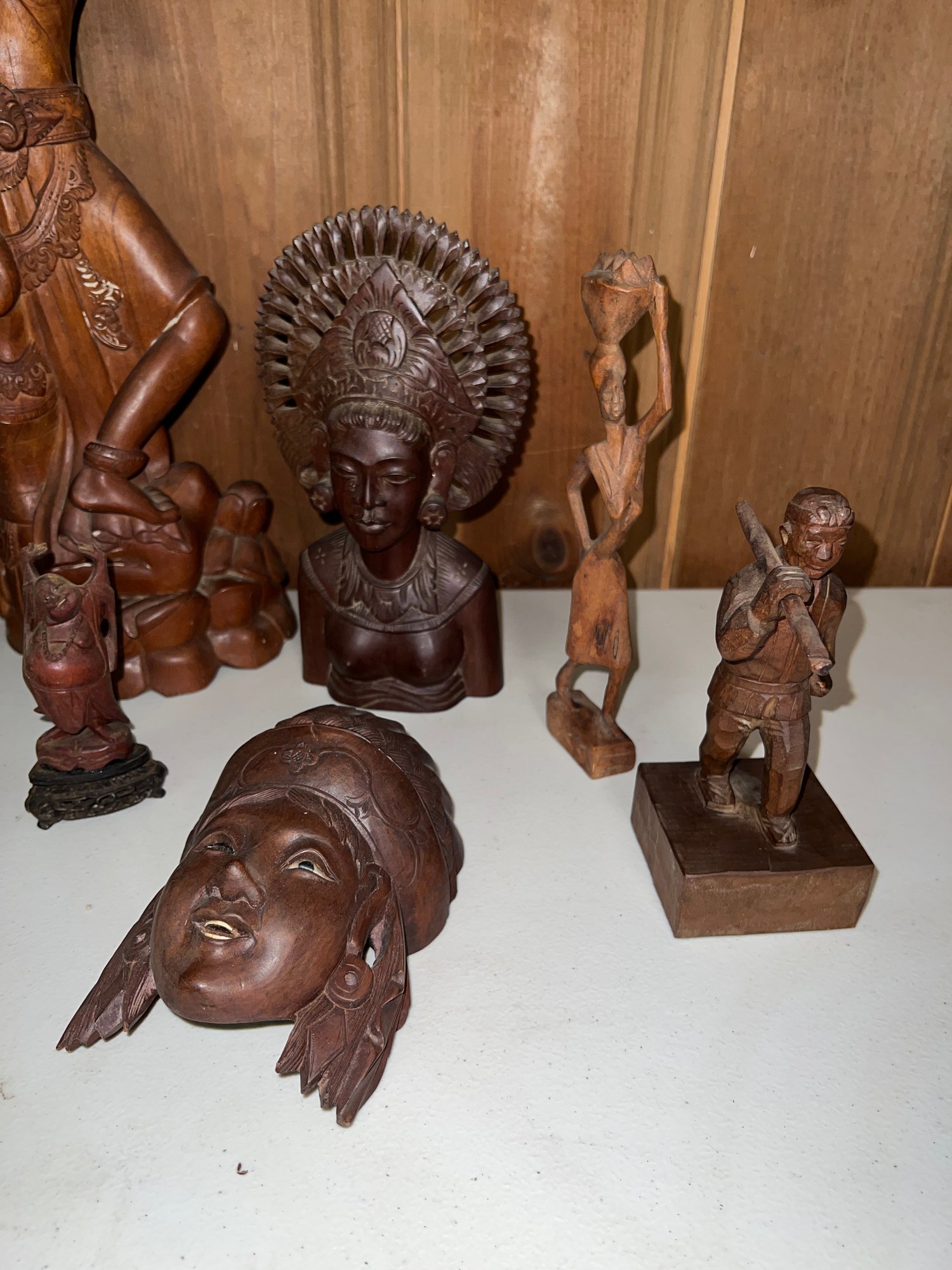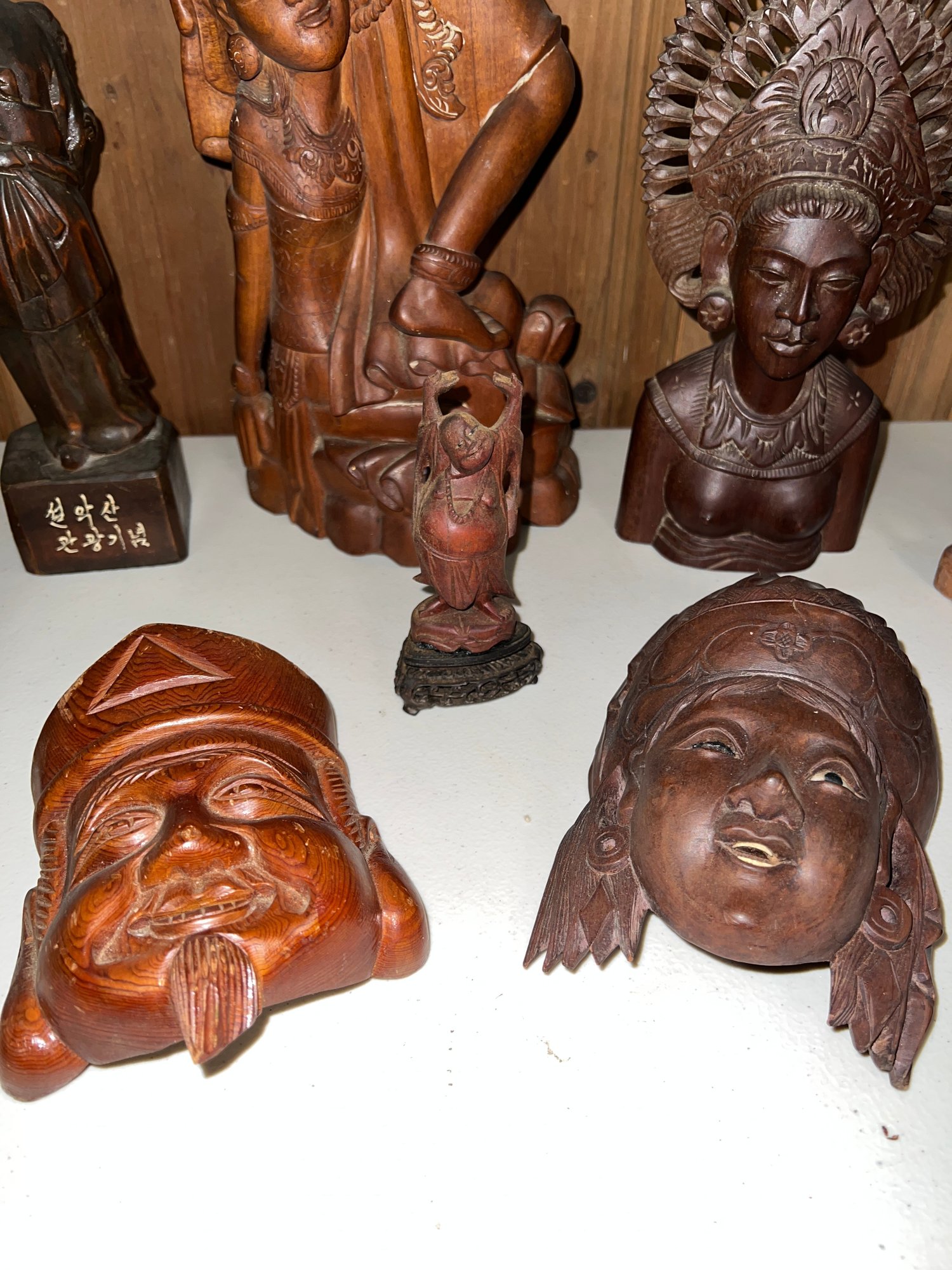 A collection of traditional Balinese hand-carved hardwood sculptures and masks.