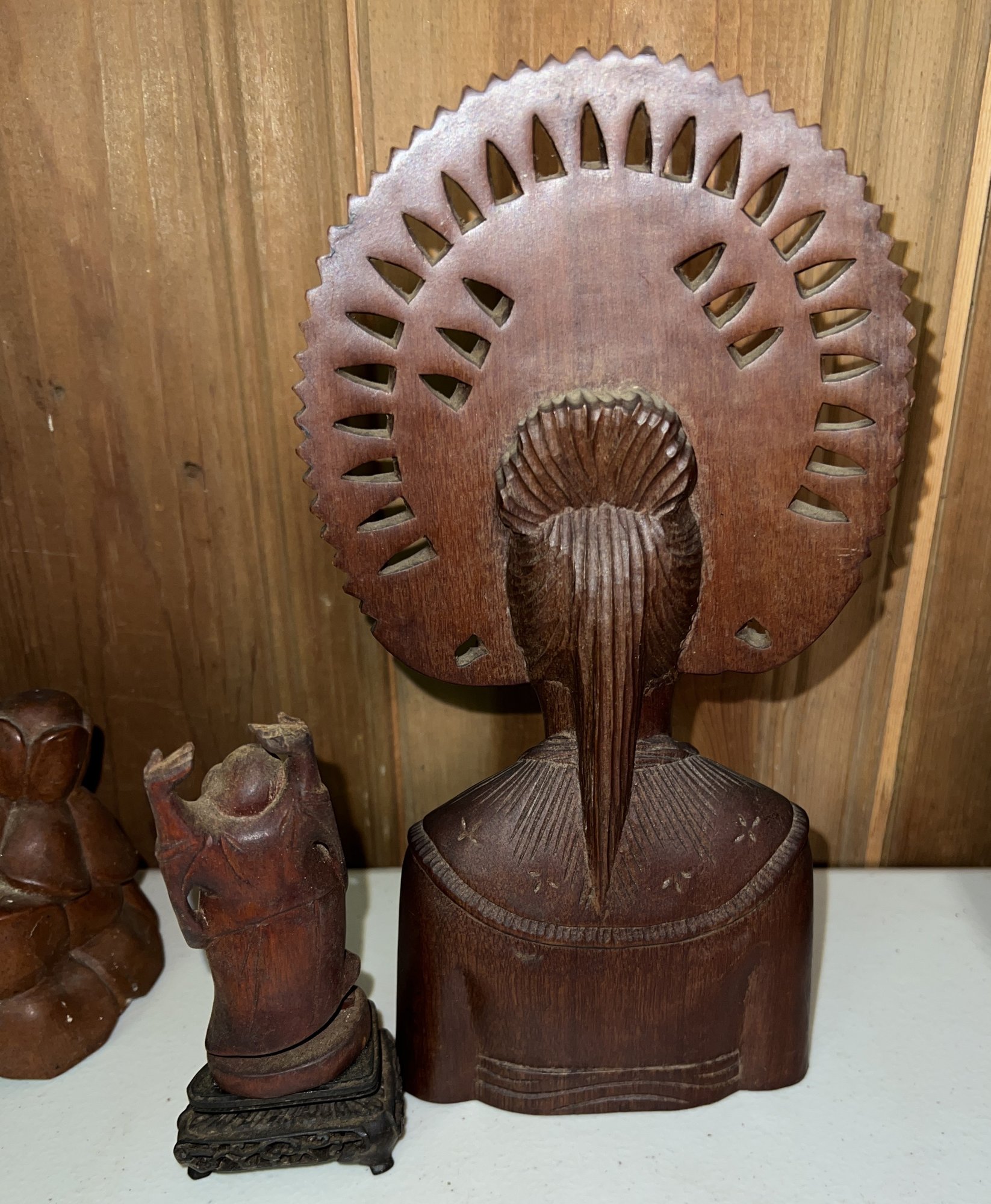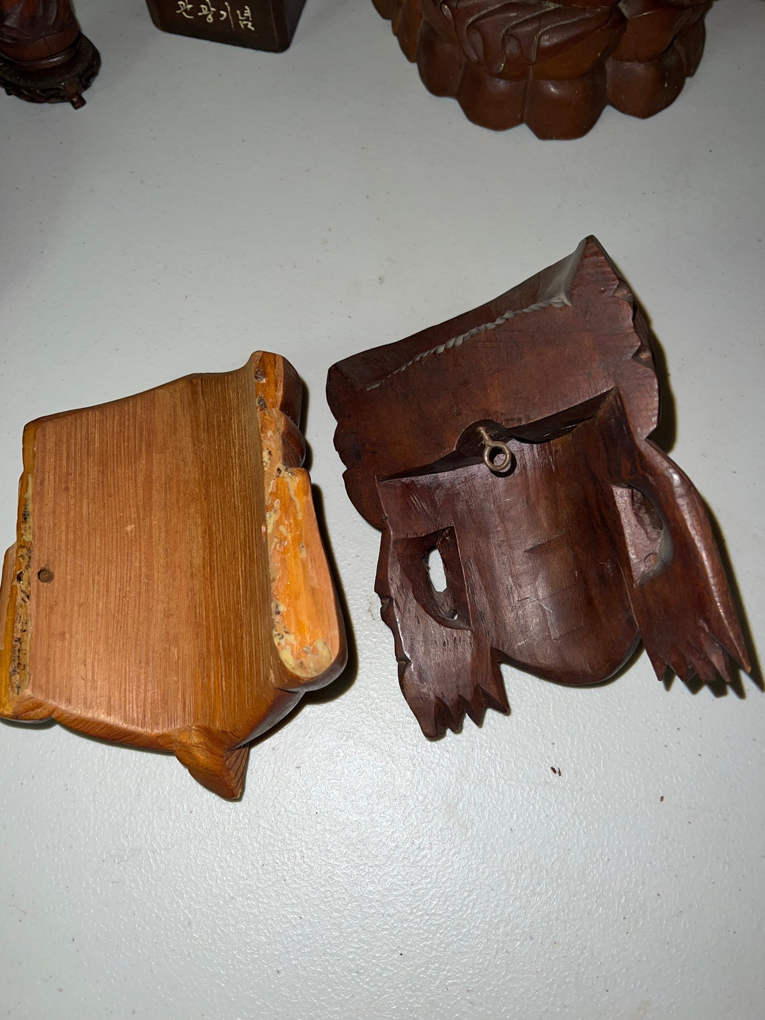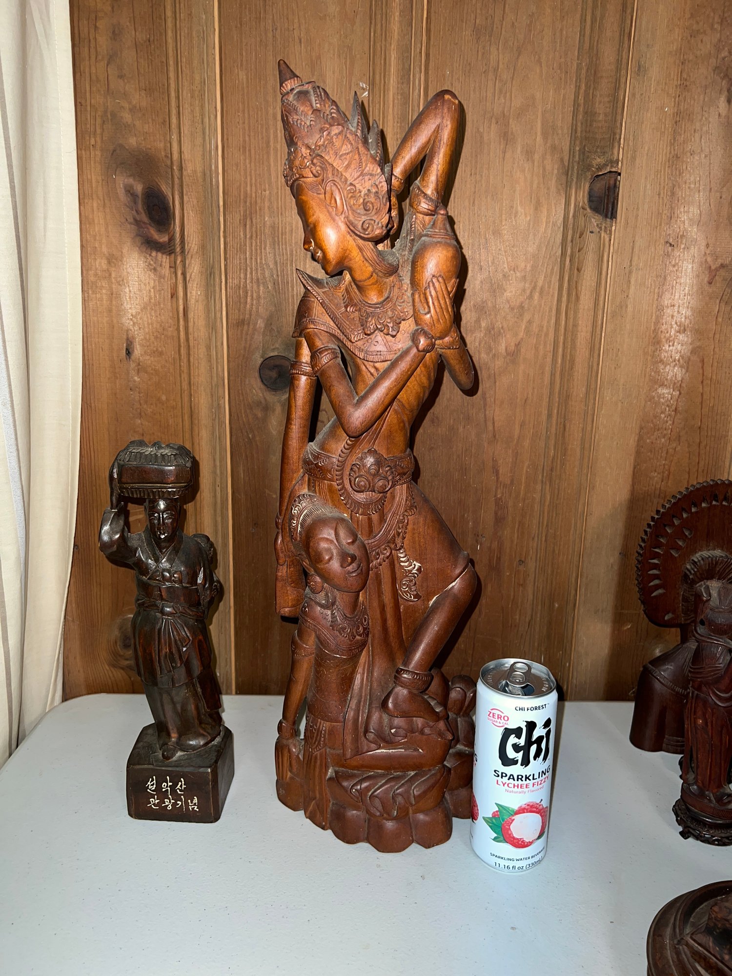 One figure includes Korean text on its base, indicating it may have been a souvenir from Seoraksan National Park in South Korea. seol-agsan gwangwang-ginyeom