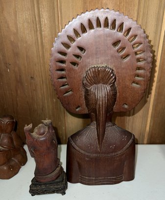 Material: The items are crafted from hardwood, likely local Indonesian woods.