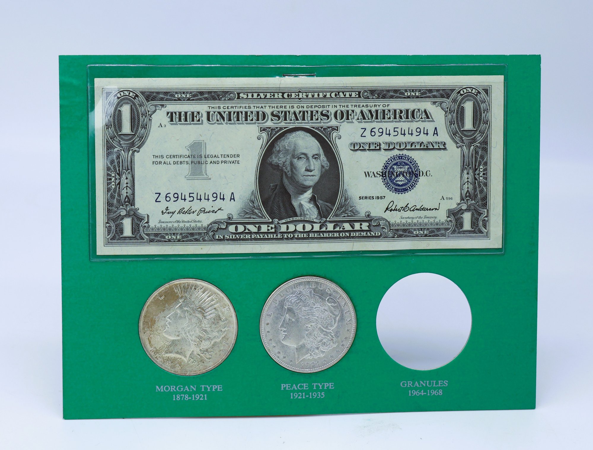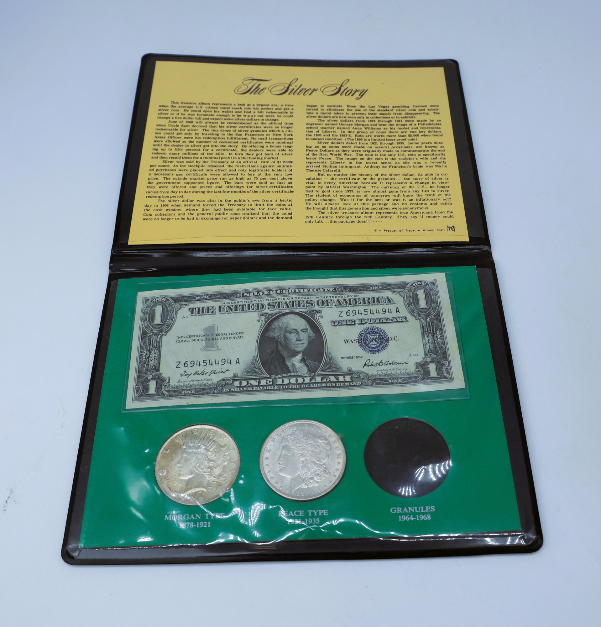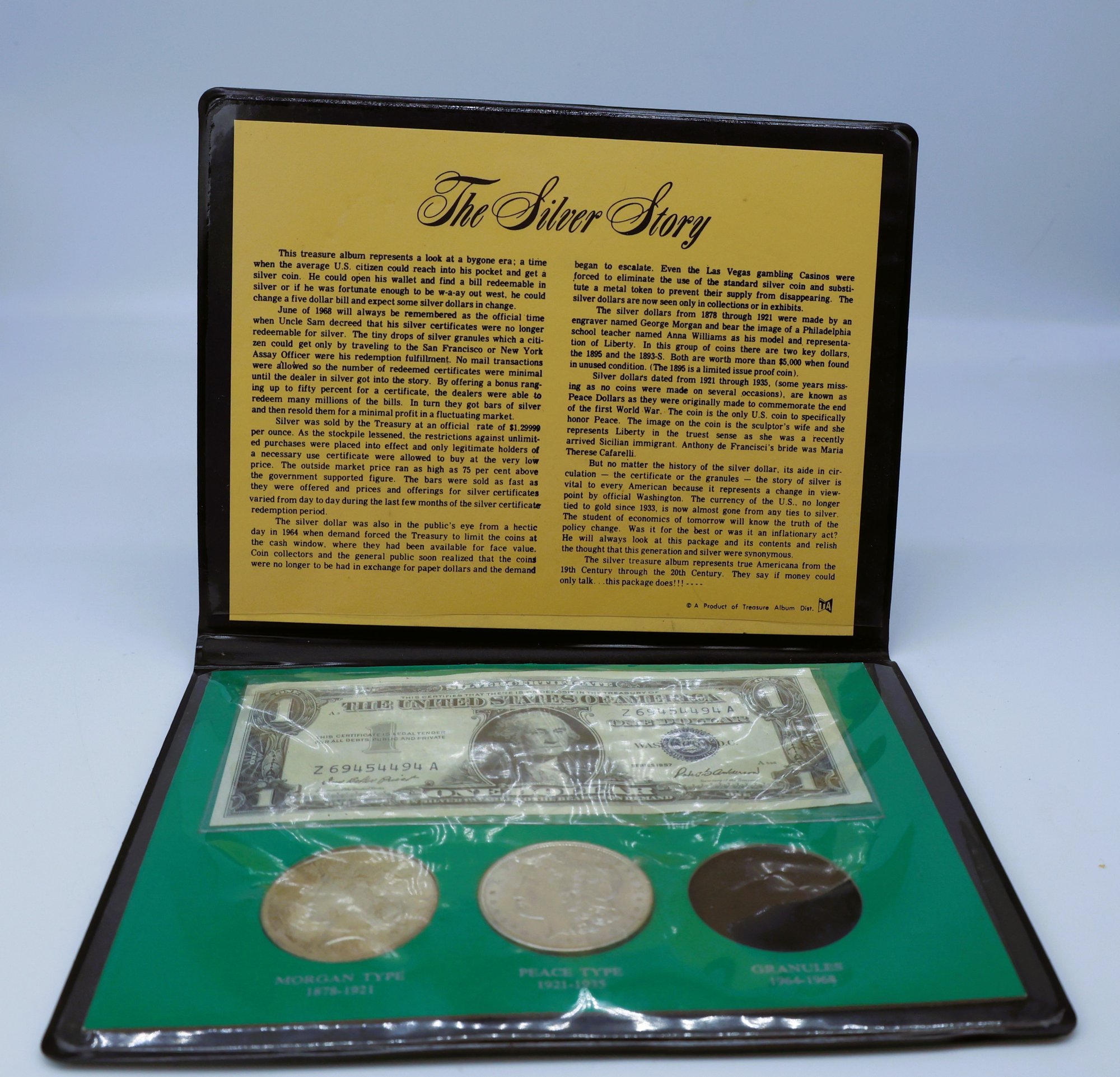The Silver Story - Treasure Album. This album offers a glimpse into a past era, a time when average Americans could easily access a silver coin from their pockets. June 1968 marks the official end of Uncle Sam's silver certificates being redeemable for silver. The small silver granules that citizens could obtain—only by visiting the San Francisco or New York Assay Office—were the last remnants of their redemption.