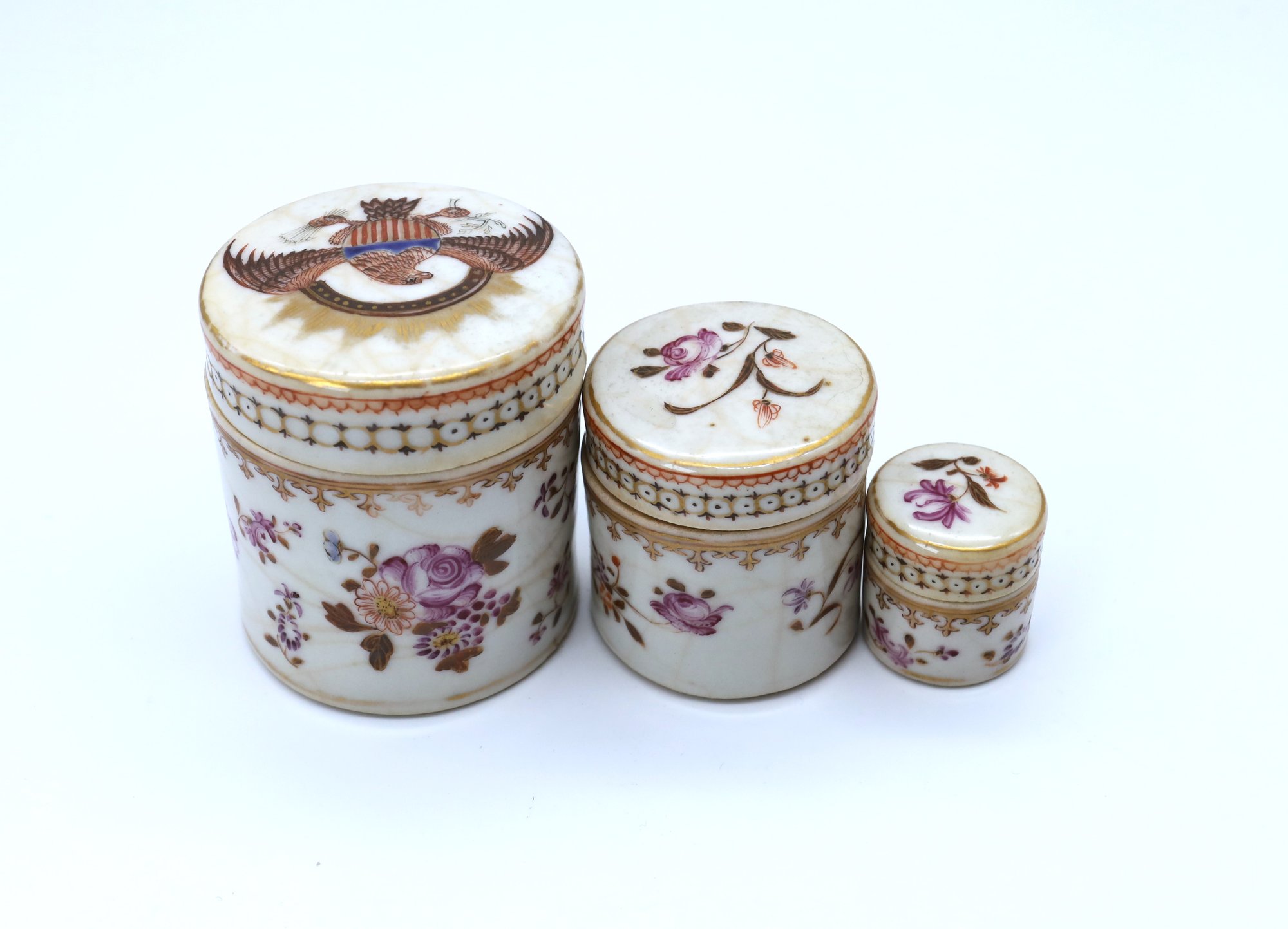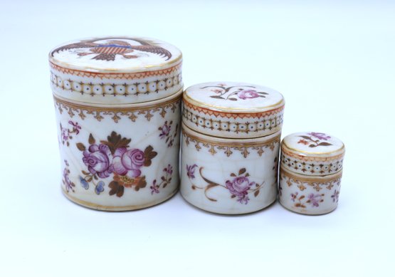 Three 19th Century Chinese Export Porcelain Trinket Boxes-