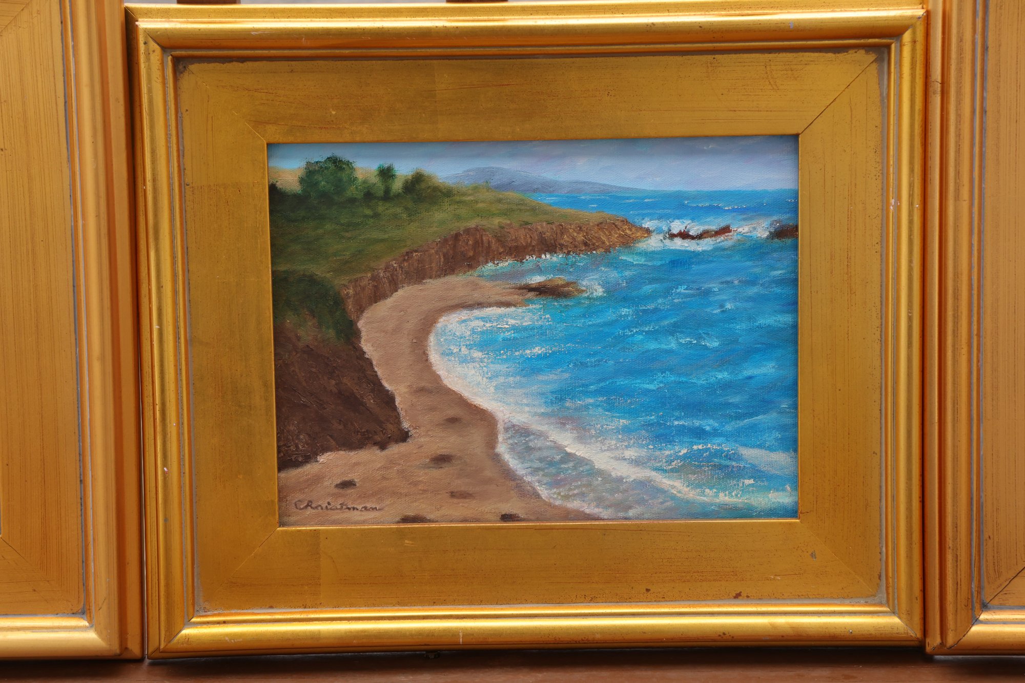 California Coast - 11" x 8" canvas Framed 16.5" x 15"