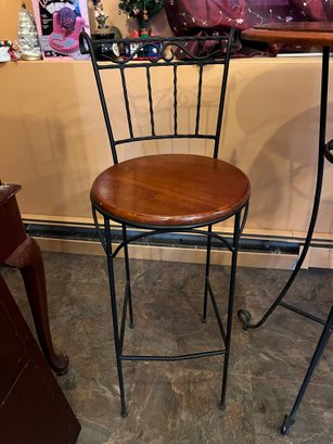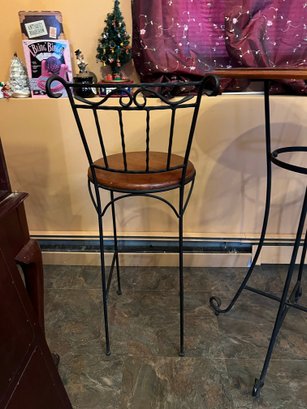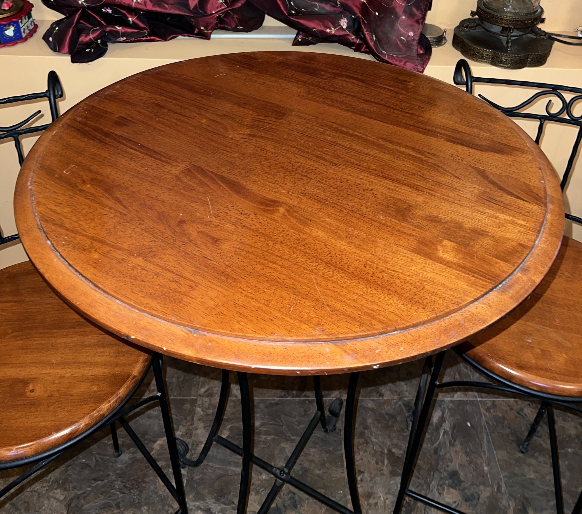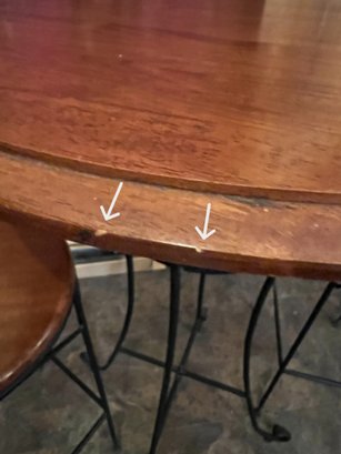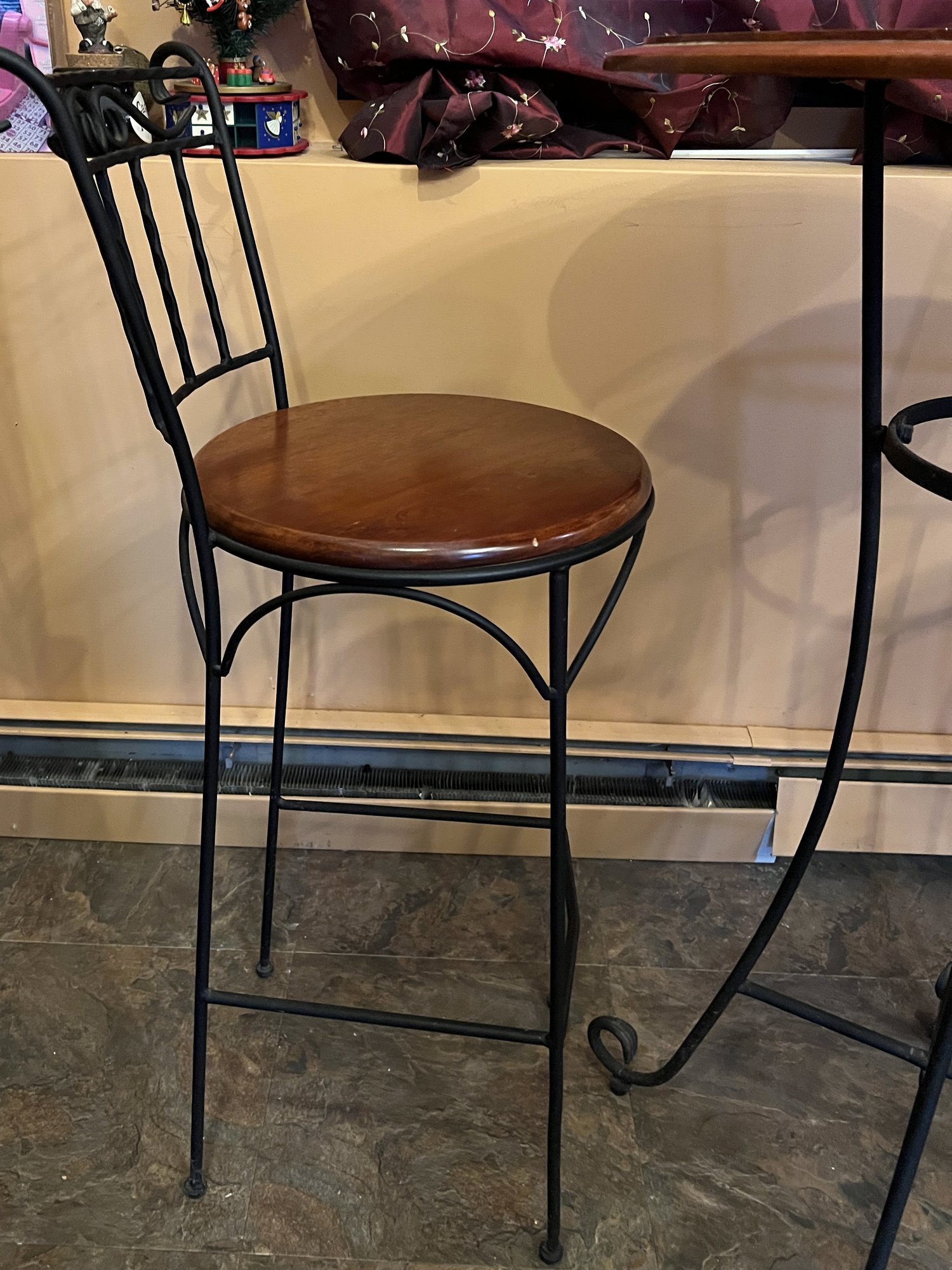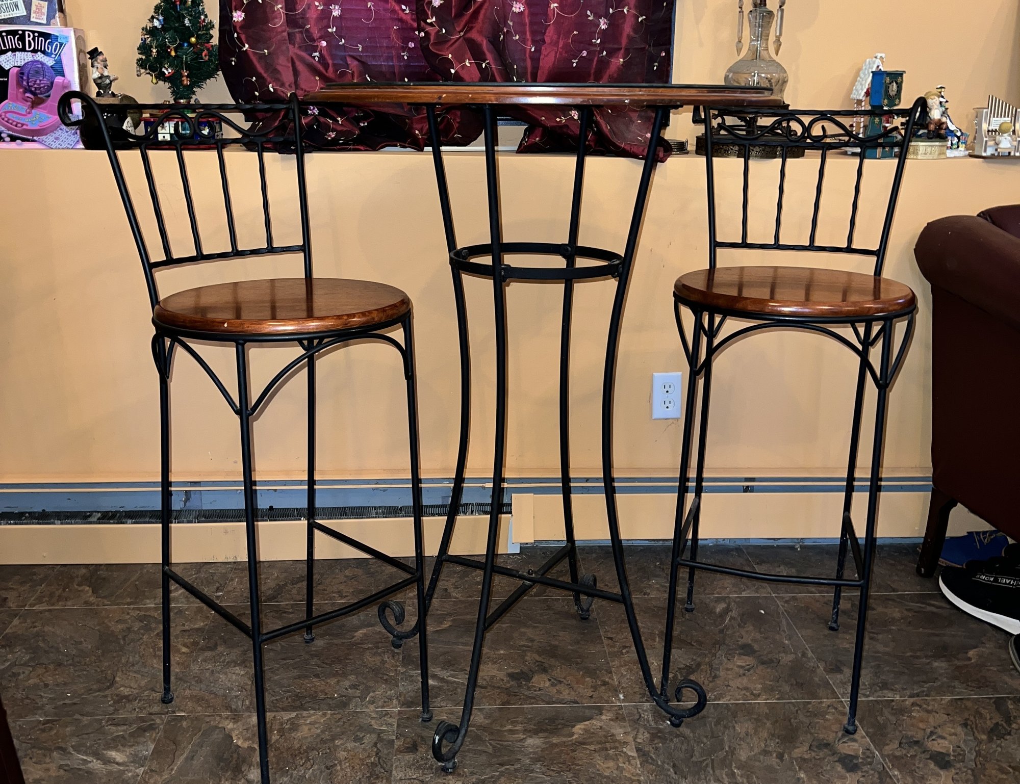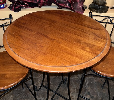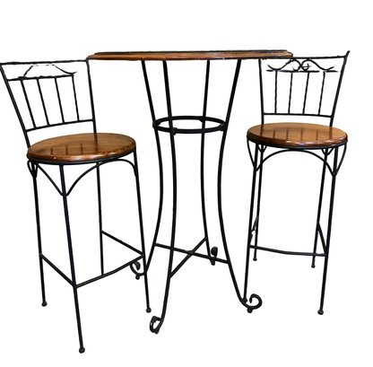 Three-piece bar set with wood top and black metal base