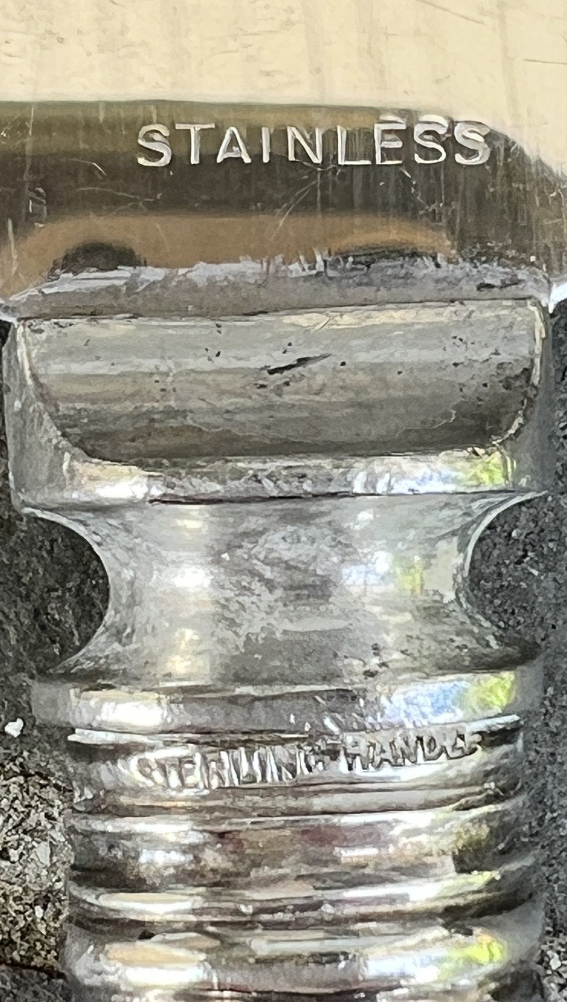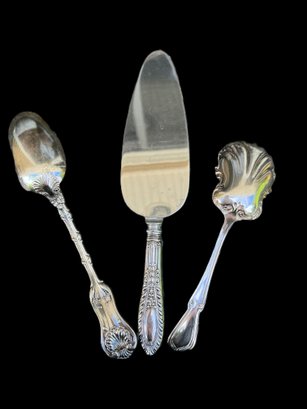 Three-piece sterling silver set in matching patterns, weighing approximately 6.2 Troy ounces.