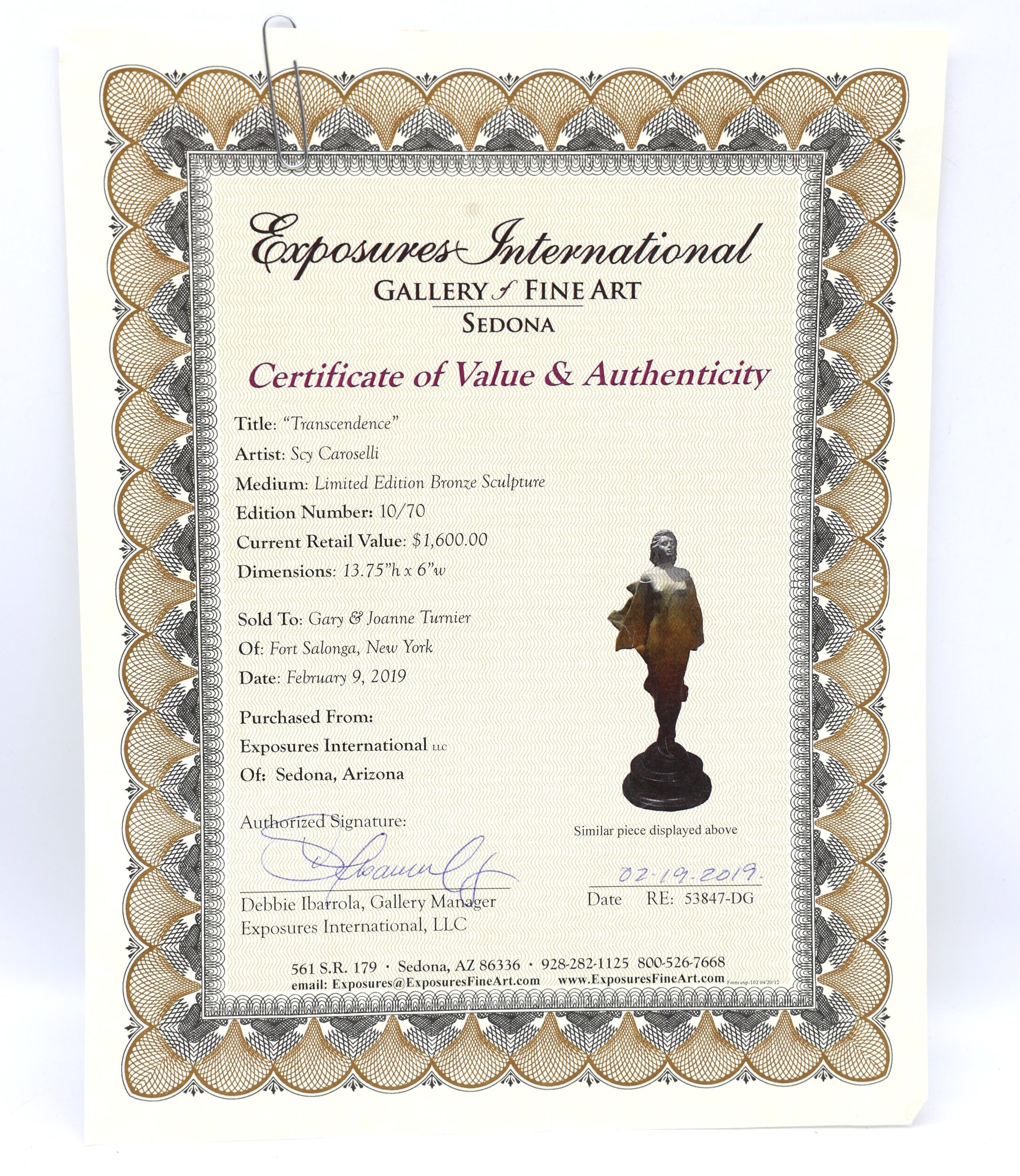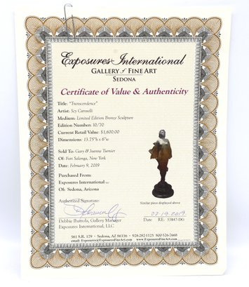 "Transcendence" by Scy Caroselli bronze sculpture, limited edition 10/70. Signed on base and in nice condition.