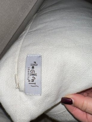 Nice Fragments -Identity decorative pillows 23" Sq and a very nice Crate and Barrel throw 18" x 56' (Retail $150.00)