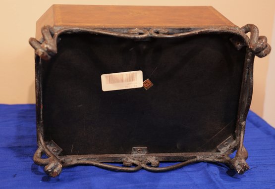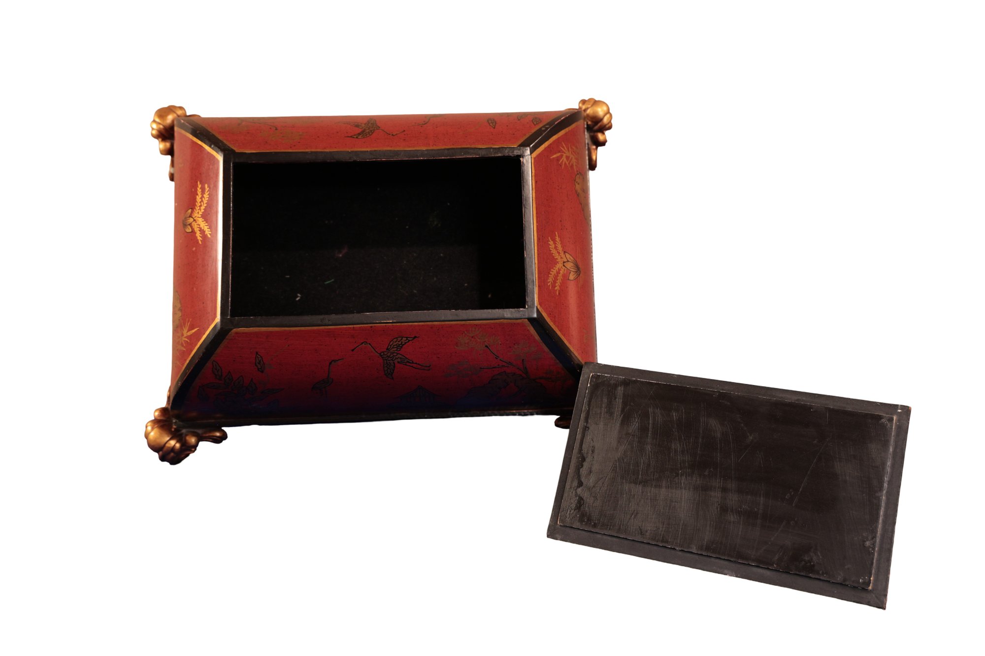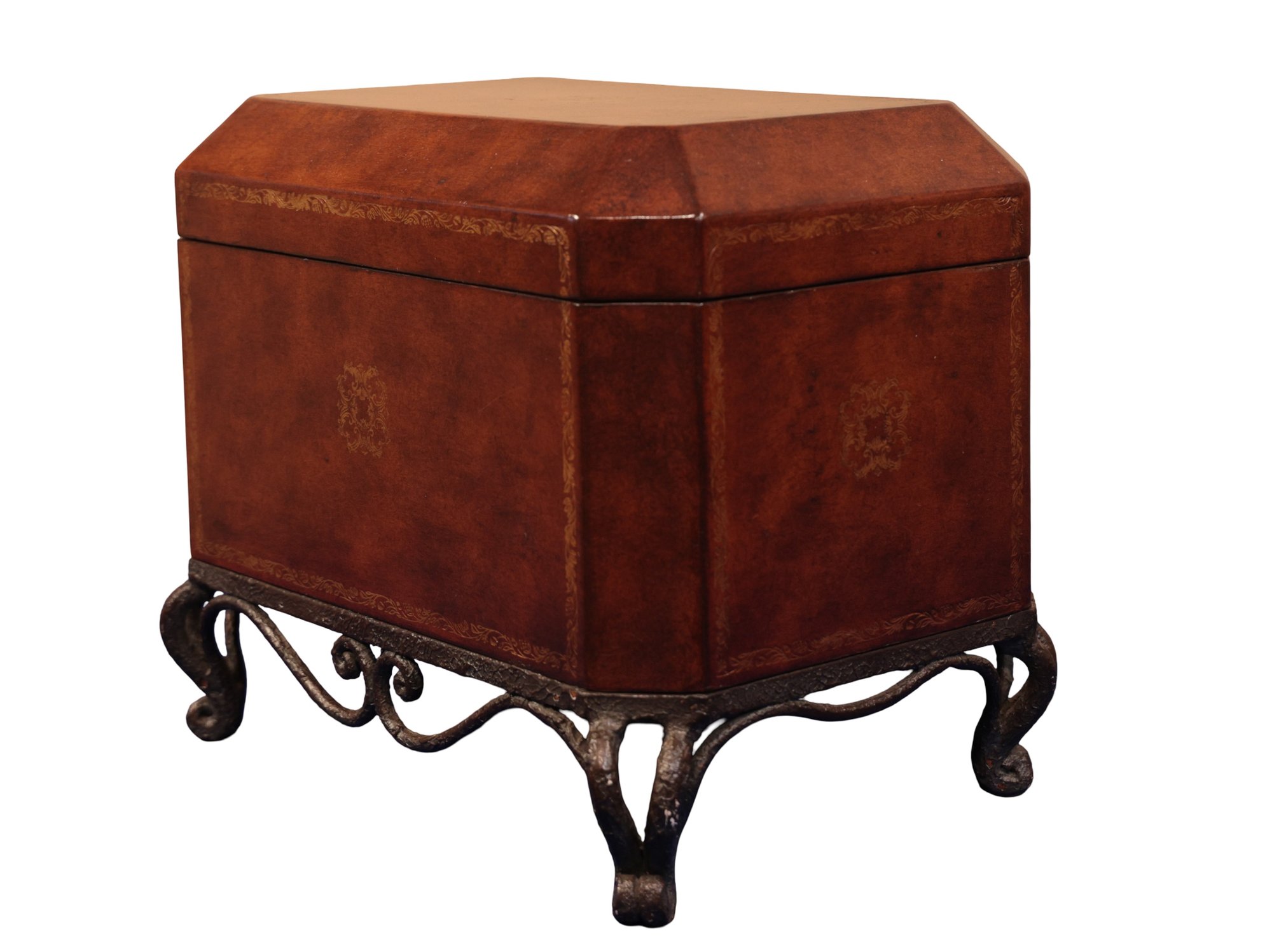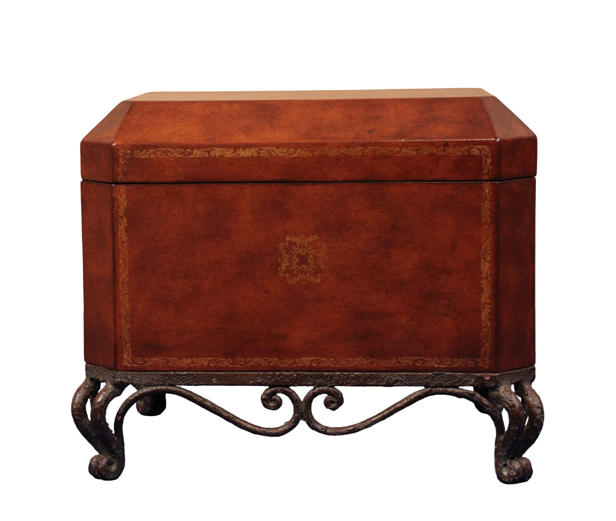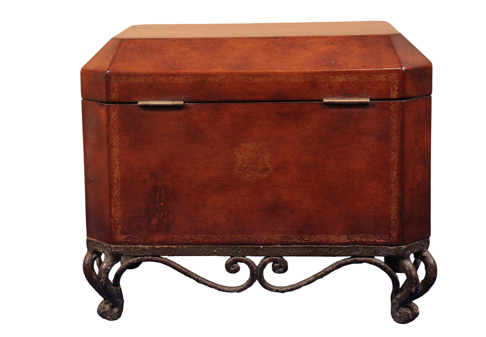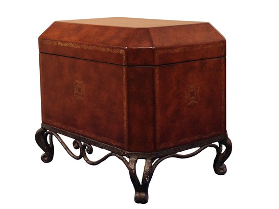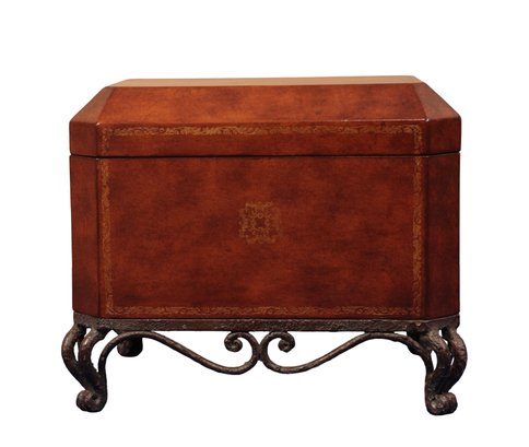 Leather chest with base in brown with gold tooling