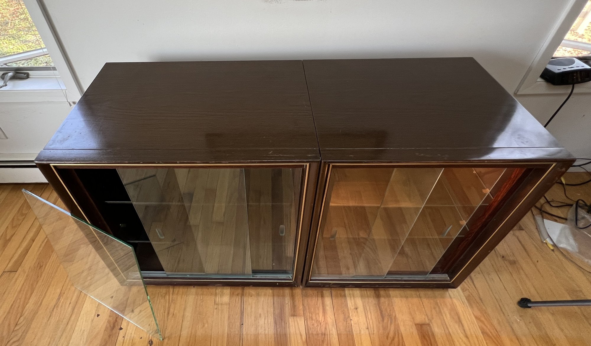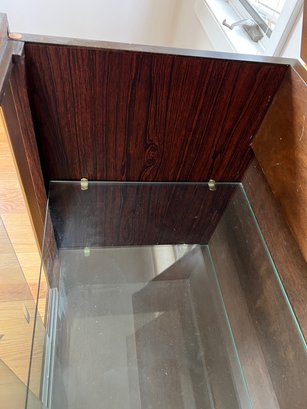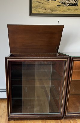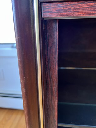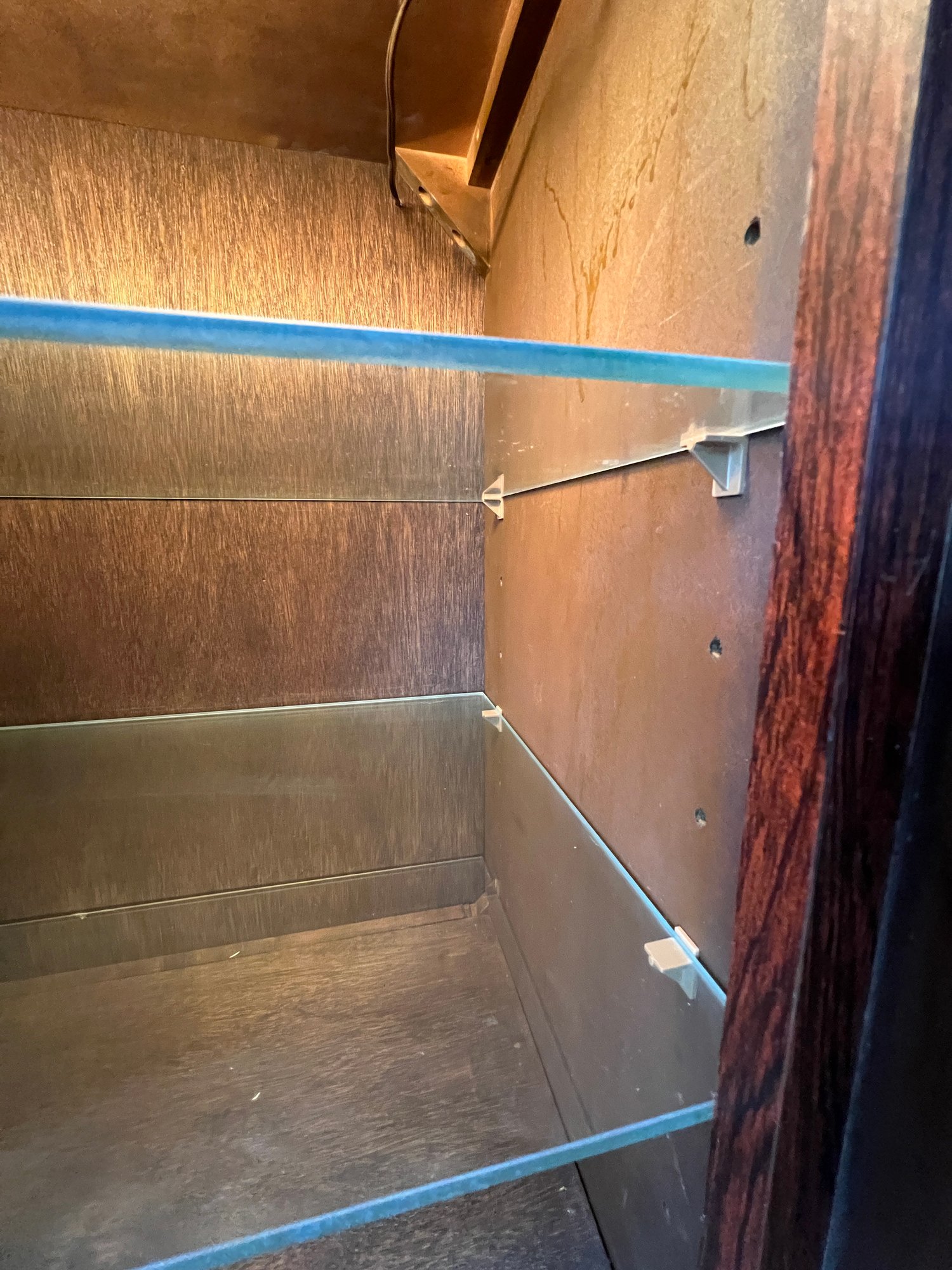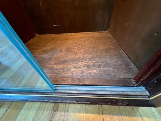 Two adjustable glass shelving, sliding glass doors - 27.5" x 17.5 x 32.25"