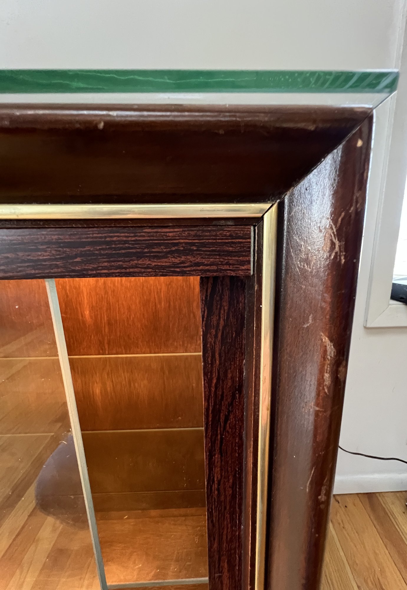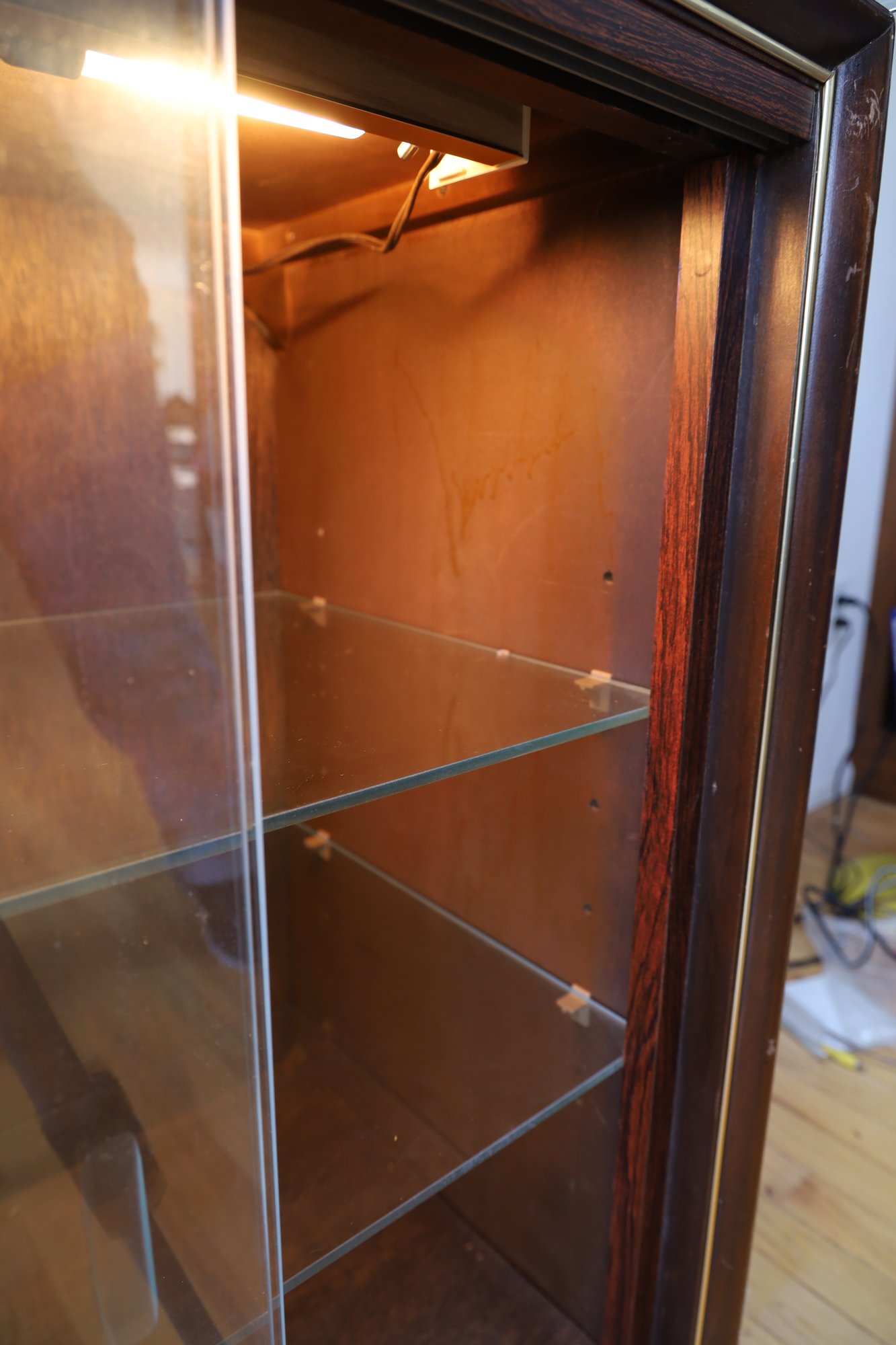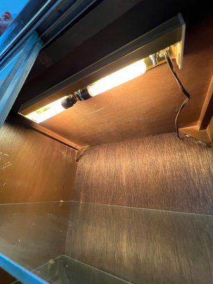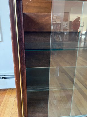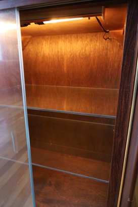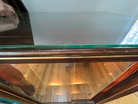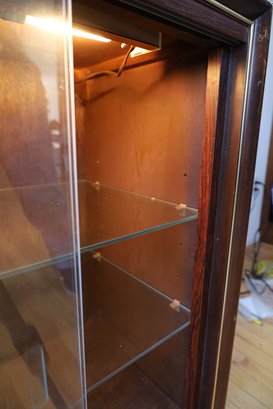 Curio has working light - two adjustable glass shelves and a surface top - sliding glass doors