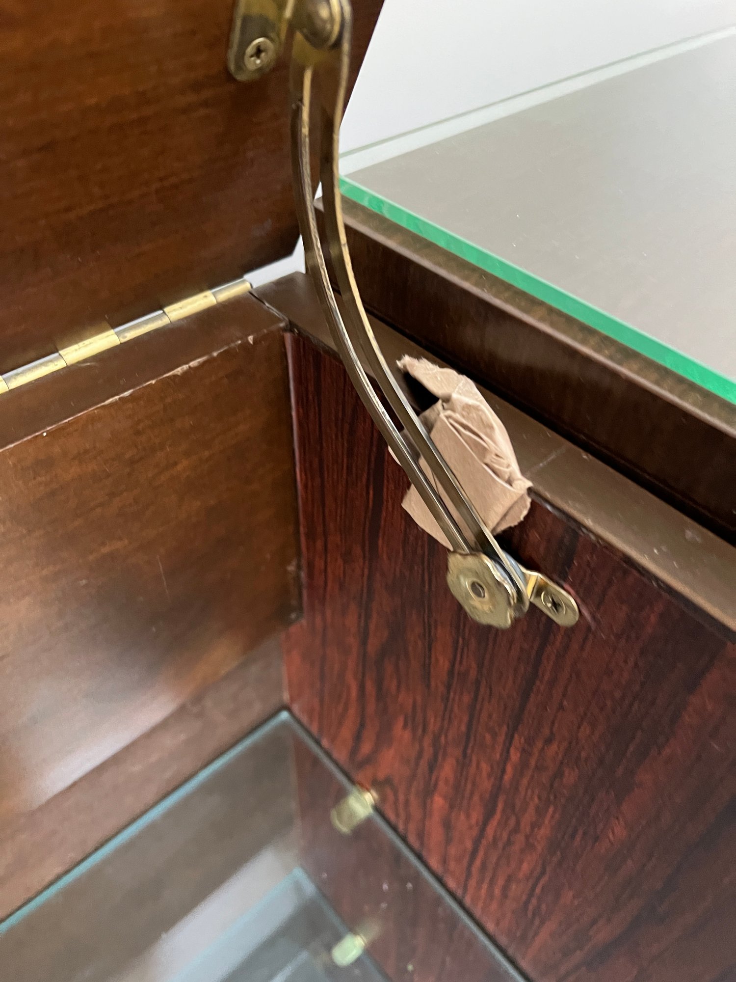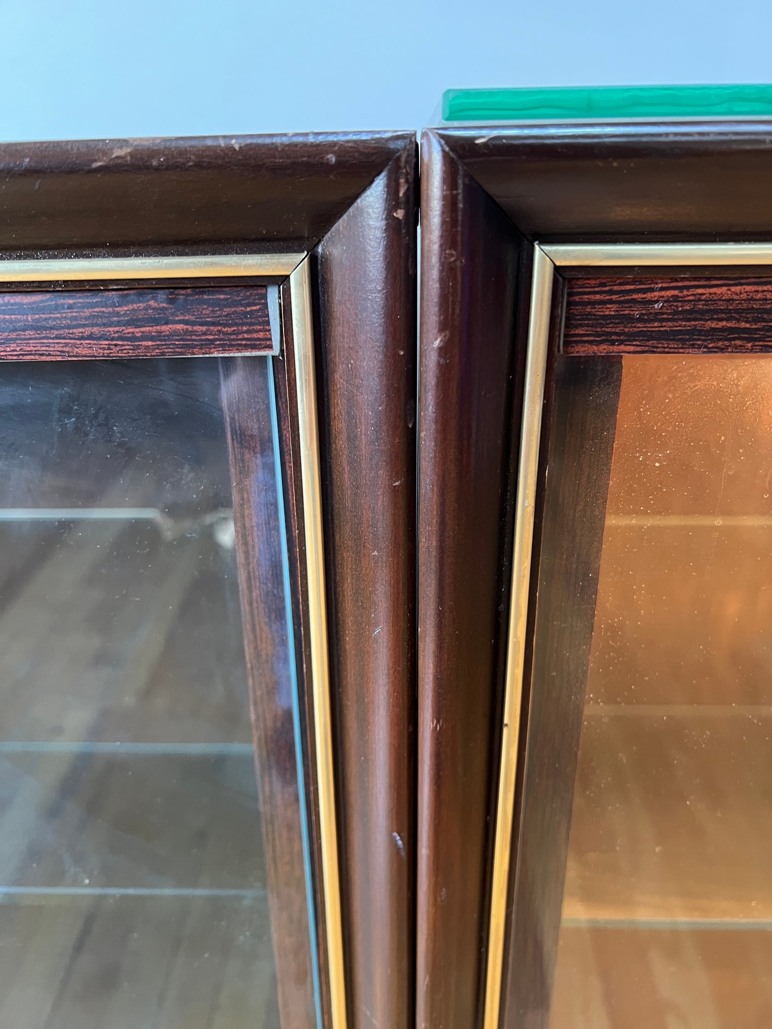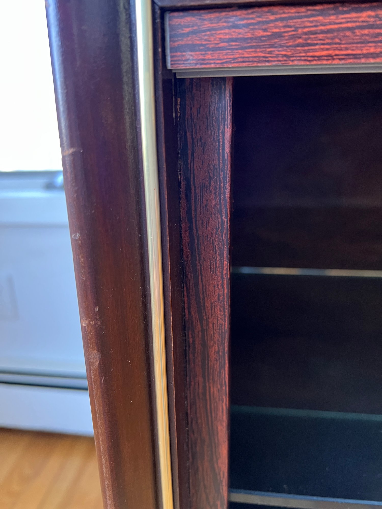 Curio has working light - two adjustable glass shelves and a surface top - sliding glass doors