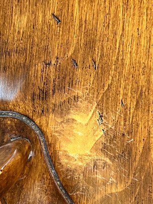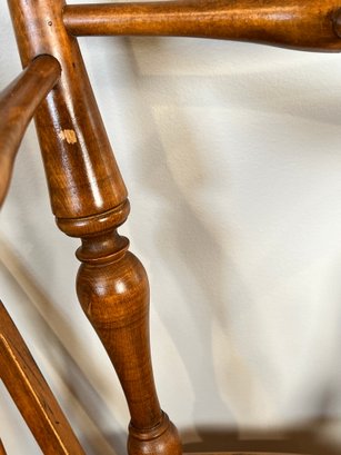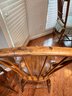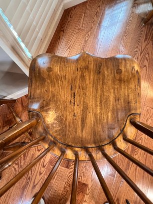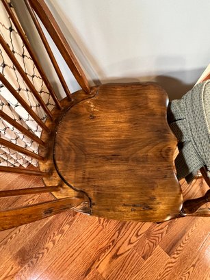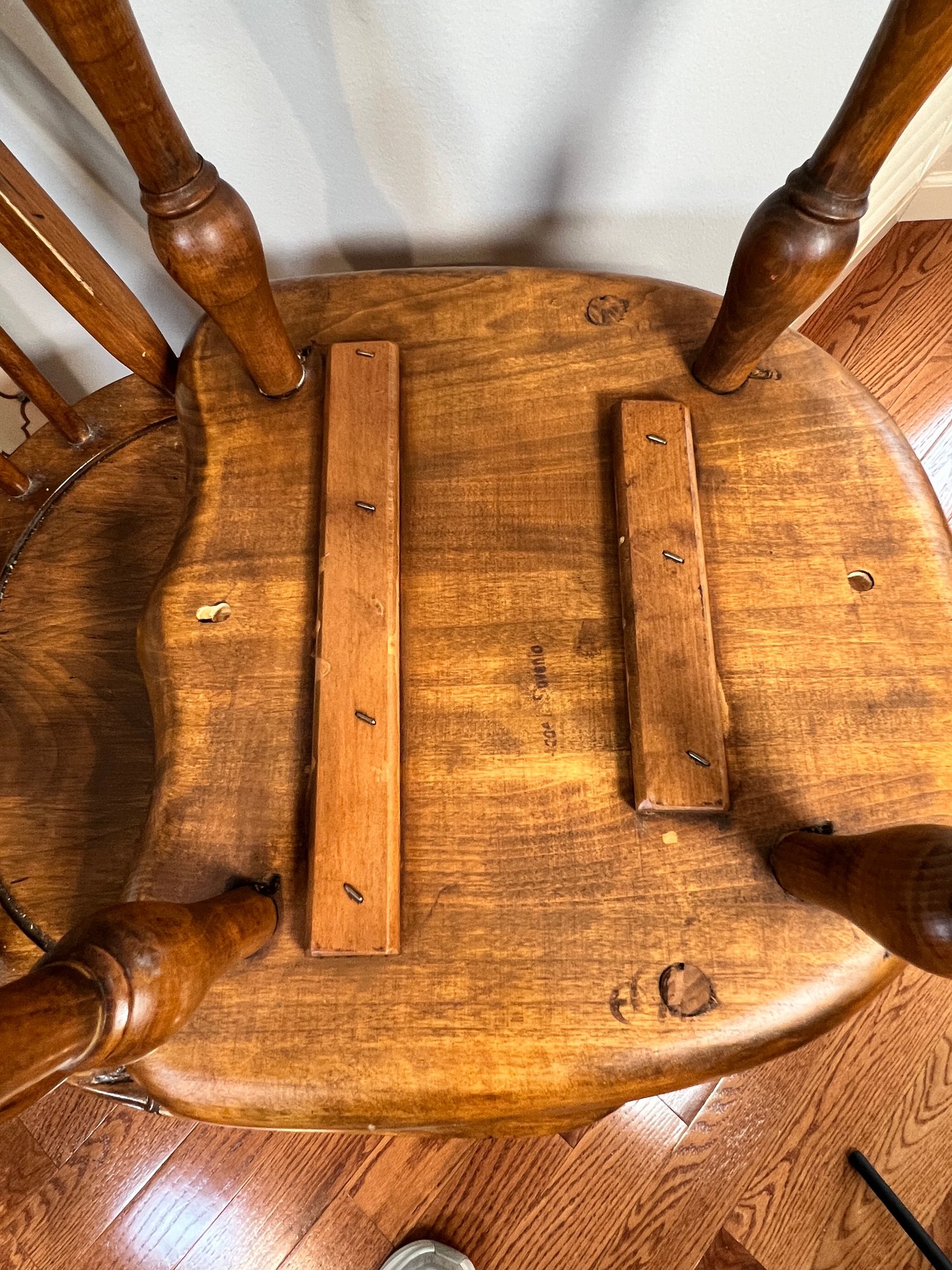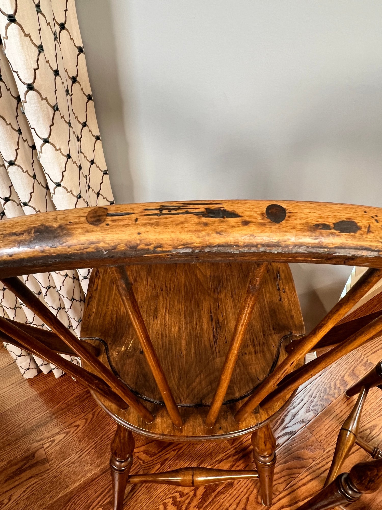 Two wood Windsor back bar stools with or without cushions. Both chairs have minor blemishes on the seats; otherwise, they are very sturdy! (see Photos)