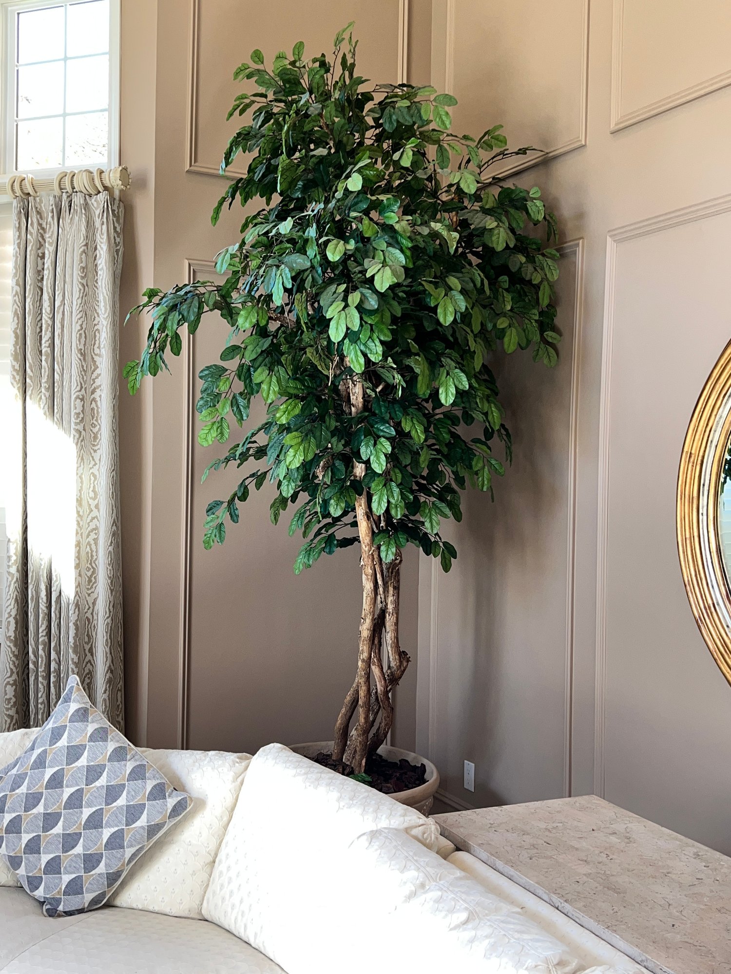 Large faux Ficus tree in a nice pot.