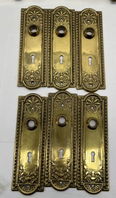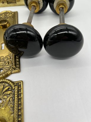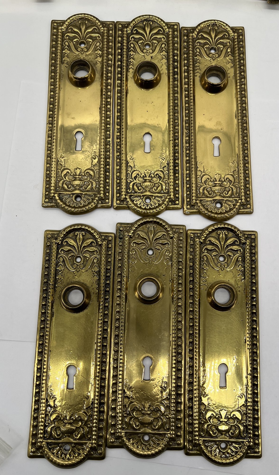 The 7" backplates feature ornate, high-relief detailing typical of 19th-century hardware.