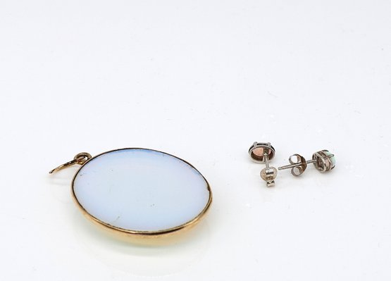 14kt Large opal pendant 1.5"L x 1.25" W