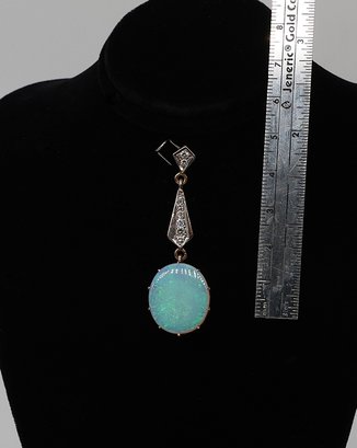 Large opal pendant 2"L in 14kt yellow gold with Eight graduated diamonds approx. .05 -.10ct on the pendant