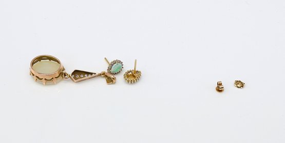 14kt opal studs surrounded diamond cluster