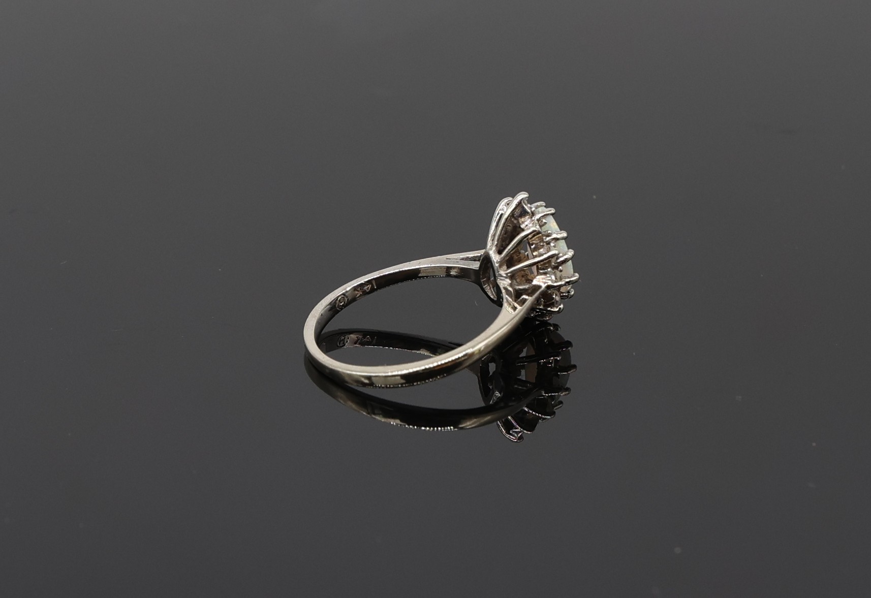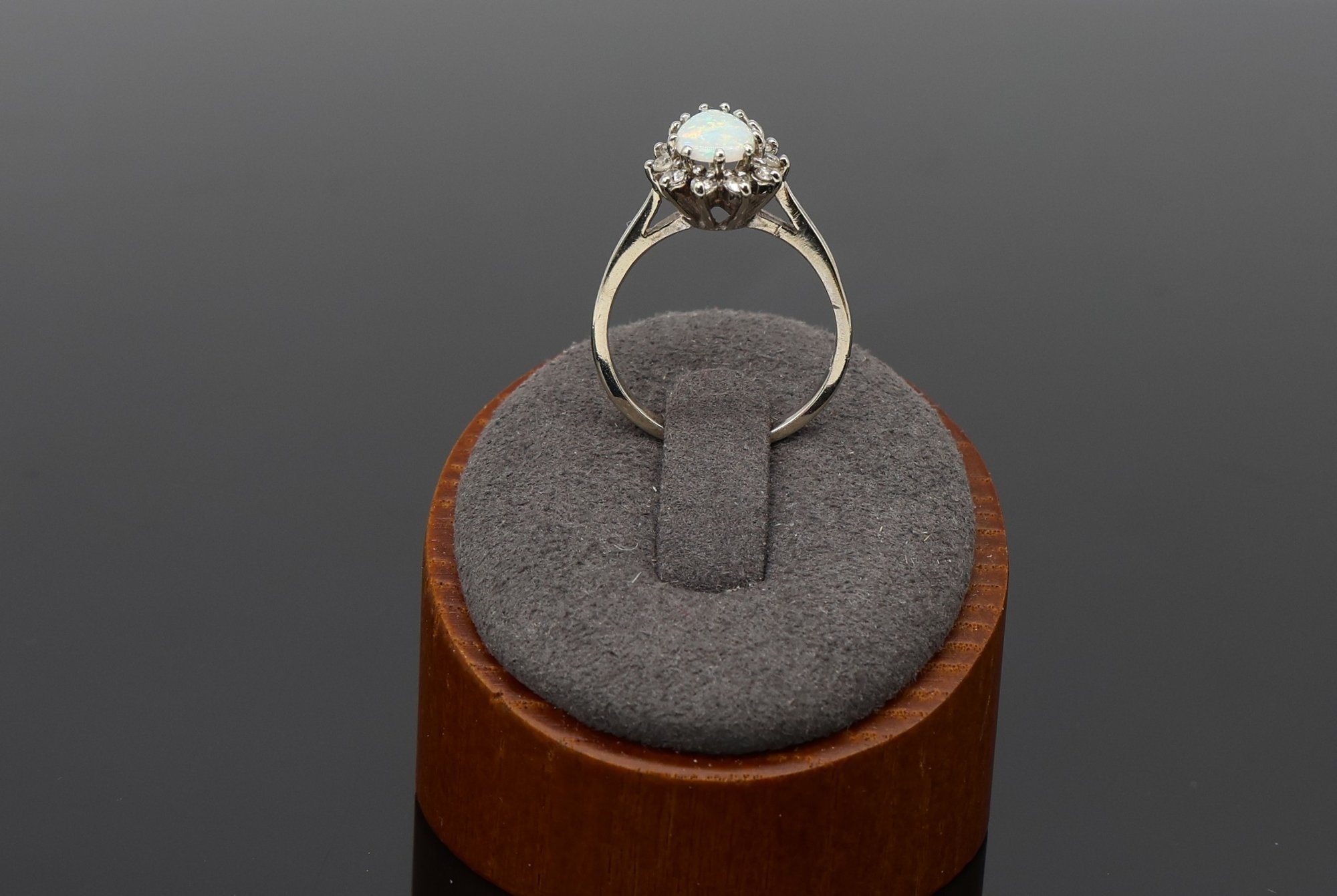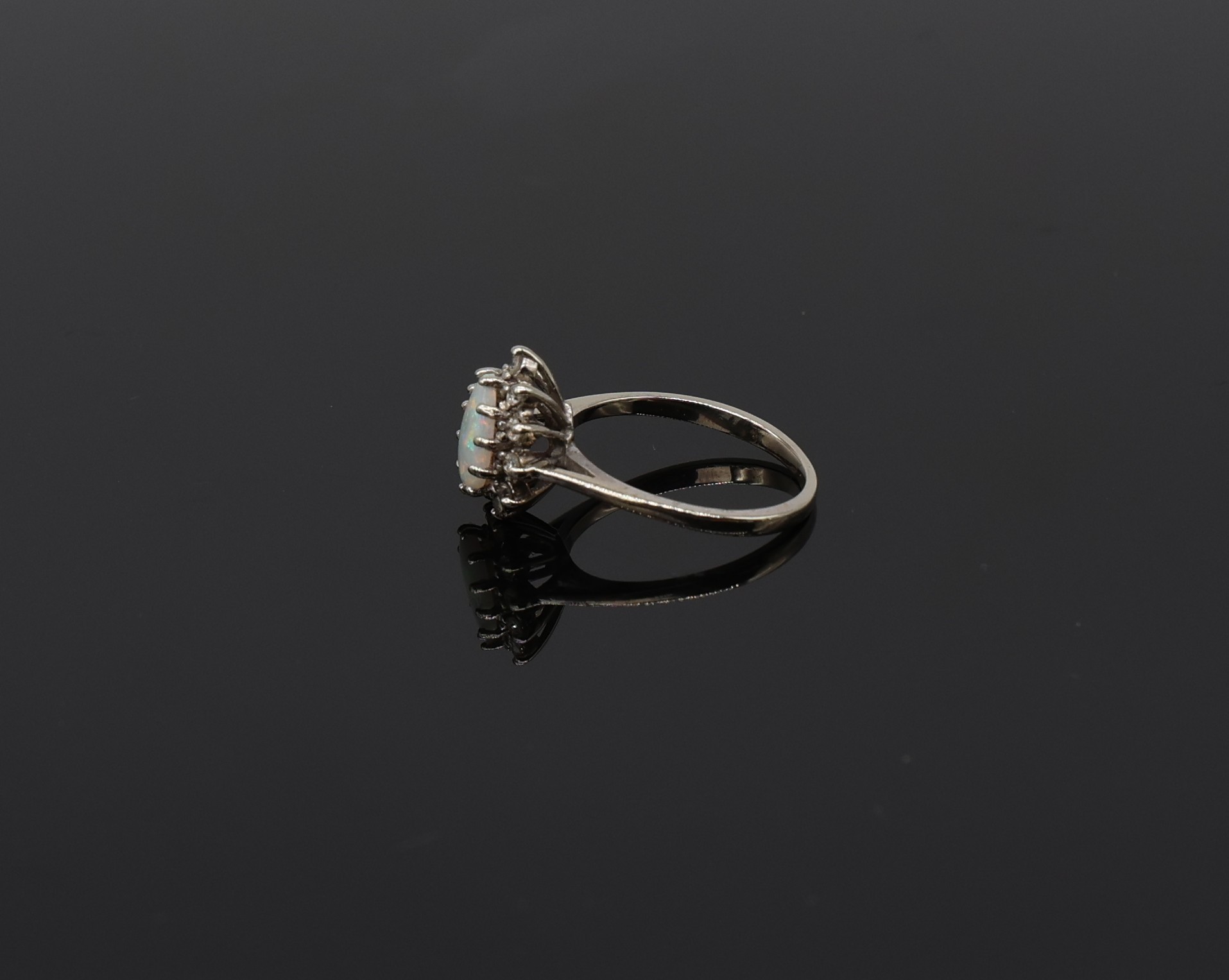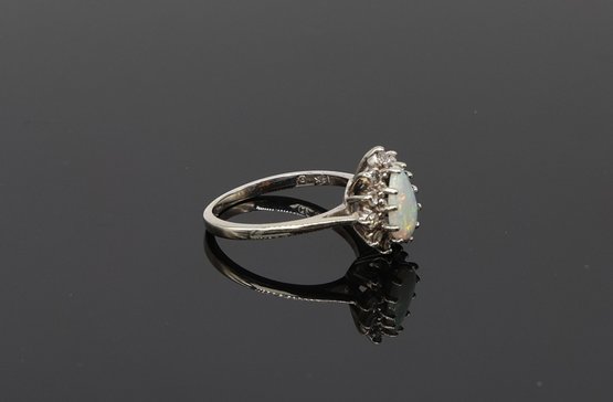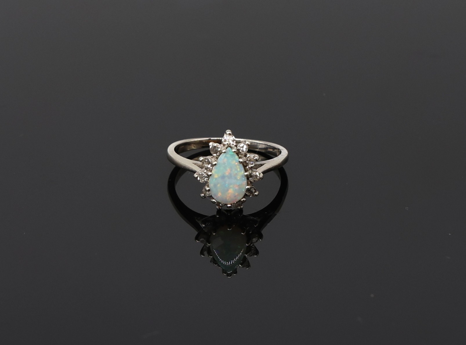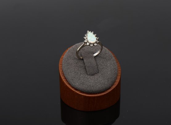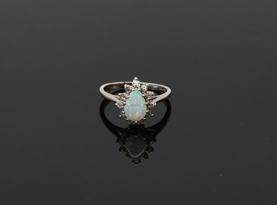 14kt White Gold Pear-shaped Opal And Diamond Halo Ring Eleven diamonds at .05ct.each
