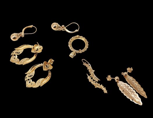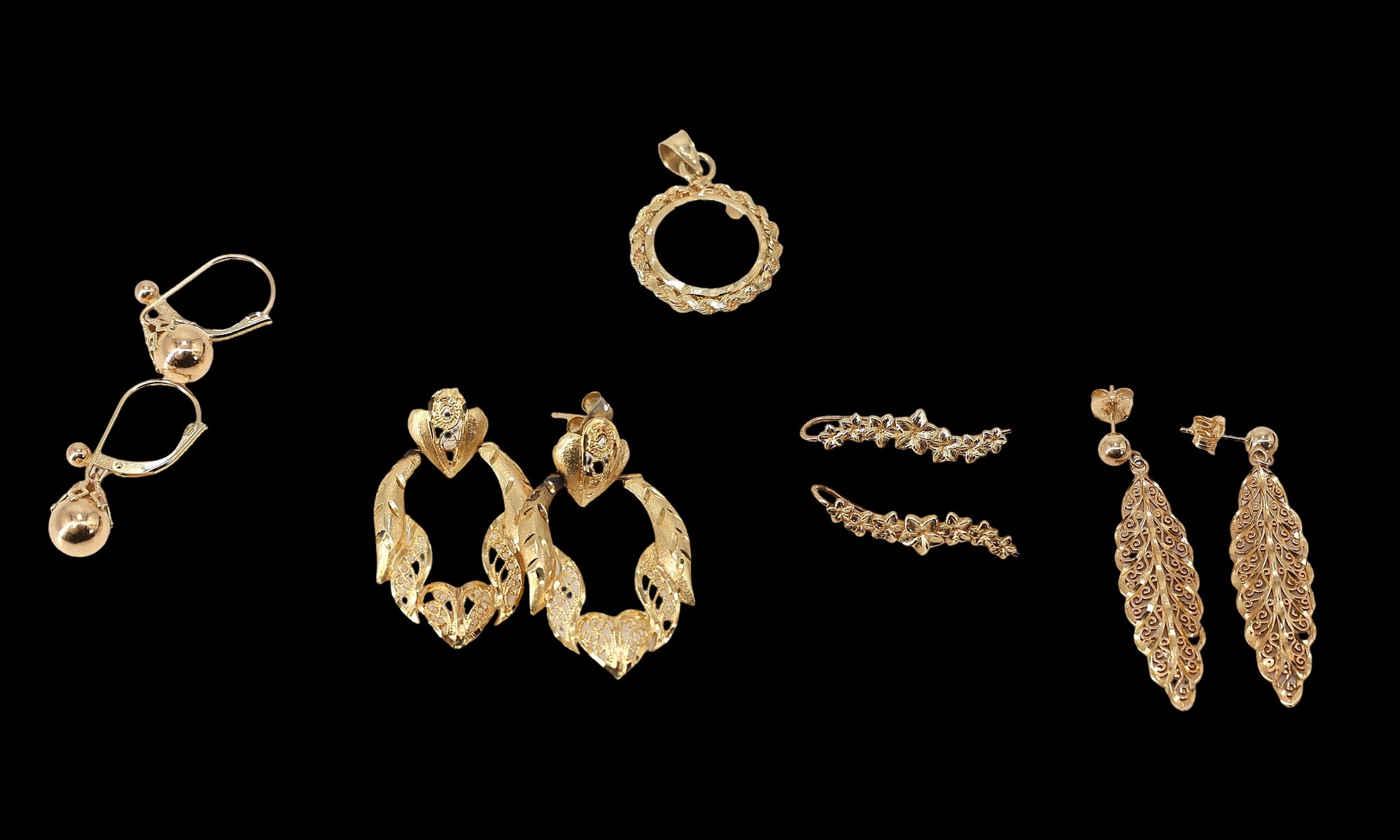 14k yellow gold filigree dangle stud earrings in a leaf shape