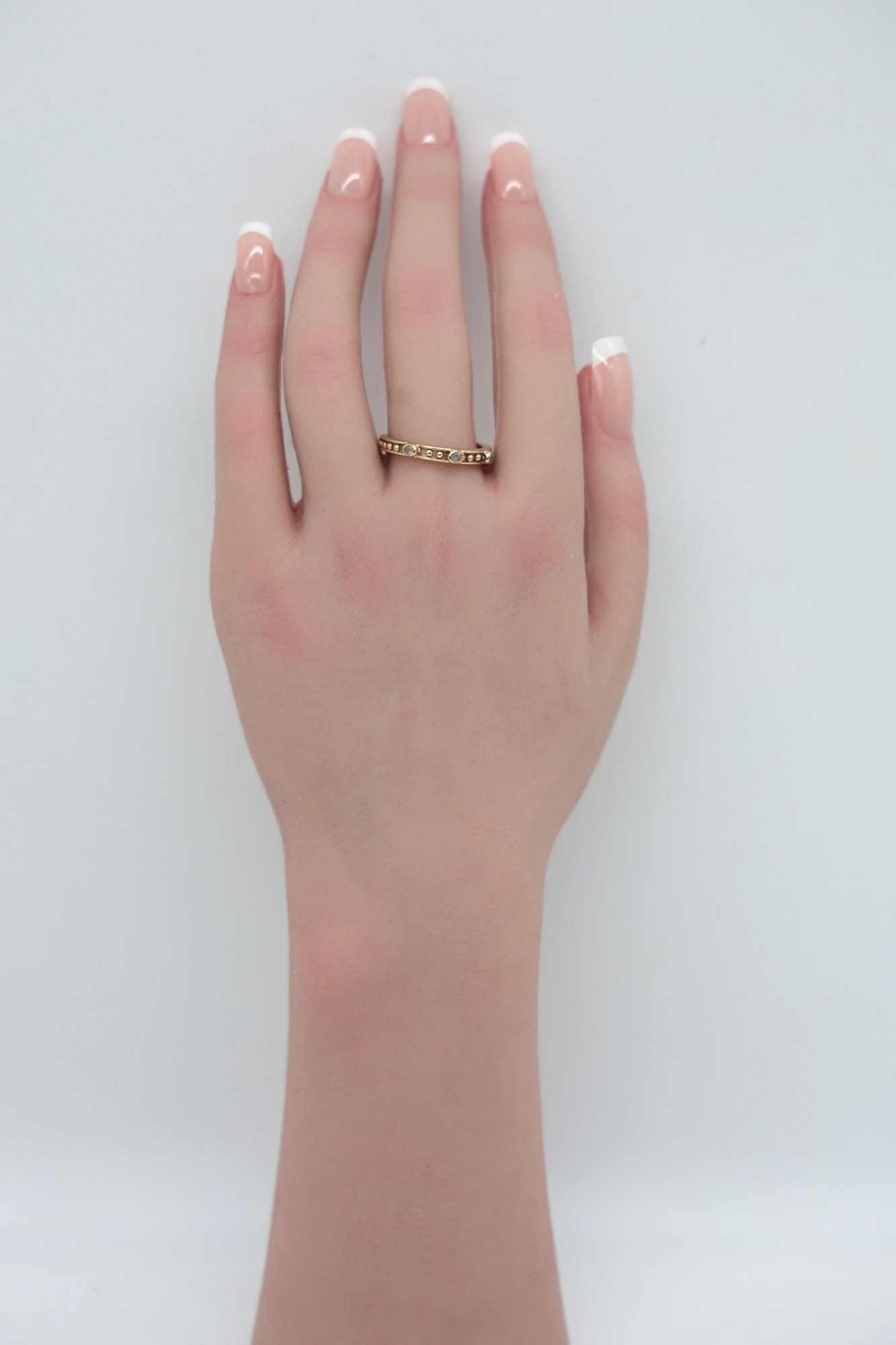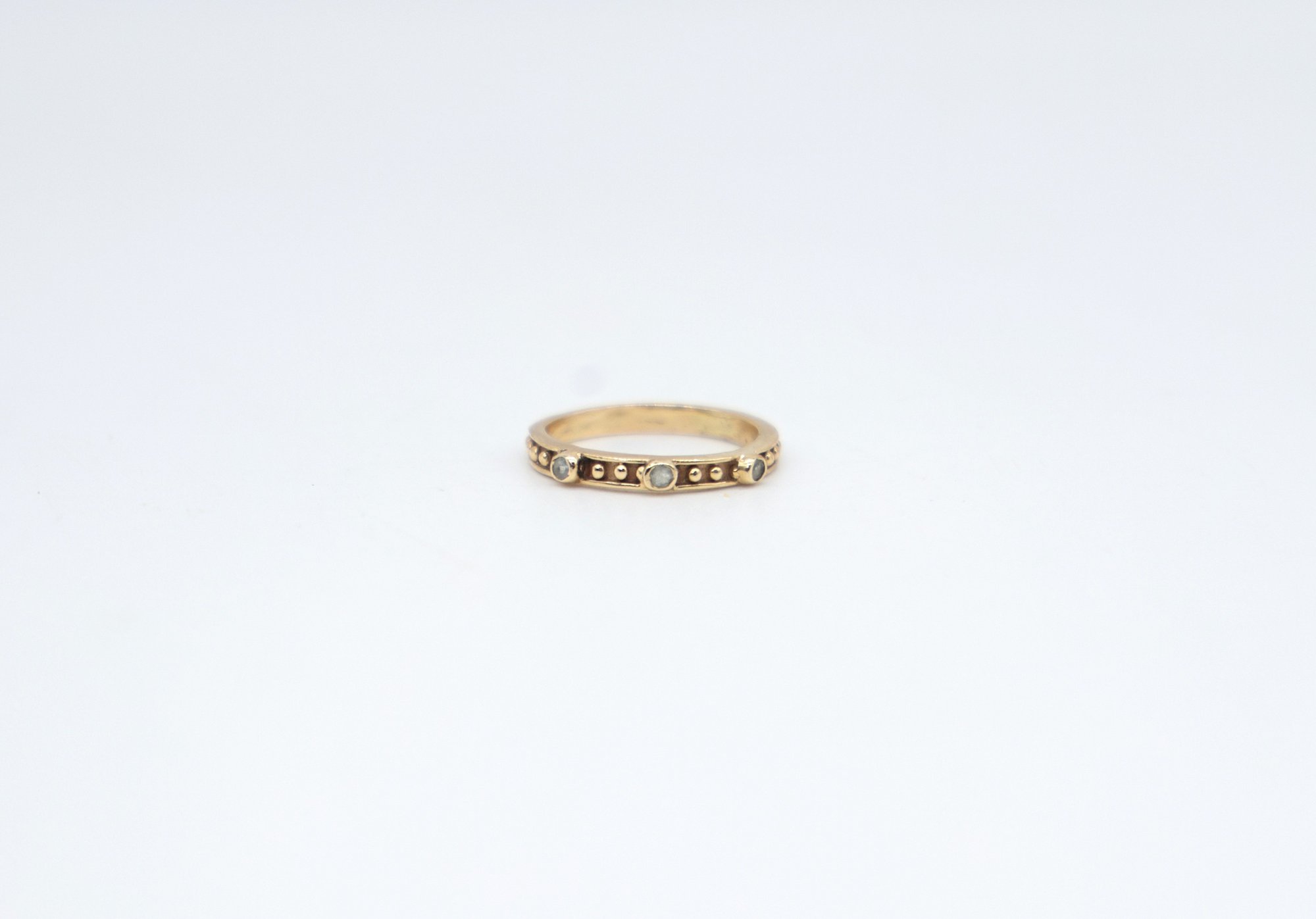 Vintage 18k Yellow Gold Eternity Ring with aquamarines size 9