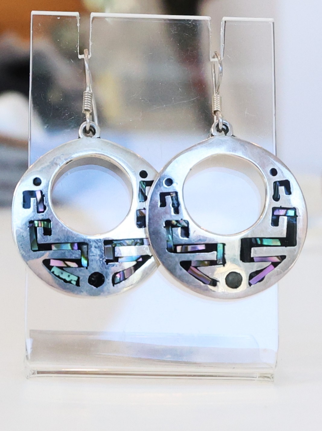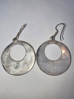 Vintage sterling silver (925) and abalone shell wire earrings (likely Taxco) 1.5"L approx 0.59 Troy ounces TW