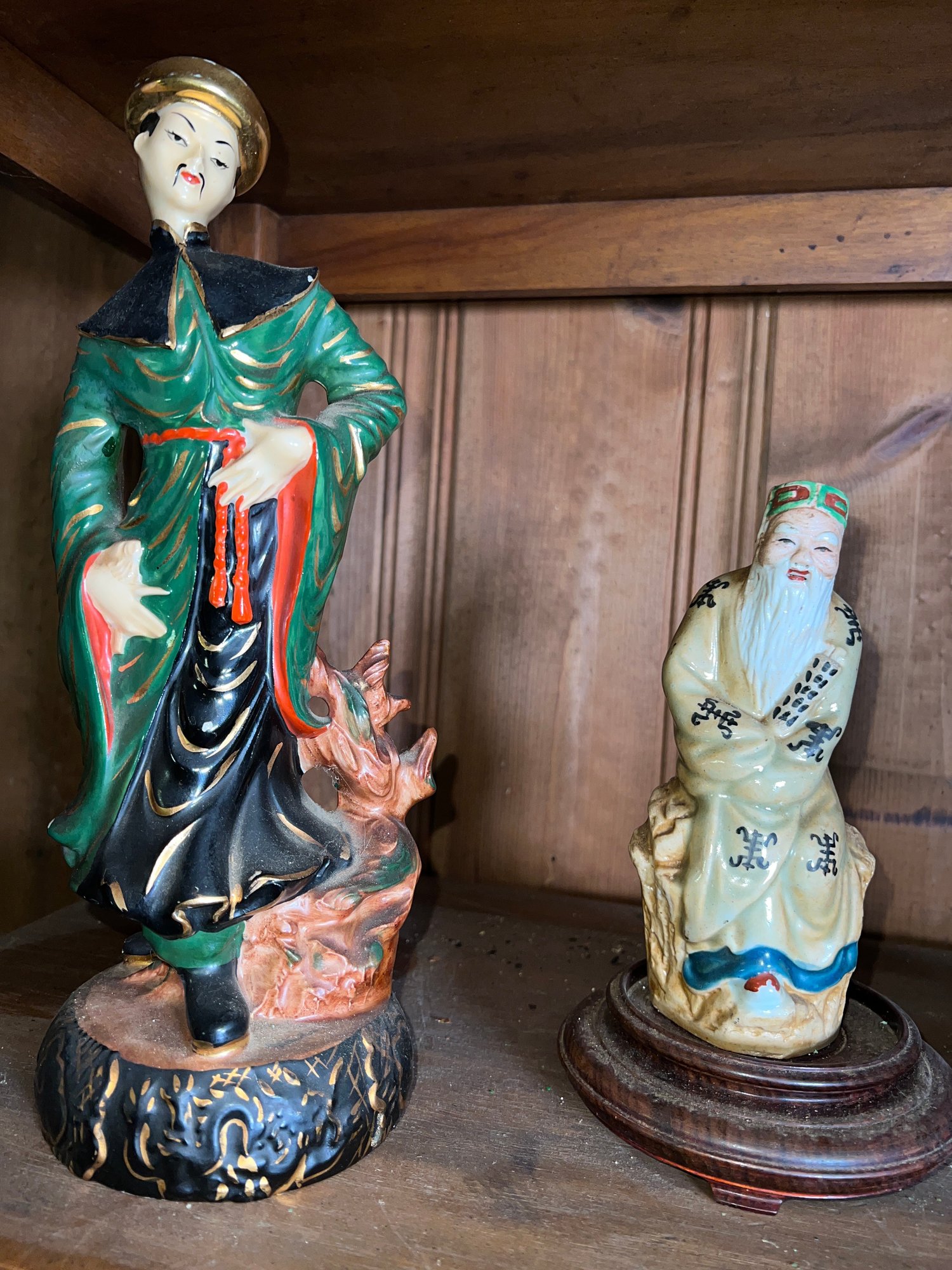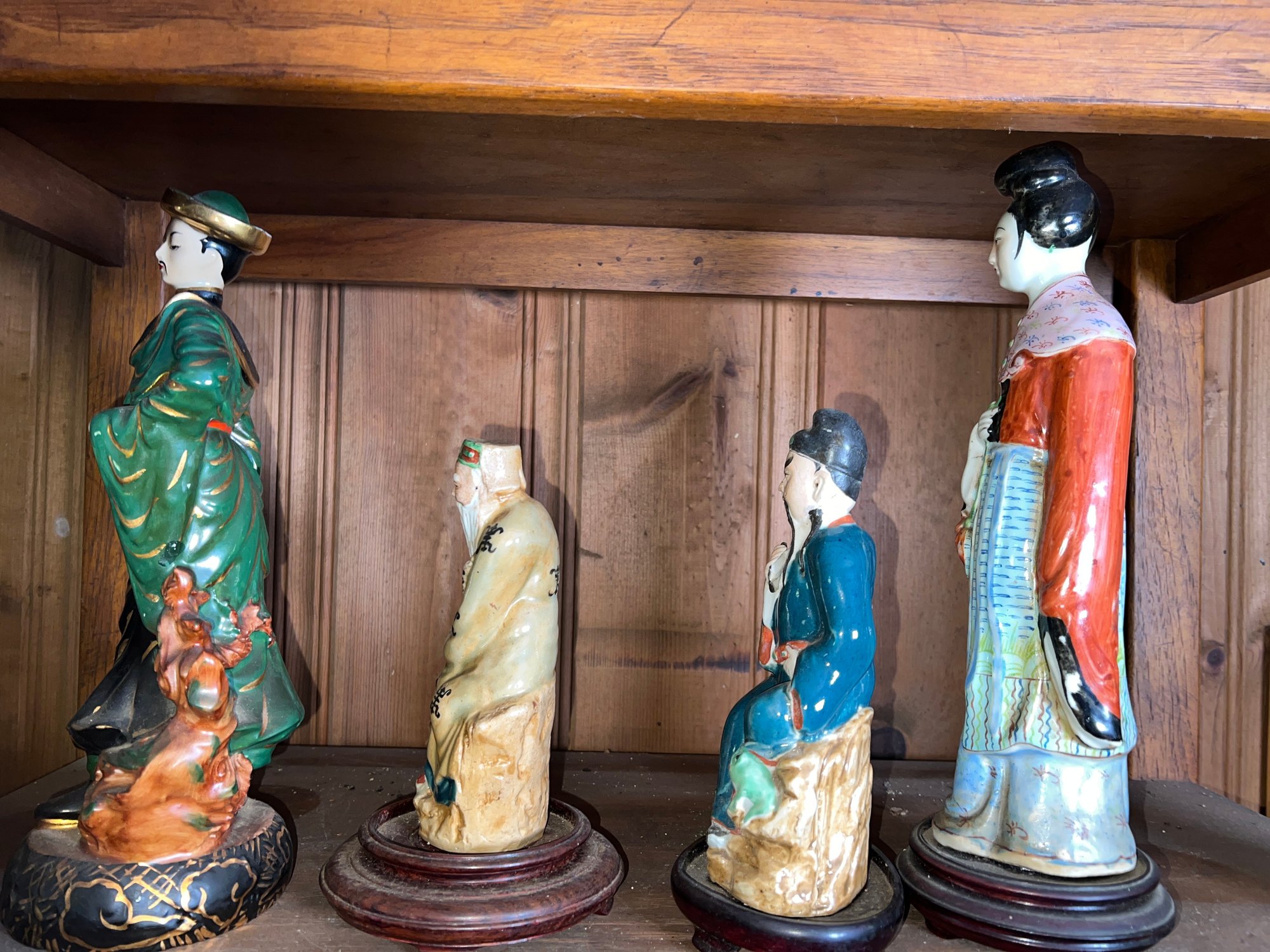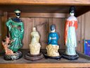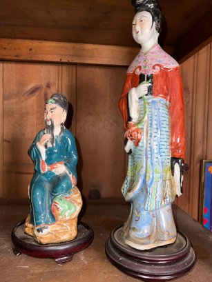 13"H Japanese figure hand-painted signed, 14"H Asian ceramic lady art figure, 6.5"H Toist teacher porcelain figurine, 9" H Chinese famille Rose porcelain figure