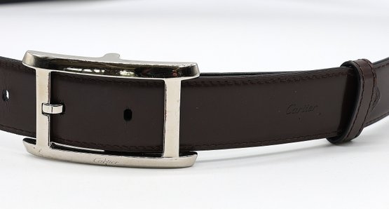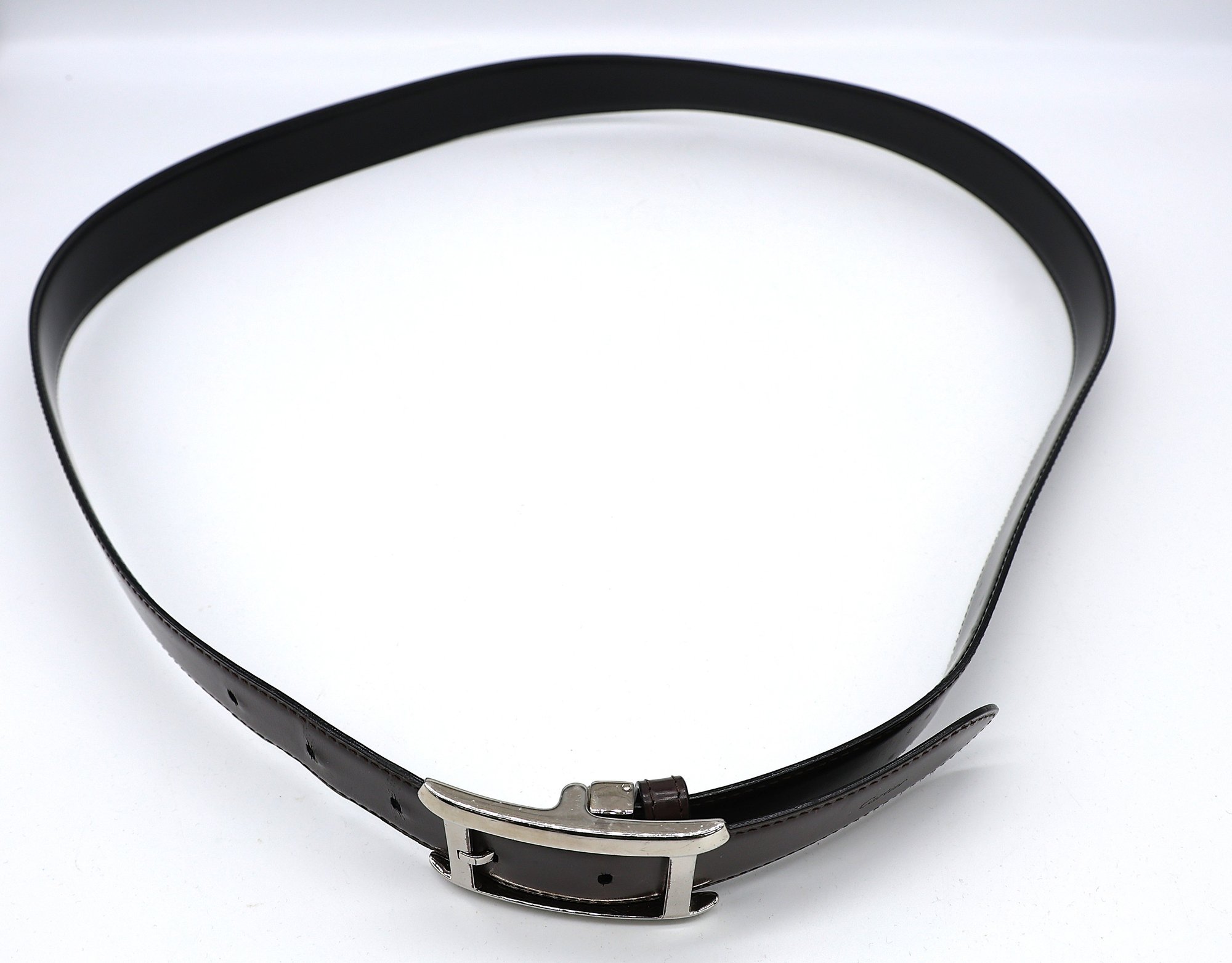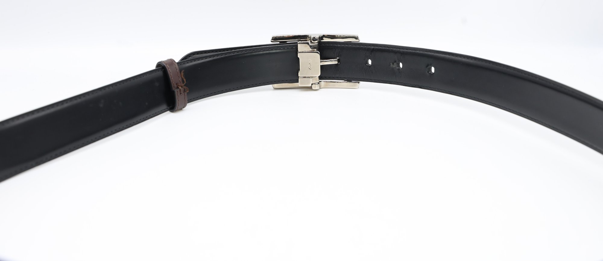 vintage leather CARTIER belt with Cartier buckle. Interchangeable belt from black to brown. Slight wear just where the stem goes in.
